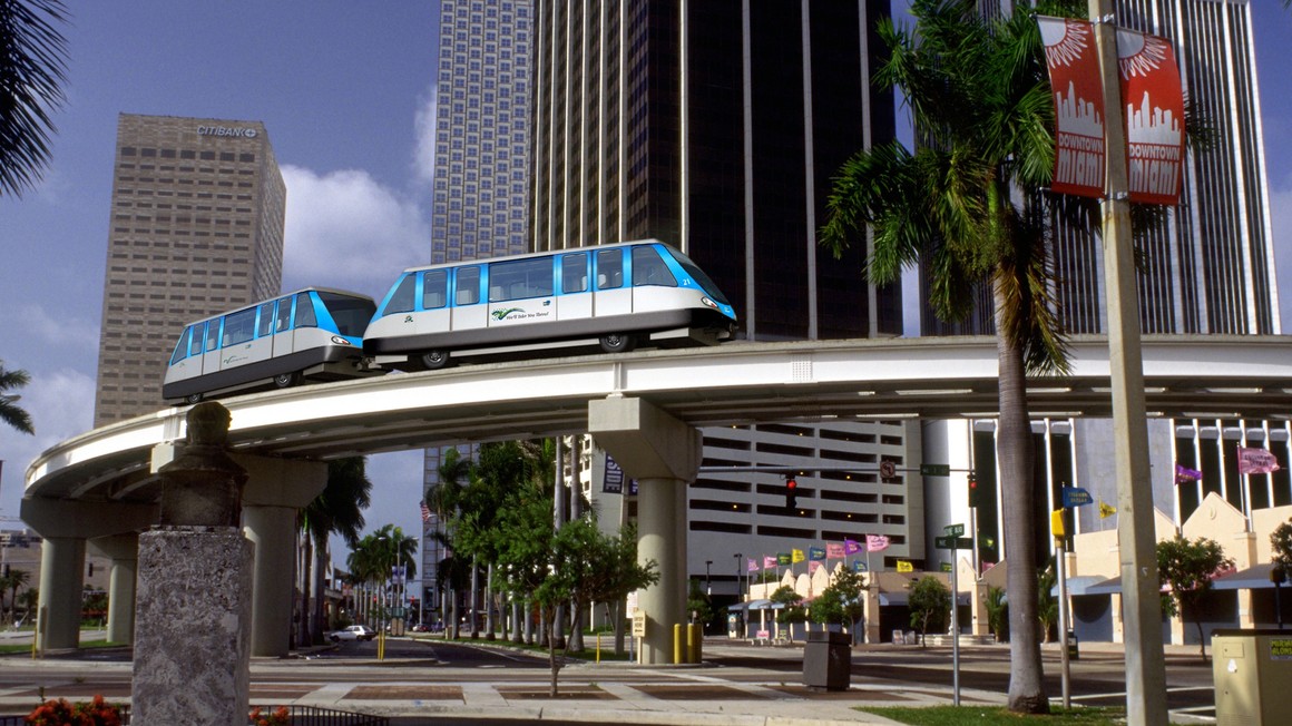 A free elevated people mover system that operates seven days a week in the downtown Miami, Omni, and Brickell areas.