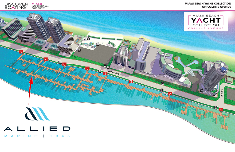 Find Allied Marine at Miami Beach Yacht Collection along Indian Creek in the Discover Boating Miami International Boat Show – MIBS.