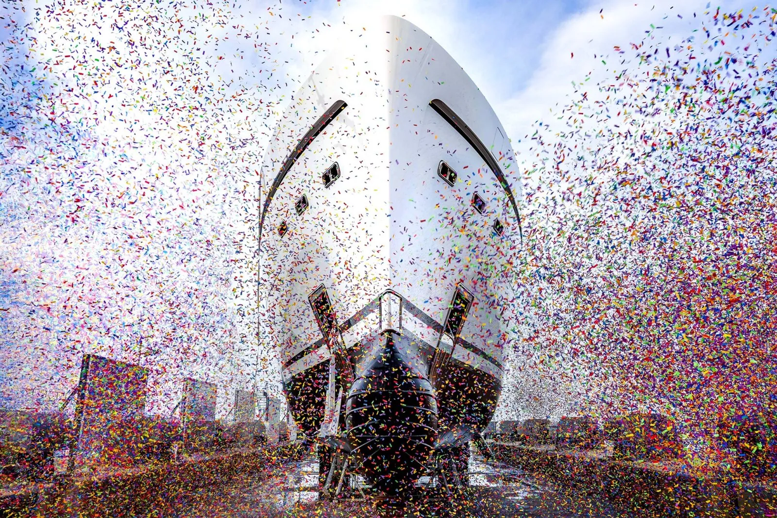 The new 67-metre full-custom displacement pleasure vessel with a beam of 11.80 metres, a gross tonnage of 1450 GT and her six decks, accommodates up to 12 guests within the owner’s suite on the upper deck, a full-beam VIP guest cabin (convertible into two cabins) on the main deck, and five additional guest cabins on the lower deck.