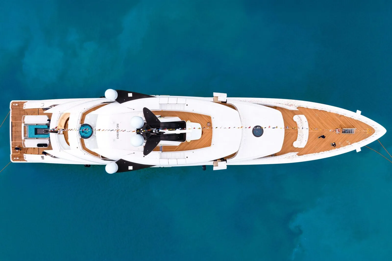 The yacht’s propulsion and onboard energy management are developed around a state-of-the-art hybrid propulsion system, which increases the fuel efficiency of both the main engines and the generators and improves guests’ comfort while underway. The yacht is fitted with two MTU main engines (12V4000 M63 1500Kw@1800 rpm) and is IMO TIER III certified. Her maximum speed is 16 knots, and she has a cruising speed of 15 knots.