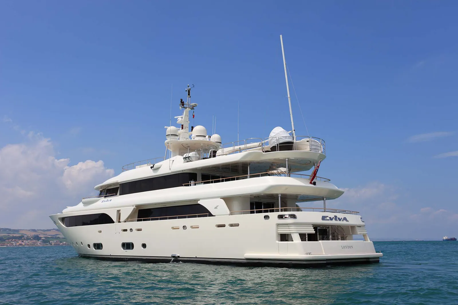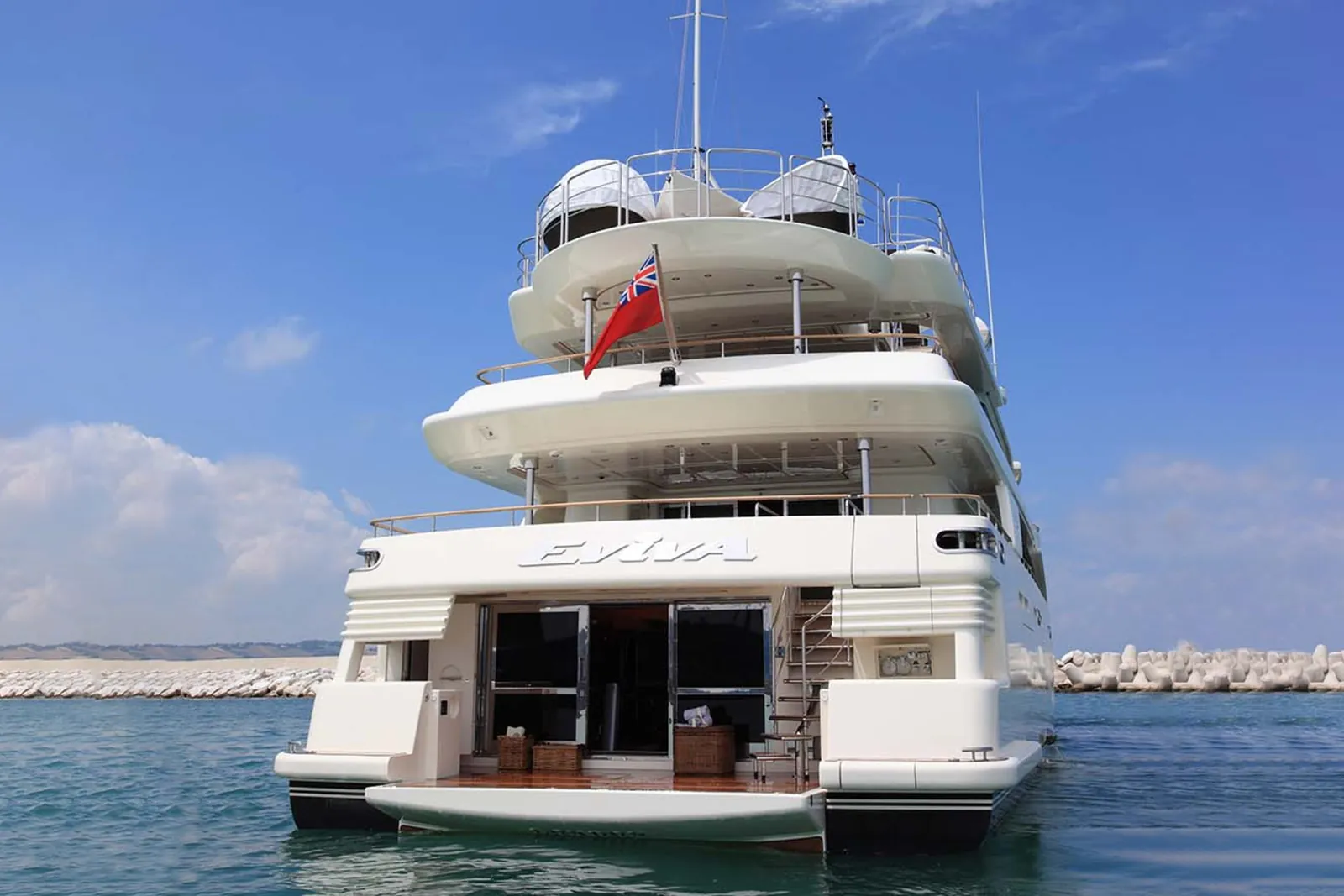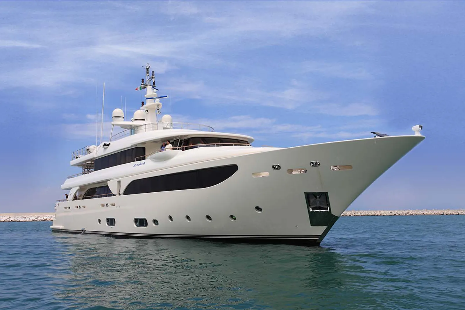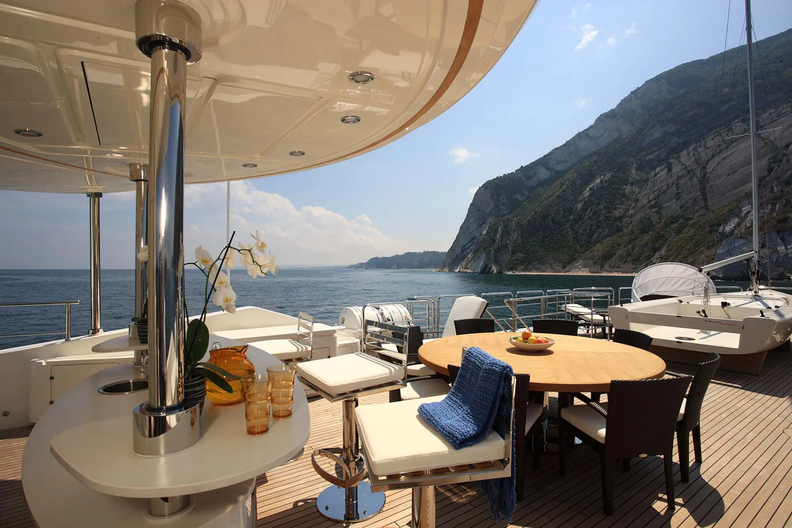 EVIVA has big hull volumes, with wide outdoor areas such as the covered aft main deck and the upper deck, the terrace in the owner’s suite, and the fitness and wellness area on the lower deck, in an indissoluble weave of personalization and tradition. The sobriety of her external lines is perfectly balanced with the elegance and refinement of the internal furnishings.