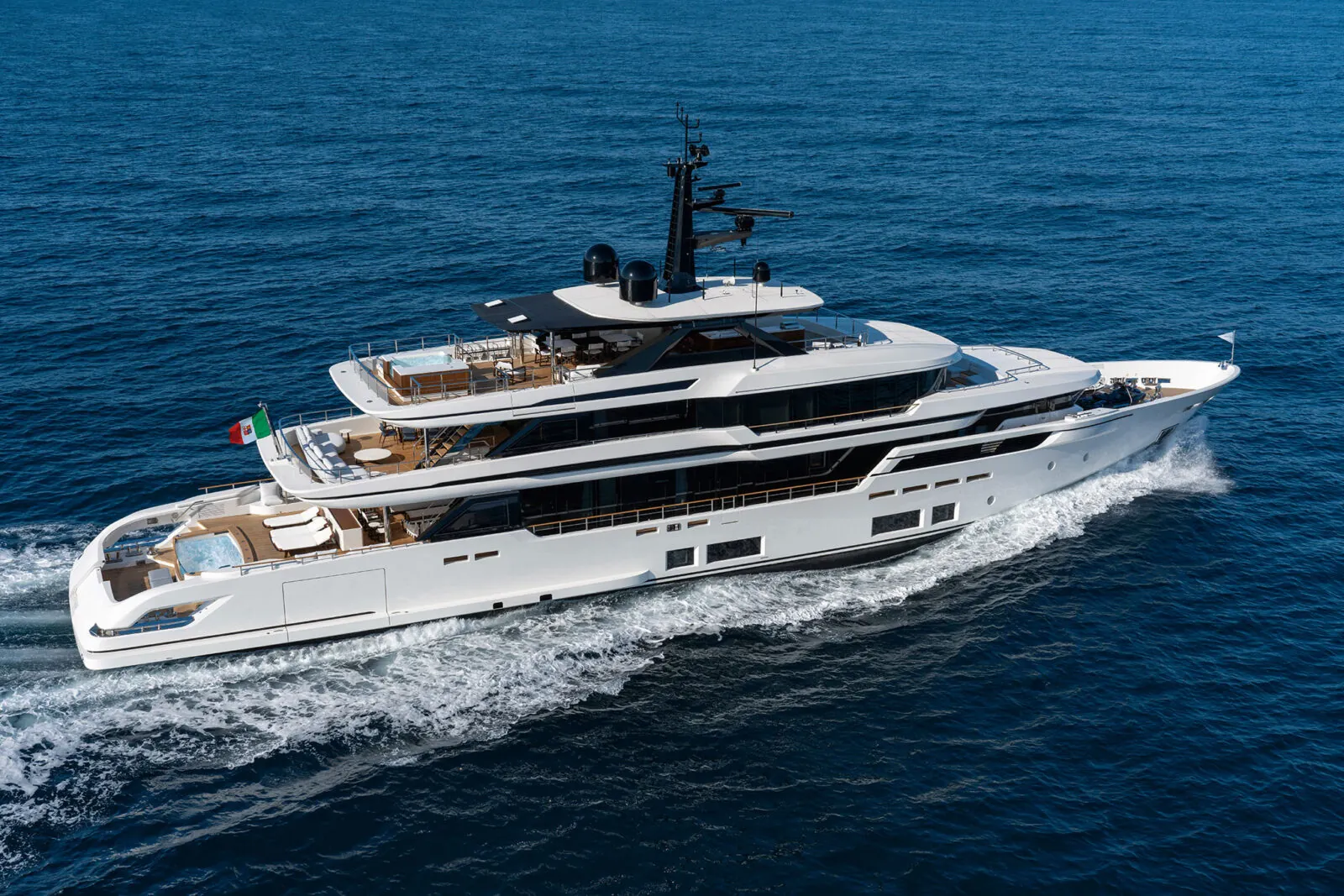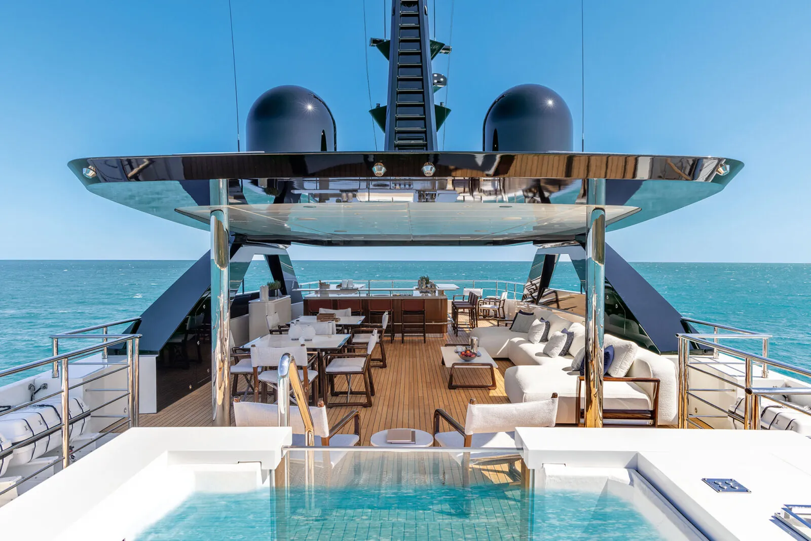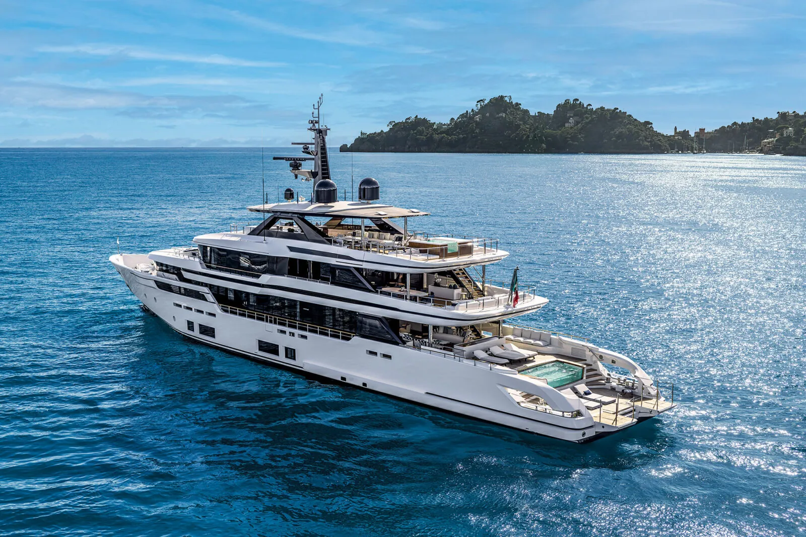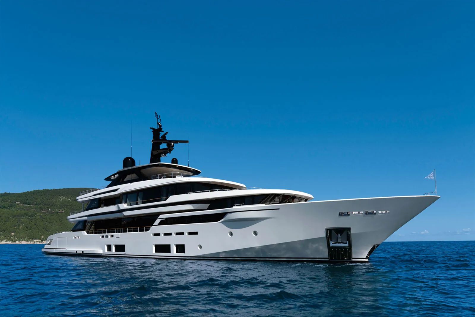 The liveable spaces on board cover over 800 square metres, of which 324 square metres of exteriors.The yacht can accommodate up to 12 guests in a master suite on the upper deck and in four cabins on the lower deck. There are also five cabins to ensure maximum comfort for the nine crew members, including the captain.