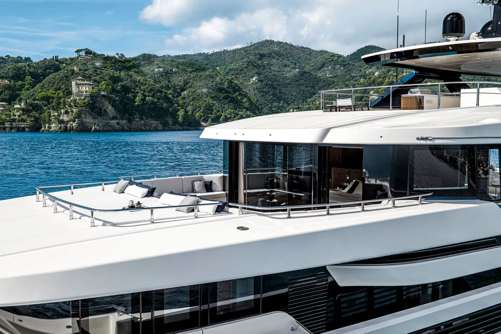 The yacht has been designed with the SCR (Selective Catalytic Reduction) system, delivering a 70% reduction in NOx emissions, and is IMO Tier III-certified, in line with Ferretti Group’s design vision, with its strong focus on respecting the environment and on sustainable development.