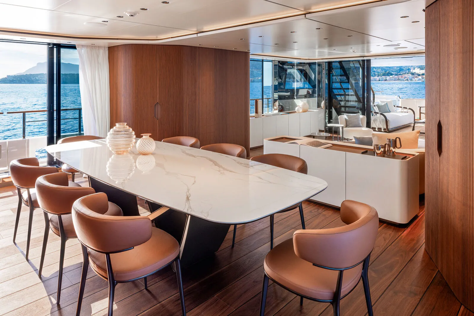 Aesthetic harmony between the colors, textures and materials is expressed with a distinctive, fluid approach that permeates every aspect of the design. This balance reflects the shipyard’s master craftsmanship and expertise.