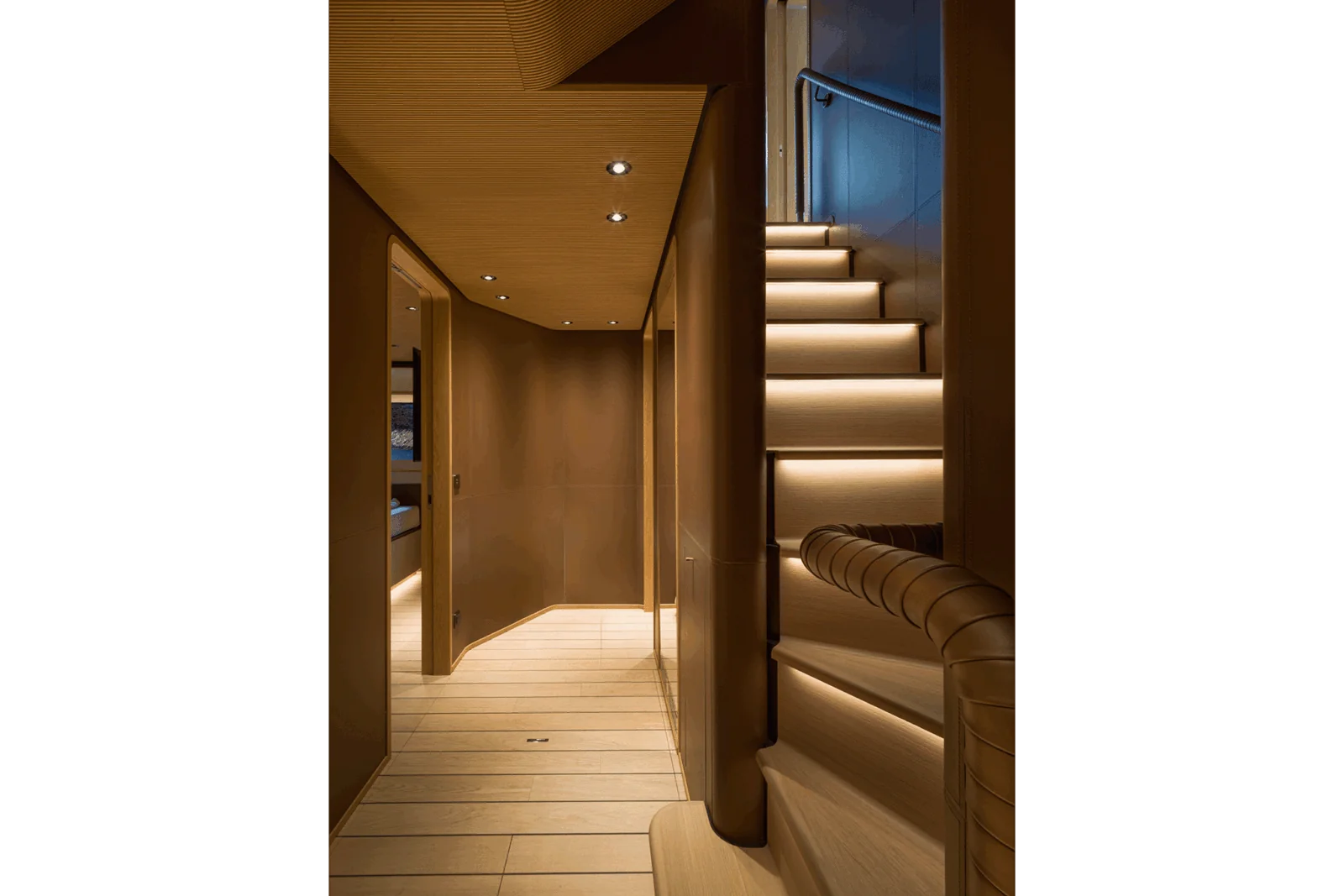An extraordinary place where freedom and dreams take wing on a beautiful journey in intimate touch with the sea. This sublime four-deck yacht, 38.76 meters long and 8 meters in the beam, with a displacement hull below 300 GT, is the ultimate made-to-measure yacht in the brand range.