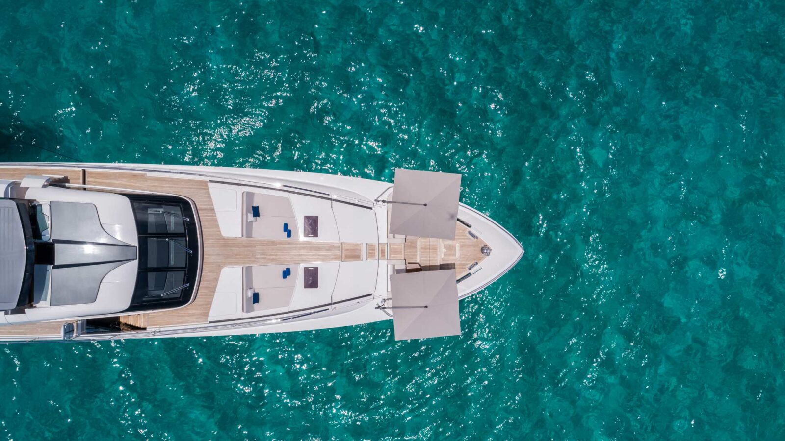 The light magnifies the spaces, adding to the sense of luxury and opening up sparkling views wherever you look. The side windows on the flybridge create a panoramic third deck, while the grand cockpit window’s two sections tilt open for an added dash of contemporary design flair.