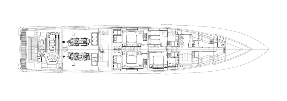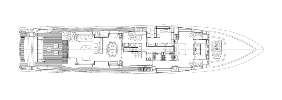 Every single feature of the Custom Line Saetta 140’ is the result of meticulous research and attention to detail. The star of the show is natural light, which floods into every setting on the yacht through expansive floor-to-ceiling glazed surfaces.