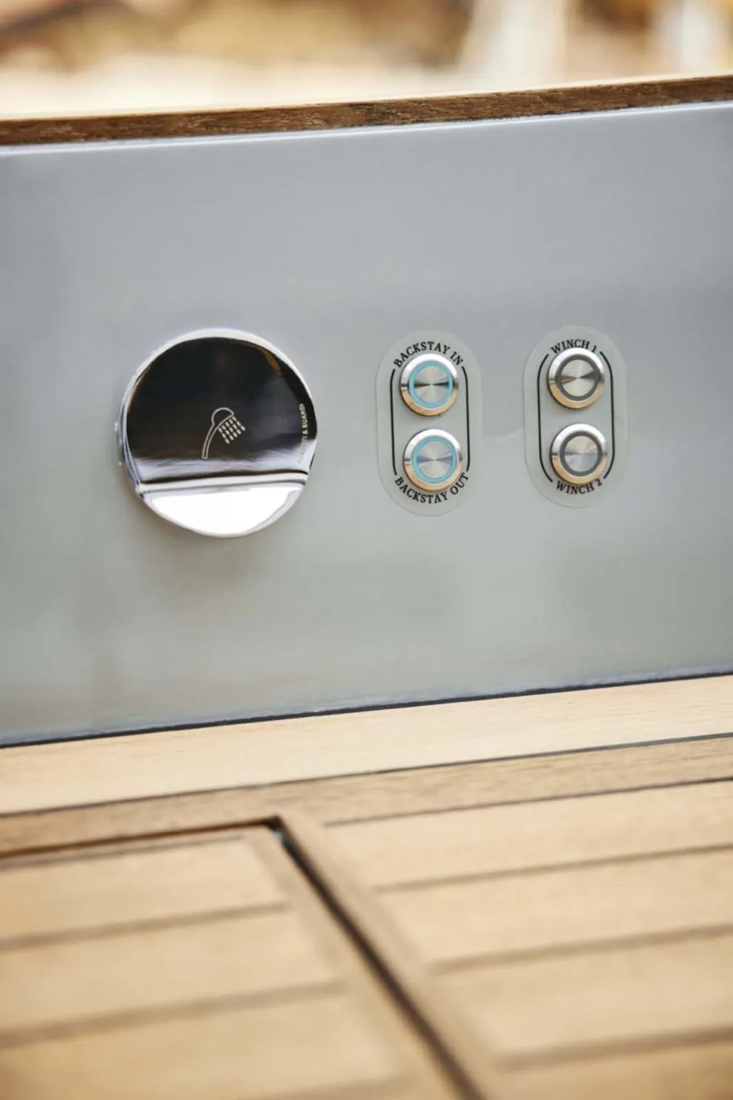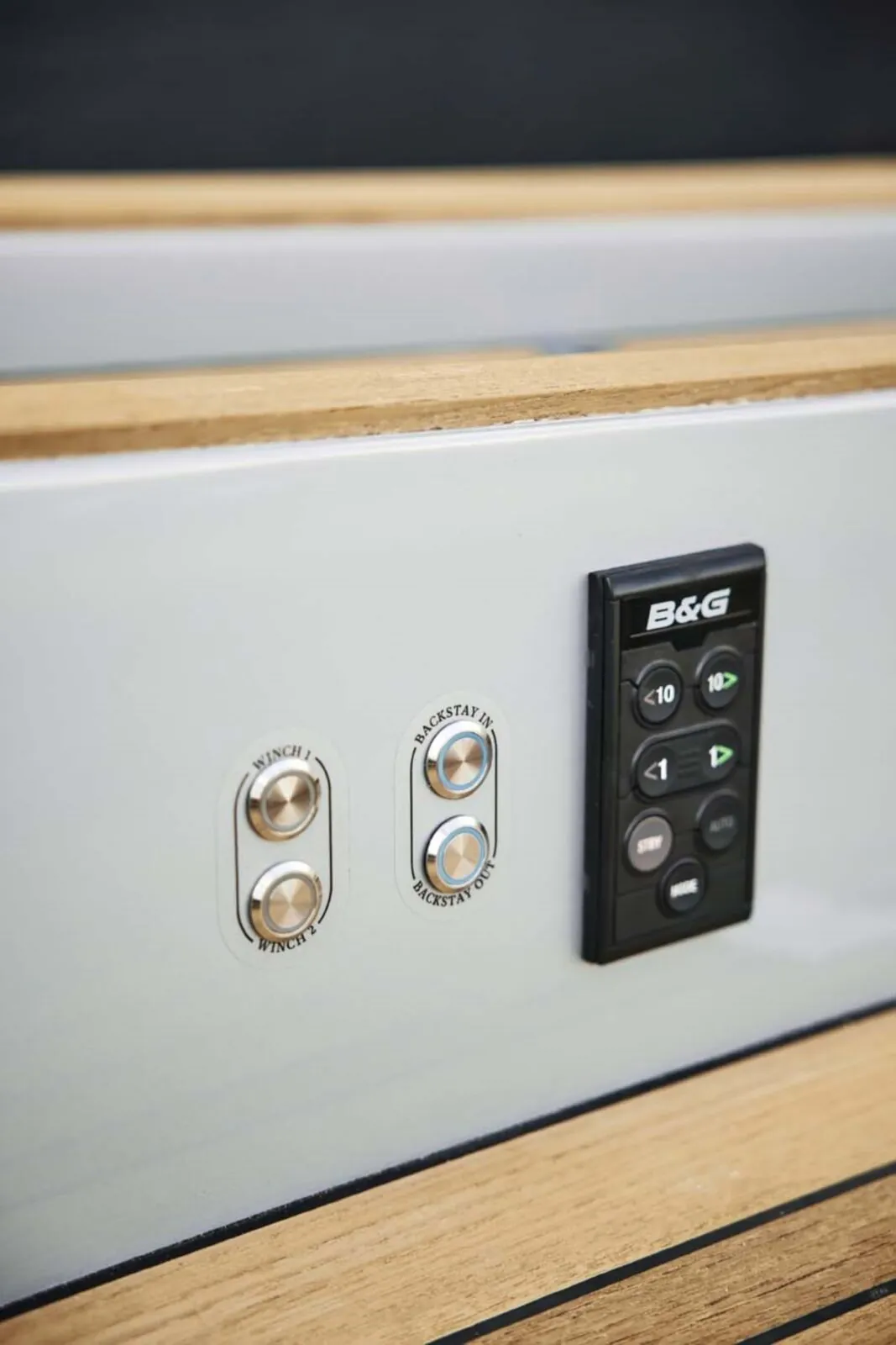 Plumb bows and long overhangs aft look good, but they also give the boat extra buoyancy forward to punch through the waves and additional waterline length for greater speed on the heel. A single spade rudder and deep 2.6m bulb keel combine to offer incredible stability and control, even with the full 75sqm upwind sailplan.