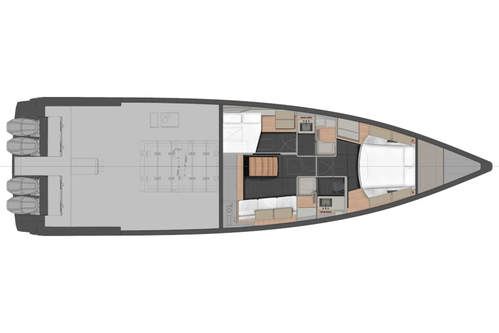 Without the inboard engines, there is naturally extra storage capacity. With the same flexible accommodation for one or two couples as the wallypower58, the boat is set up for exceedingly comfortable daysailing or overnighting.