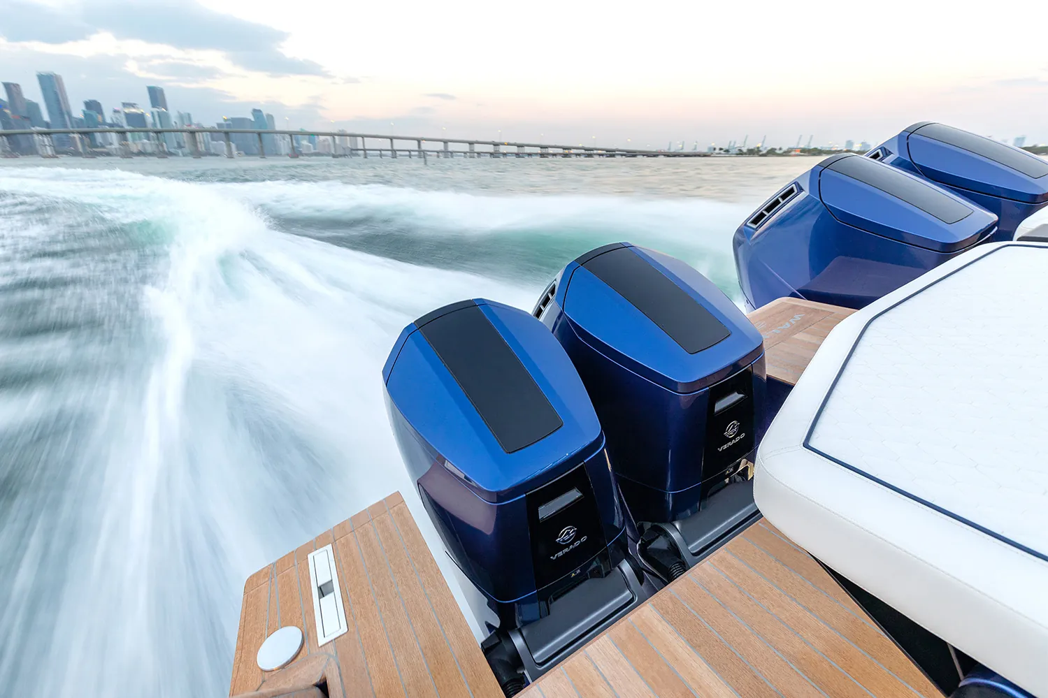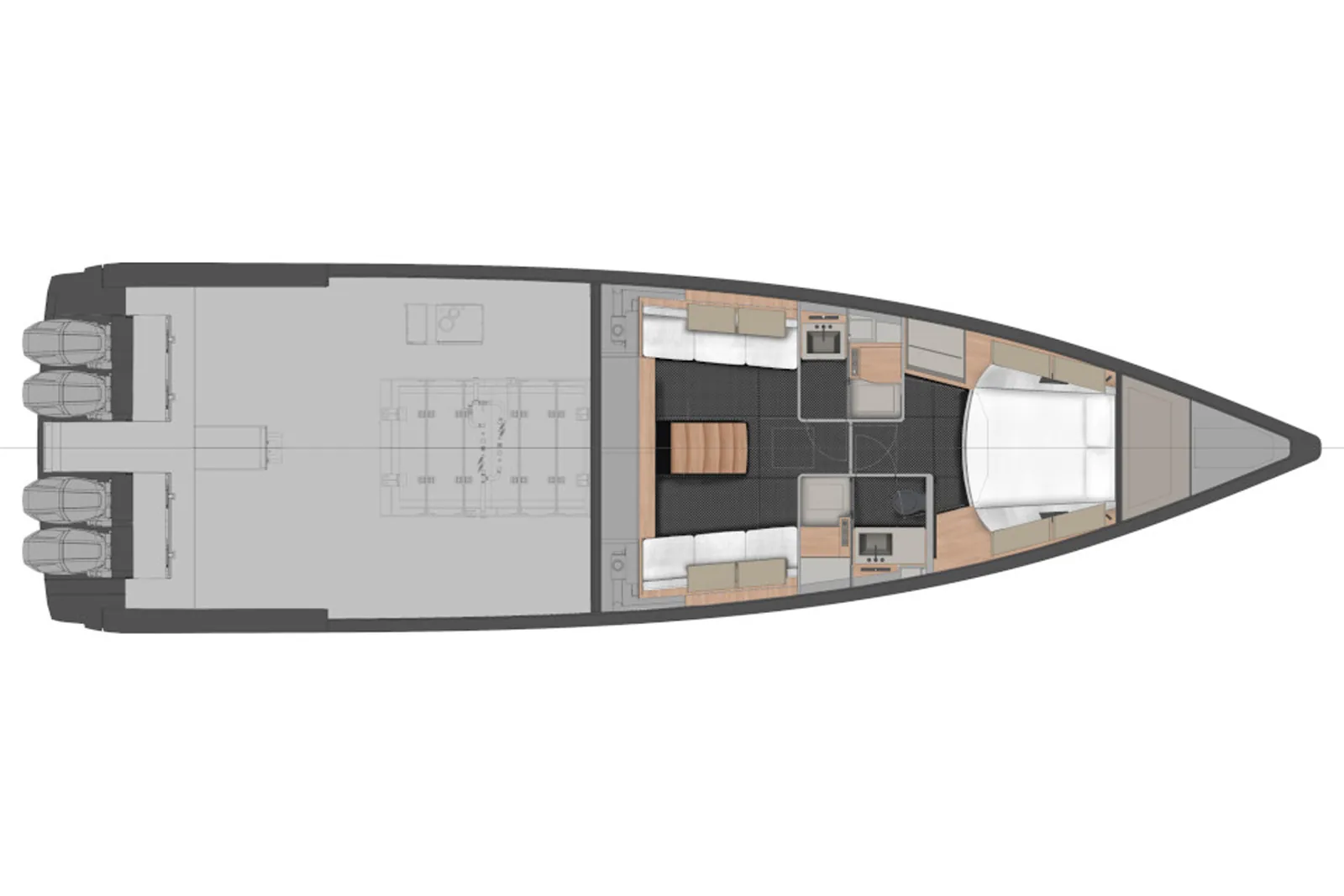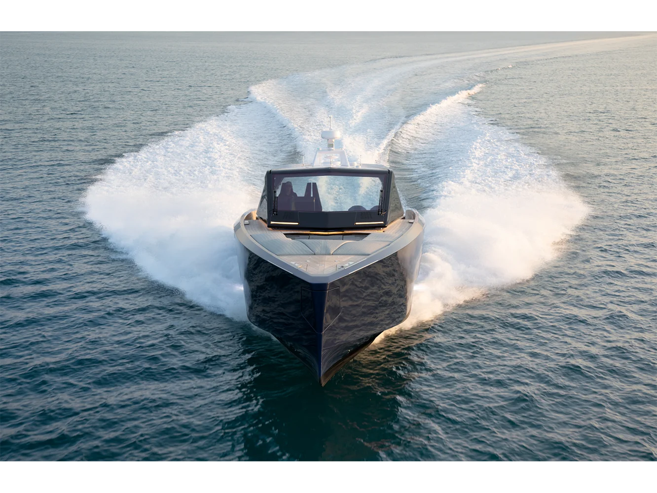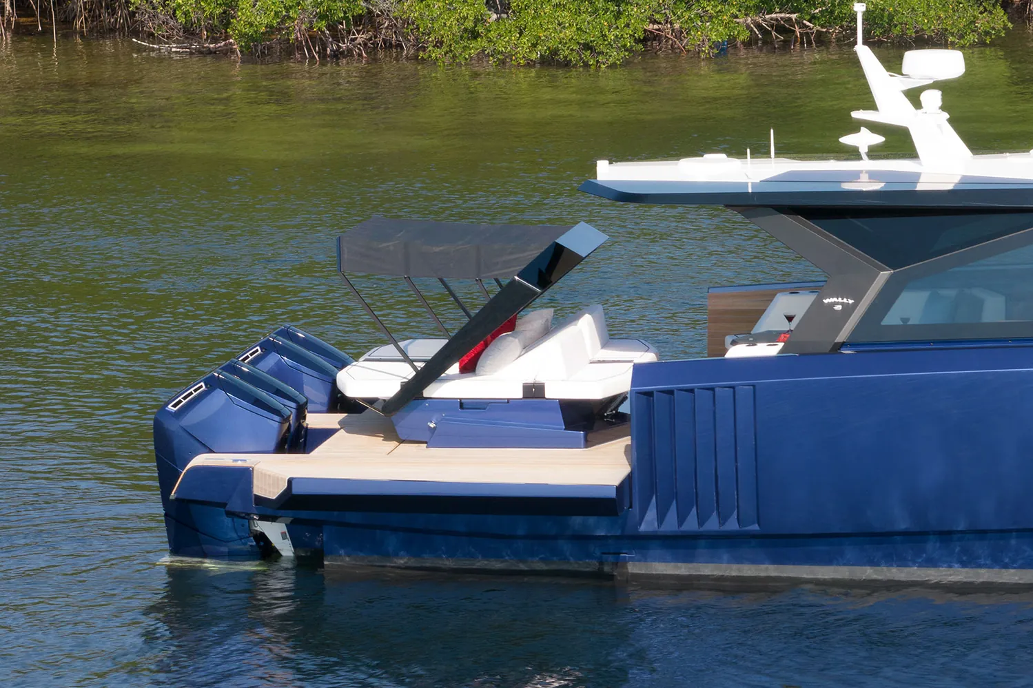 Performance is, therefore, a given, but Wally has also exploited other capabilities offered by the new Mercurys. They have a reduced draft compared to other models, making the boat suitable for shallow water operations, while the rotating gearcases and joystick maneuvering system ensure trouble-free precision docking in tight spaces.