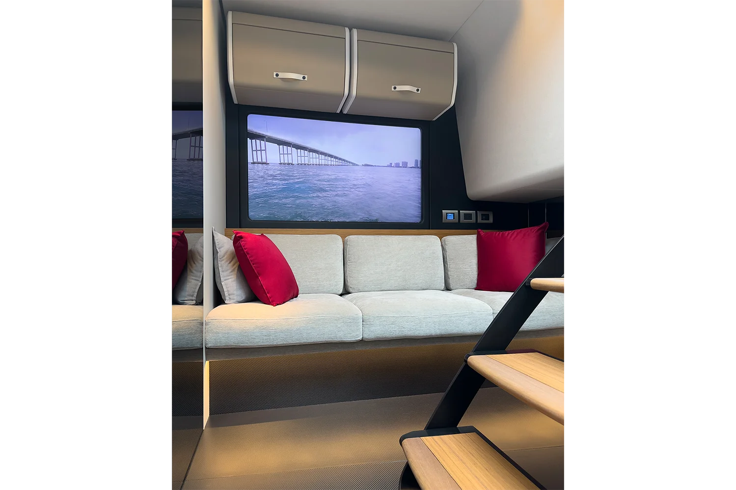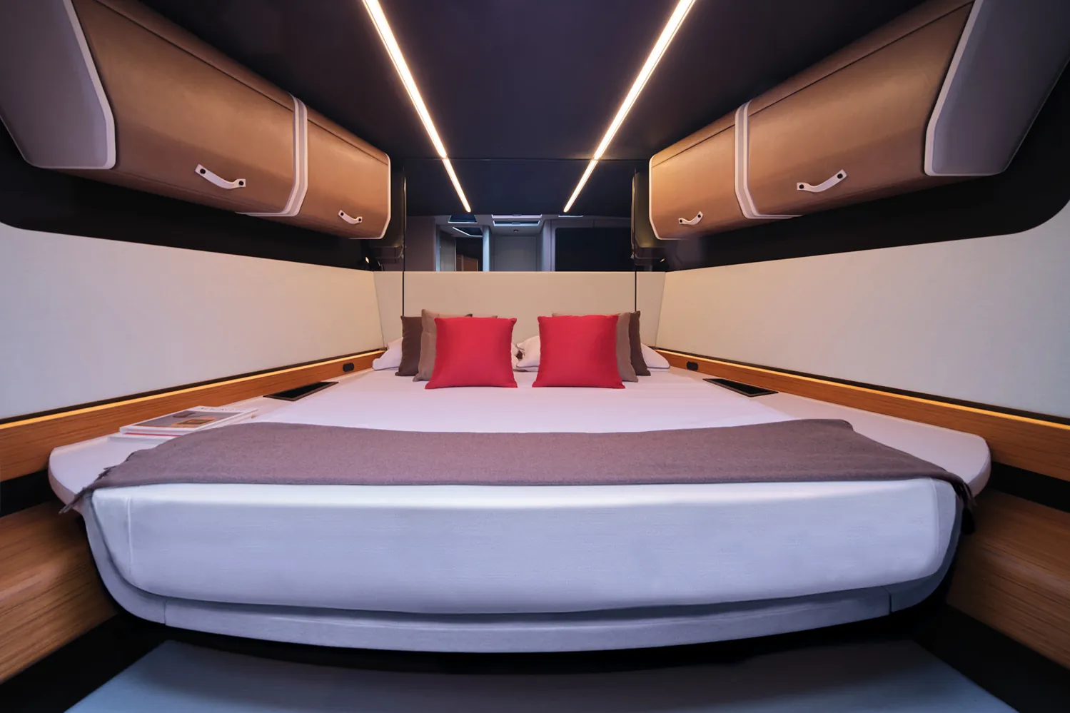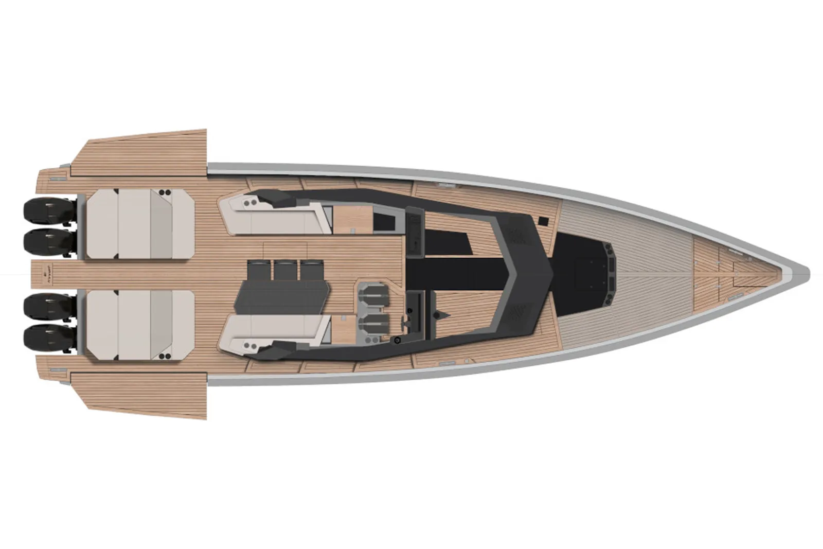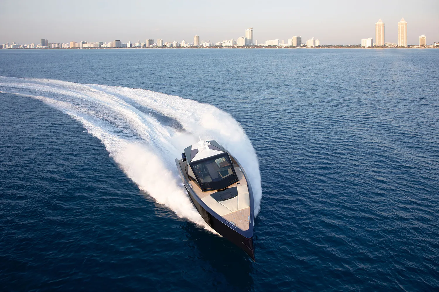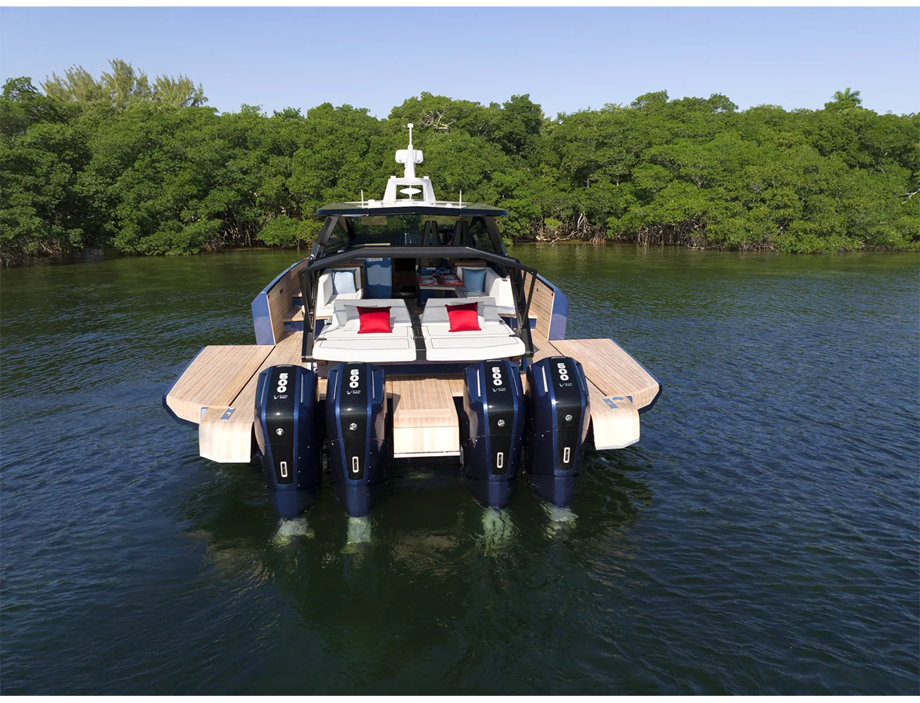 Performance is, therefore, a given, but Wally has also exploited other capabilities offered by the new Mercurys. They have a reduced draft compared to other models, making the boat suitable for shallow water operations, while the rotating gearcases and joystick maneuvering system ensure trouble-free precision docking in tight spaces.
