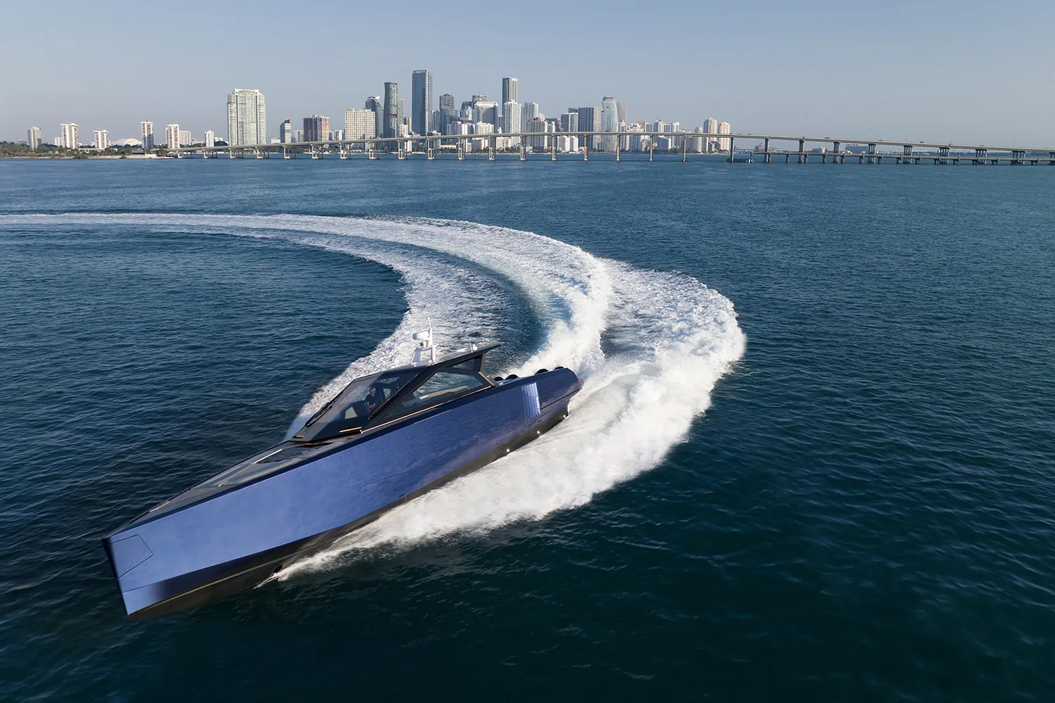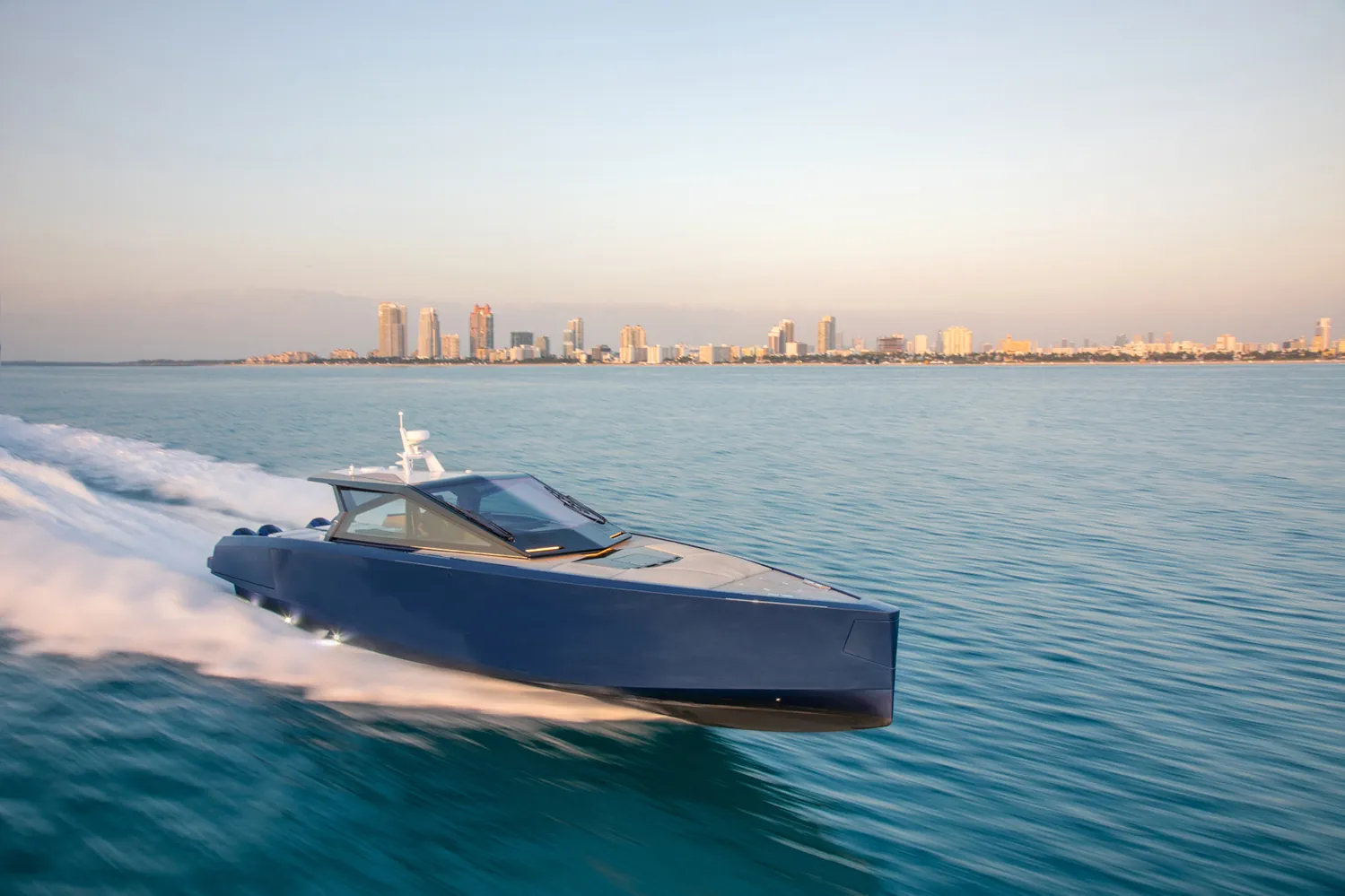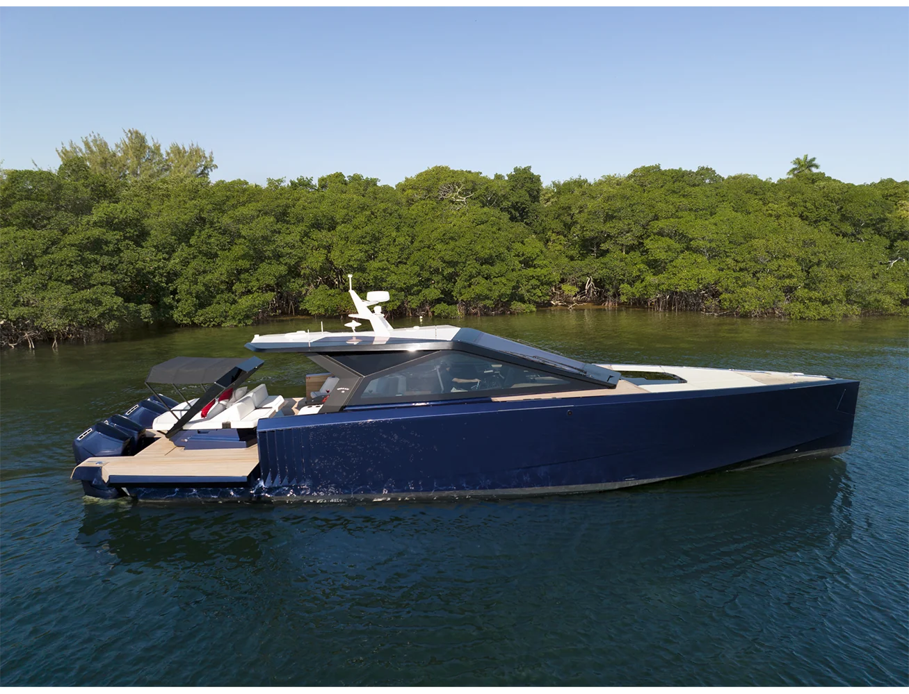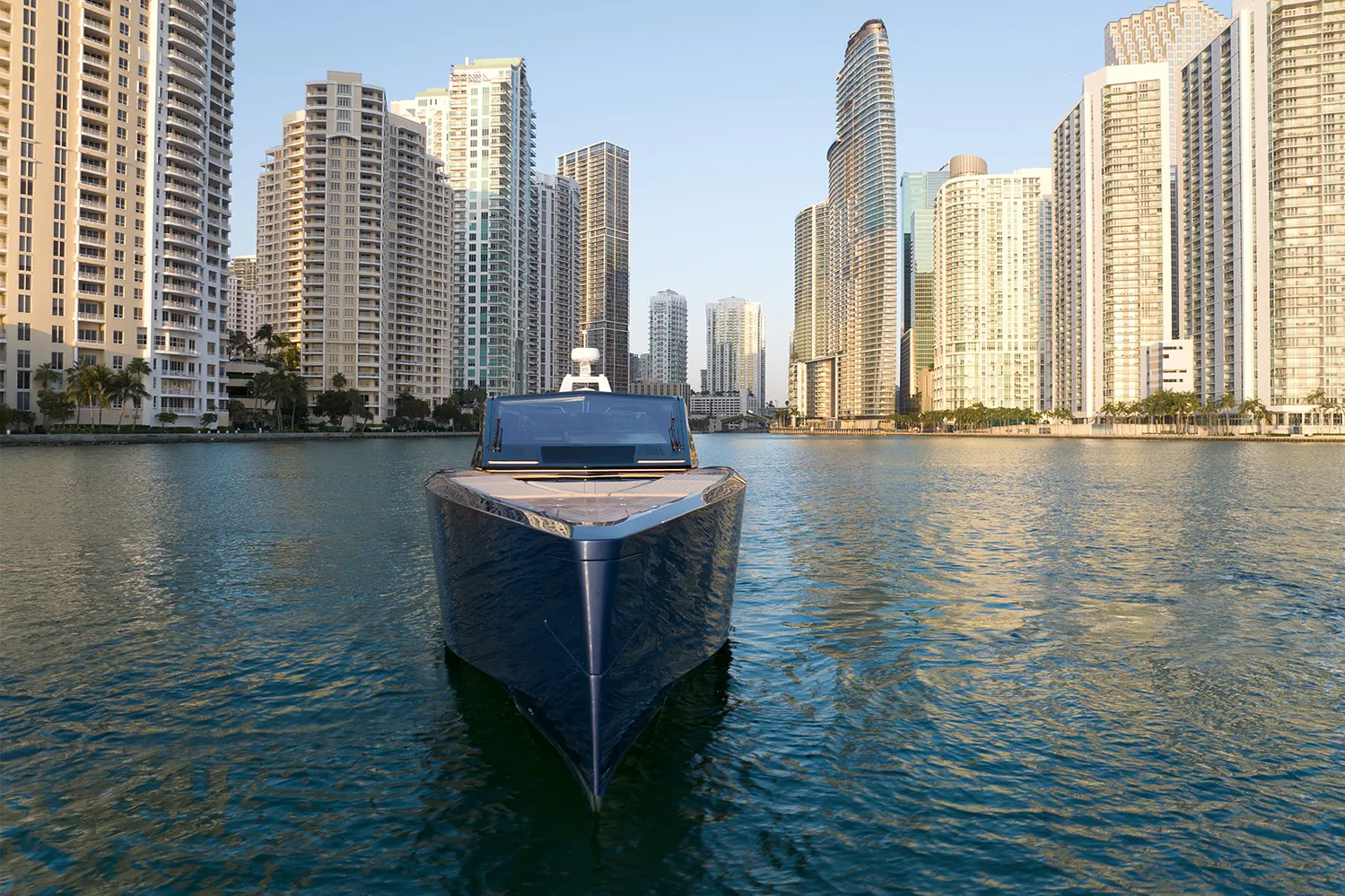 Performance is, therefore, a given, but Wally has also exploited other capabilities offered by the new Mercurys. They have a reduced draft compared to other models, making the boat suitable for shallow water operations, while the rotating gearcases and joystick maneuvering system ensure trouble-free precision docking in tight spaces.