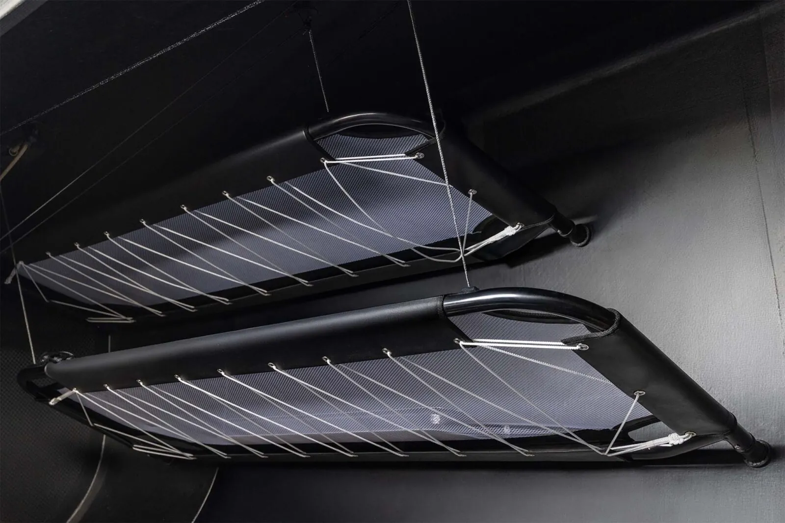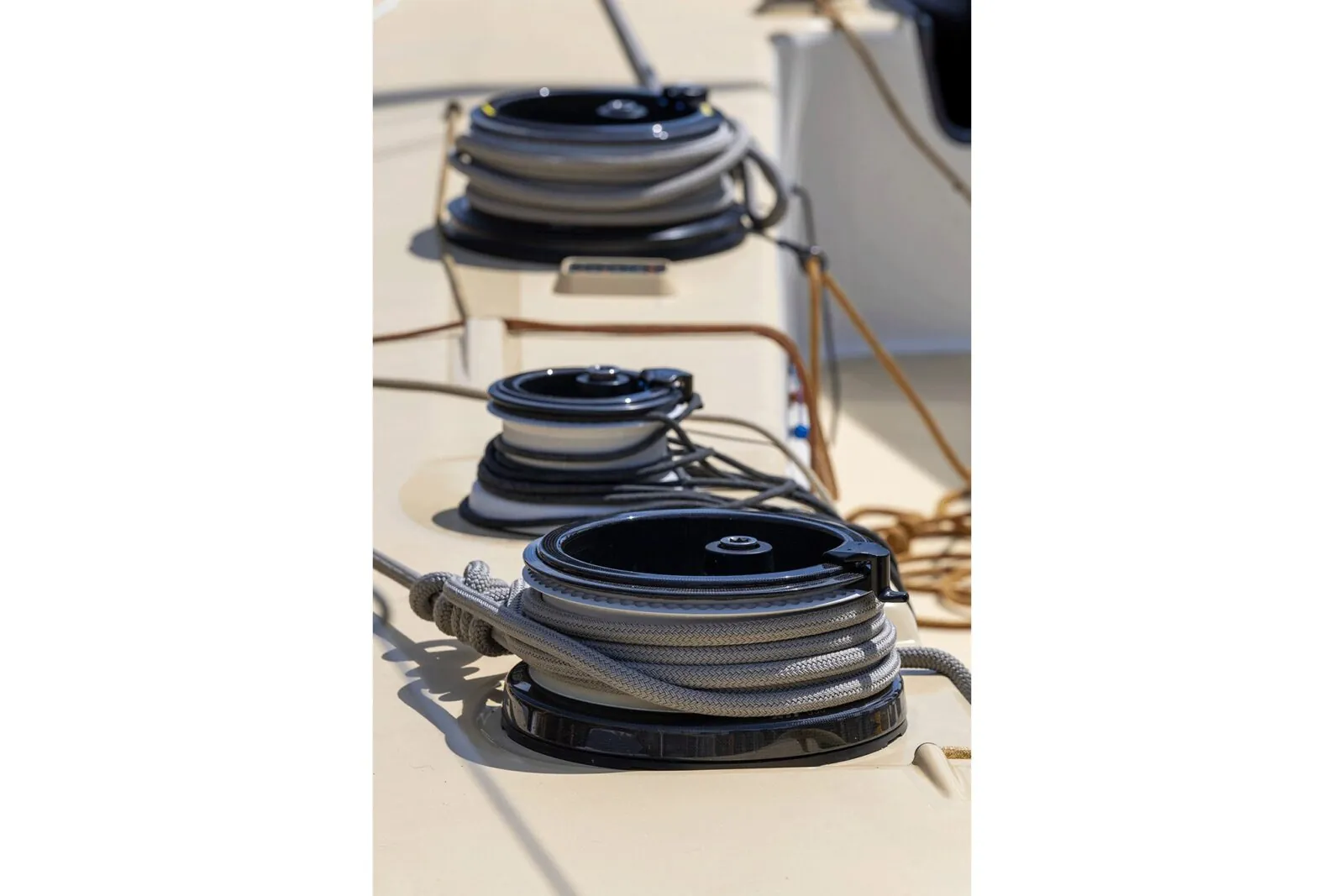 Only the water ballast is heavier than its competitors, by around 35 per cent. Systems are such that the full 2.7t of water can be pumped from one side to the other in around six seconds, meaning that the boat can tack short and fast. In sail trials, it is hitting its expected upwind speeds of 10.5-11.00 knots with ease and managing to match or even exceed wind speed going down.