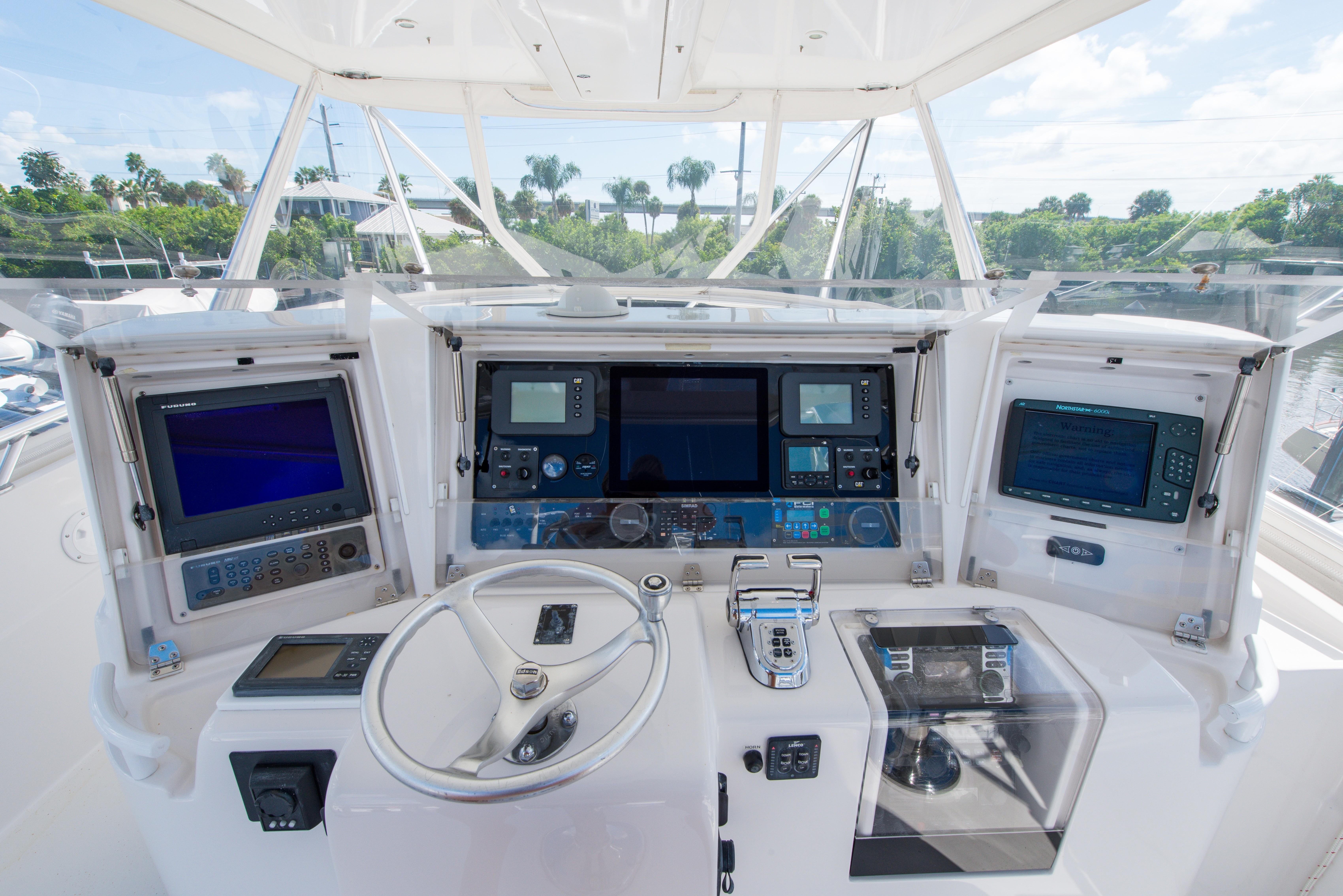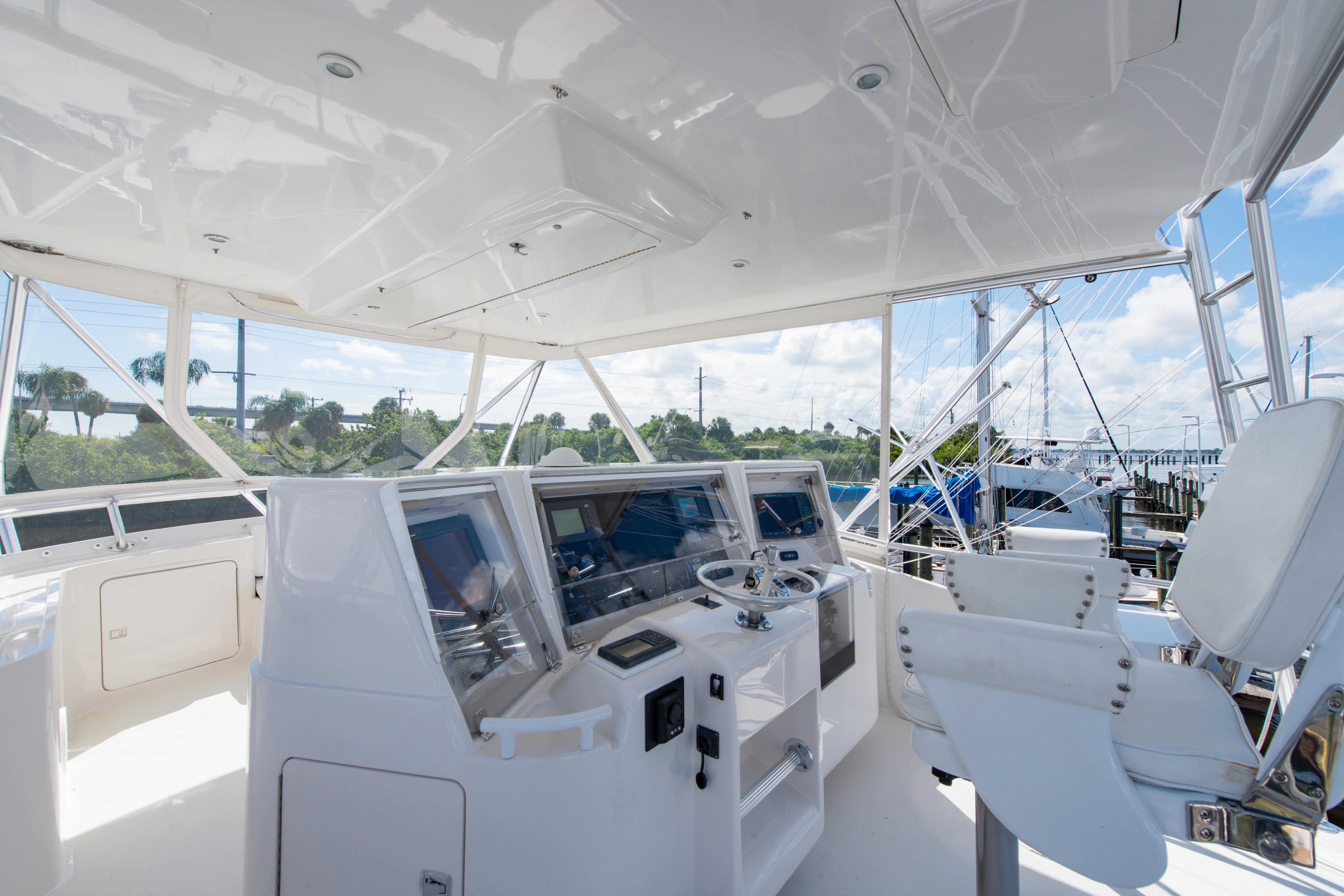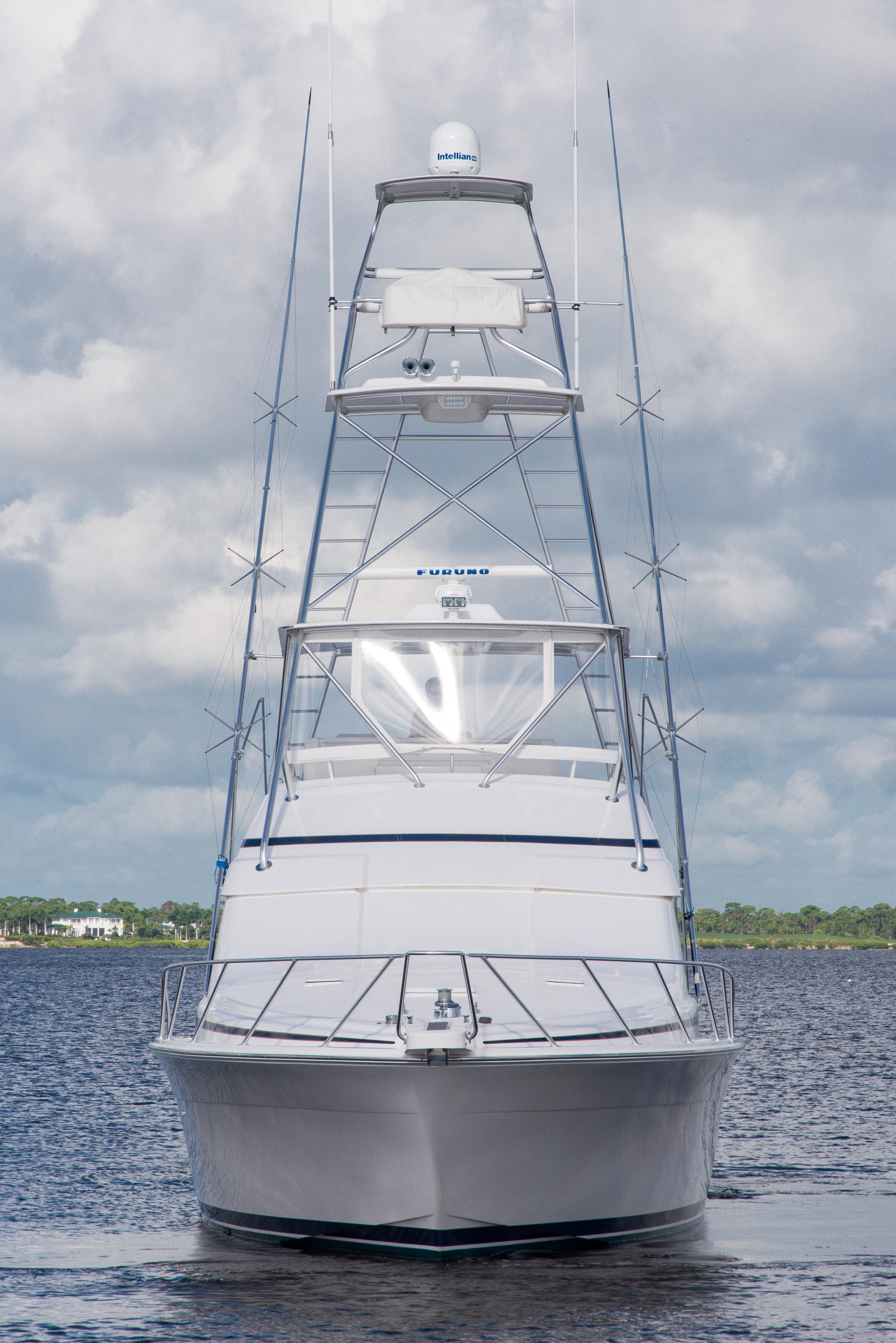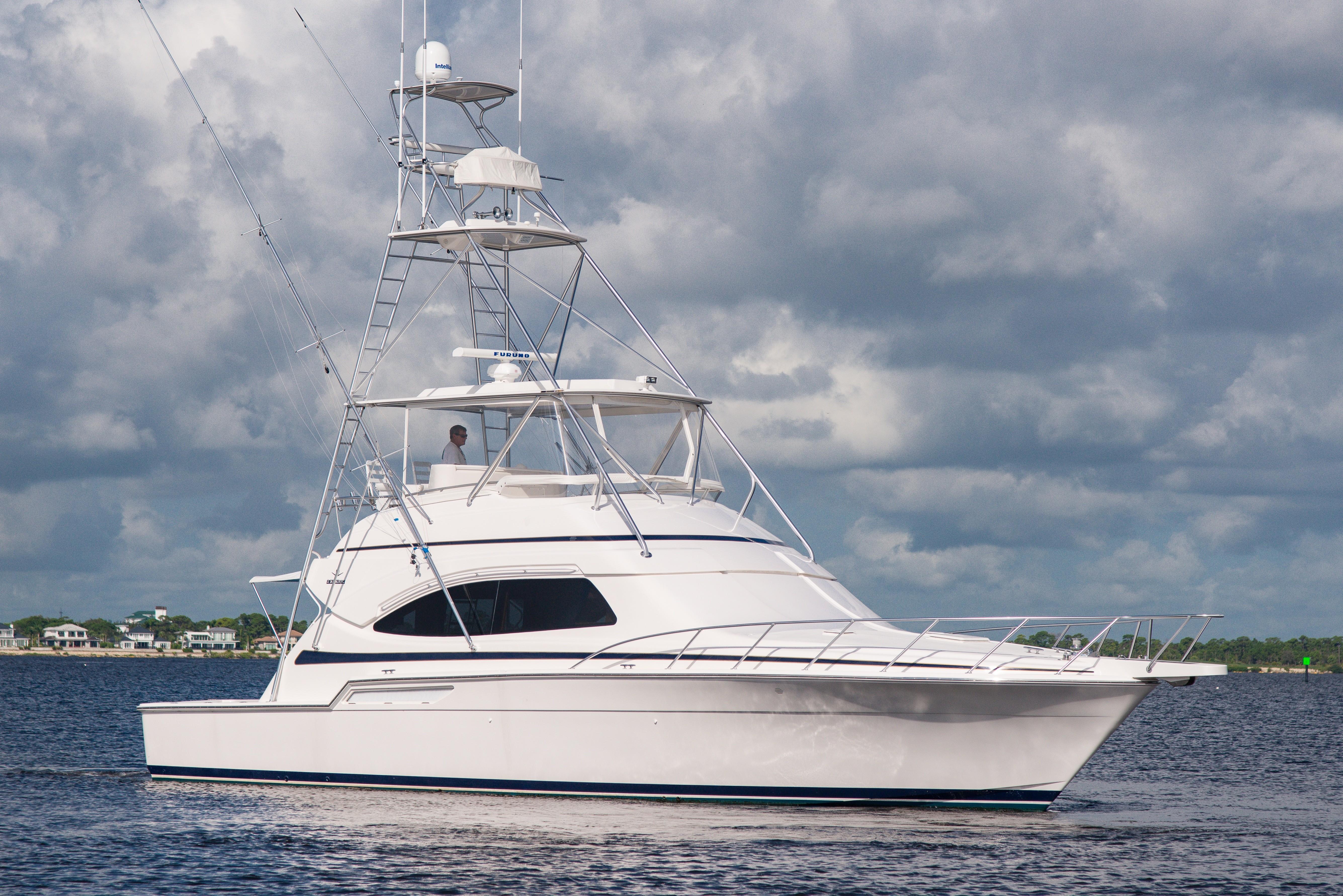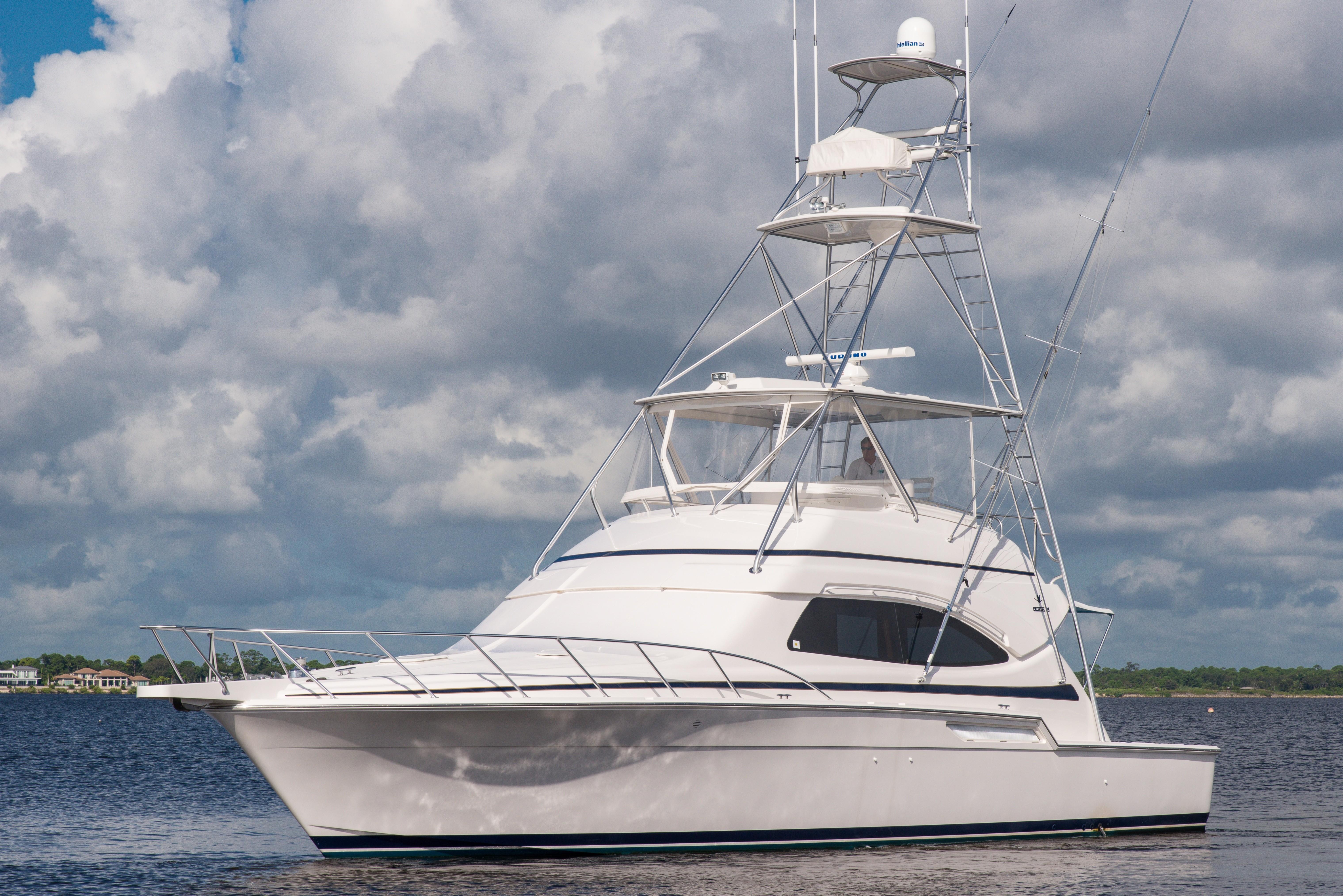 The Bertram 510 Convertible reflects the Italian styling common to all late model Bertram convertibles following the company’s 1998 acquisition by Ferretti Yachts. With her elliptical windows and sweeping curves, the 510 was a clear departure from the classic Bertram look. Retained, however, were the deep V hull and large fishing cockpit long associated with the Bertram brand.