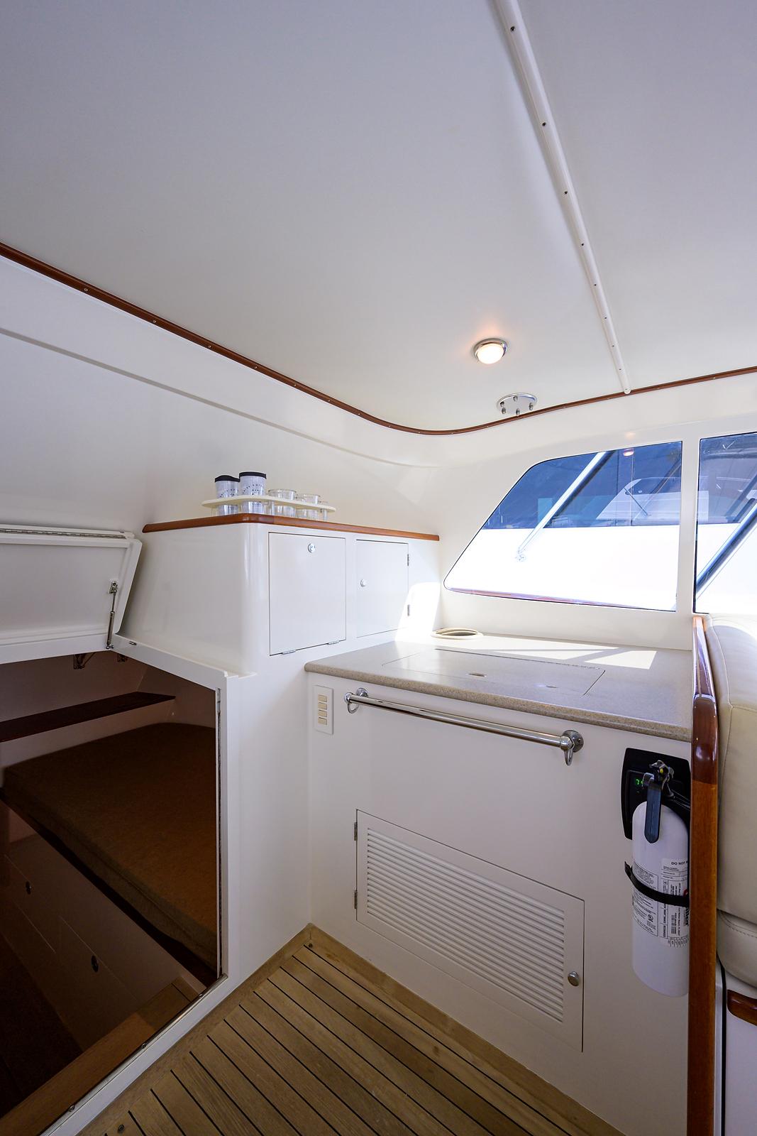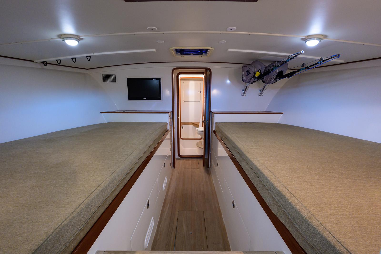 SARAH JEAN is powered with reliable Cummins QSC 540 HP power. She is a fantastic sea boat and can cruise at 28-30 knots with great efficiency. Her fuel capacity has been updated and the boat now carries 530 gallons, which equates to a 400-plus mile range at cruising speeds. SARAH JEAN has a custom aft bulkhead that was designed and installed by John Bayliss at Bayliss Boatworks. The amount of updating throughout is tremendous and this spec sheet truly does not do the boat justice.