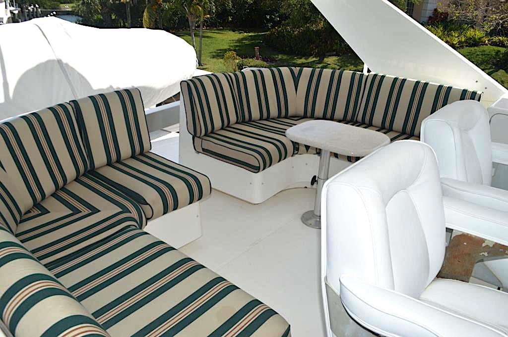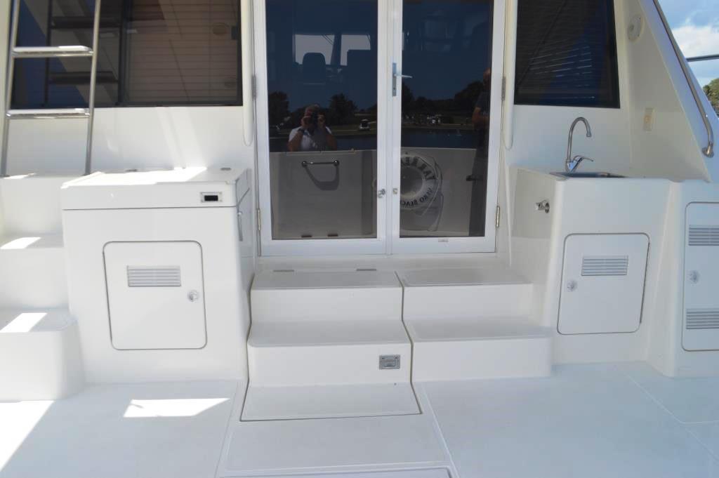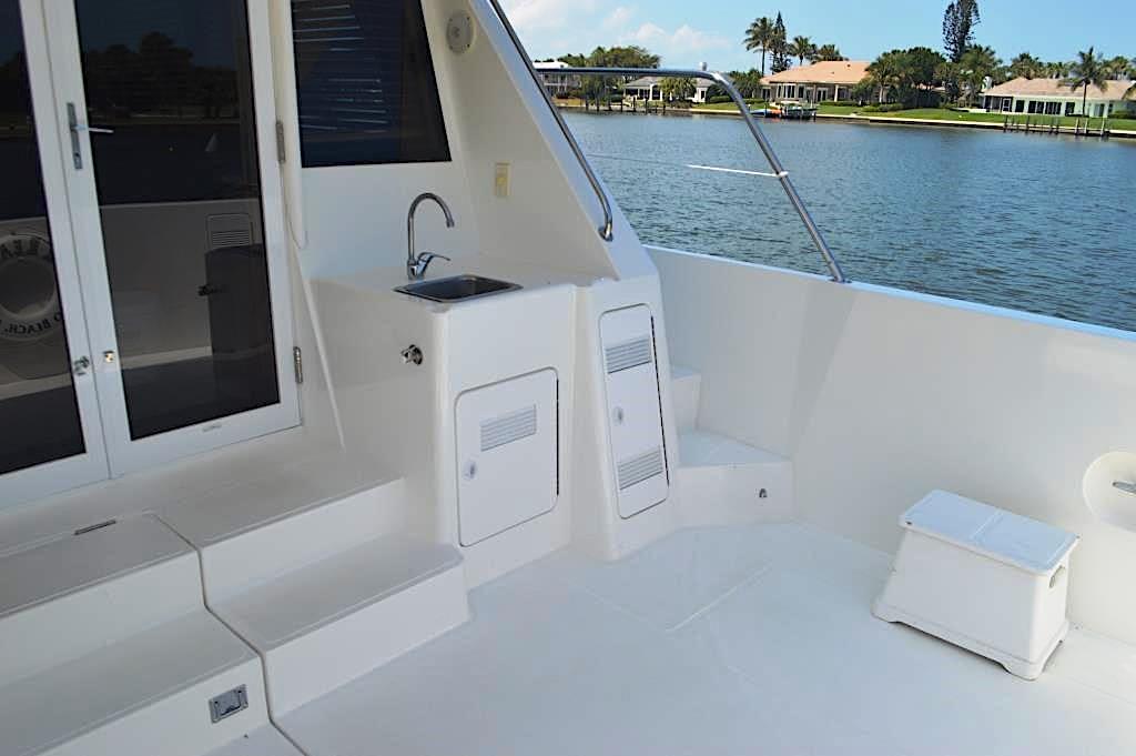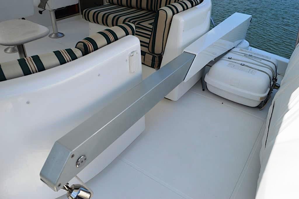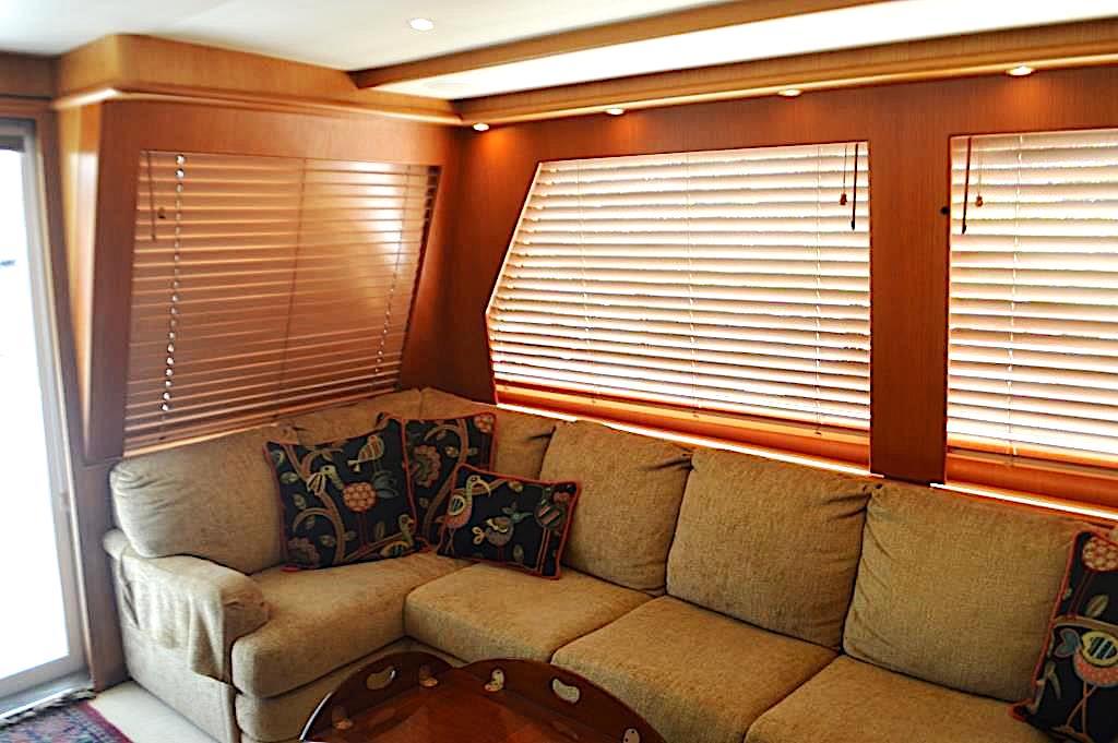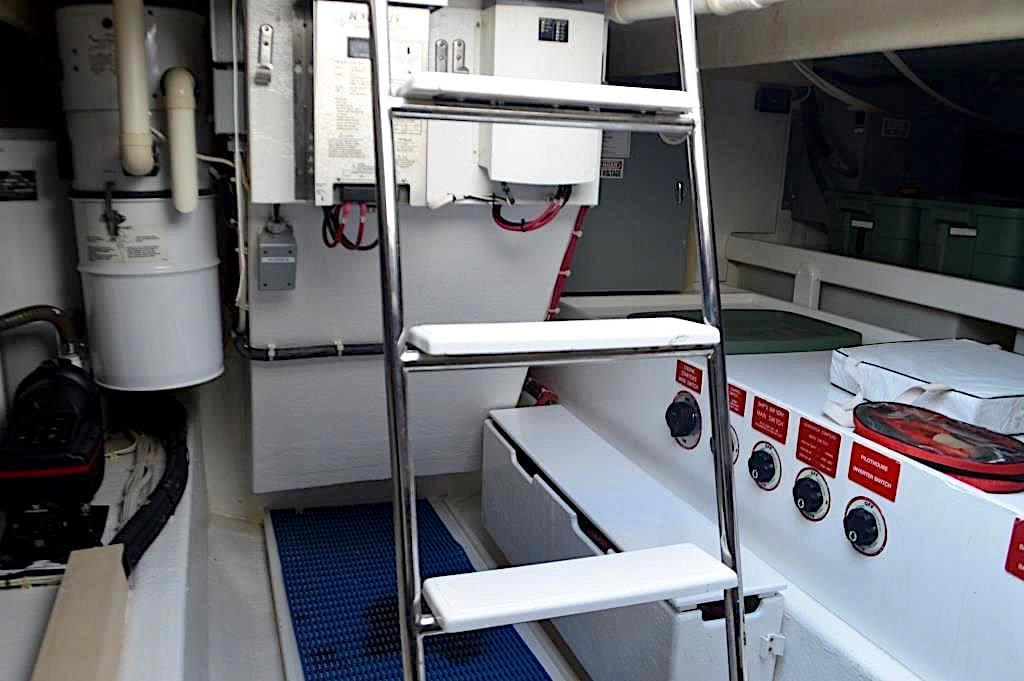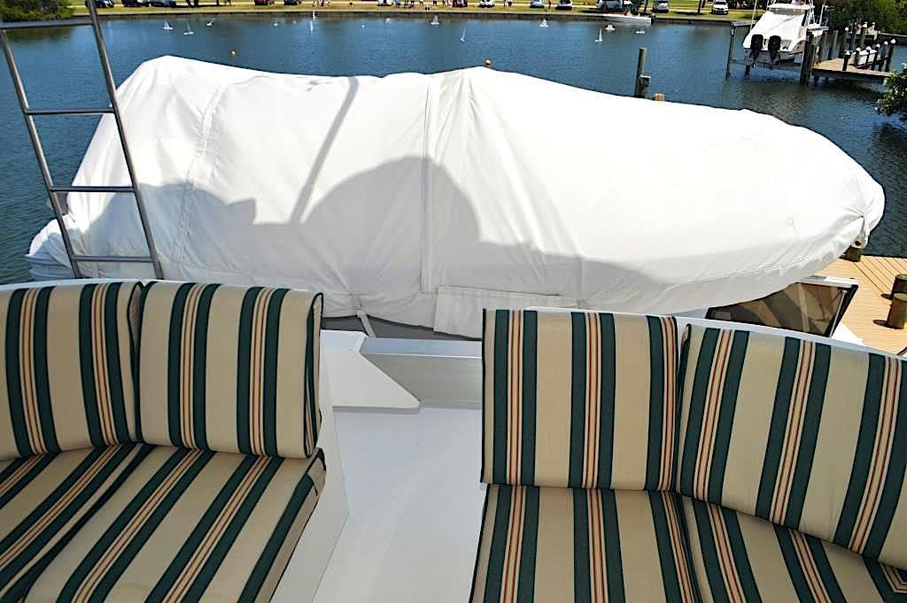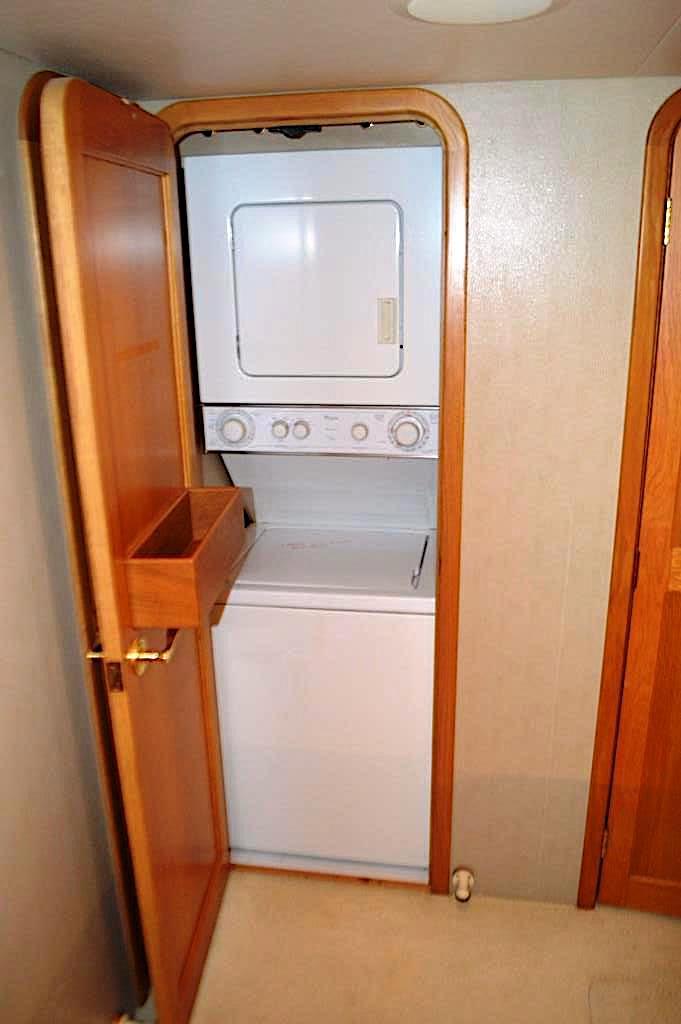 Highlights include a tasteful salon with U-shaped seating, two occasional chairs, and an entertainment center; a pilothouse designed with a full-service galley with dinette; a full-beam master stateroom with queen berth, queen VIP stateroom, and 3rd stateroom with over/under berth; and a standup engine room with easy cockpit access. There also is a large lazarette with spacious storage.