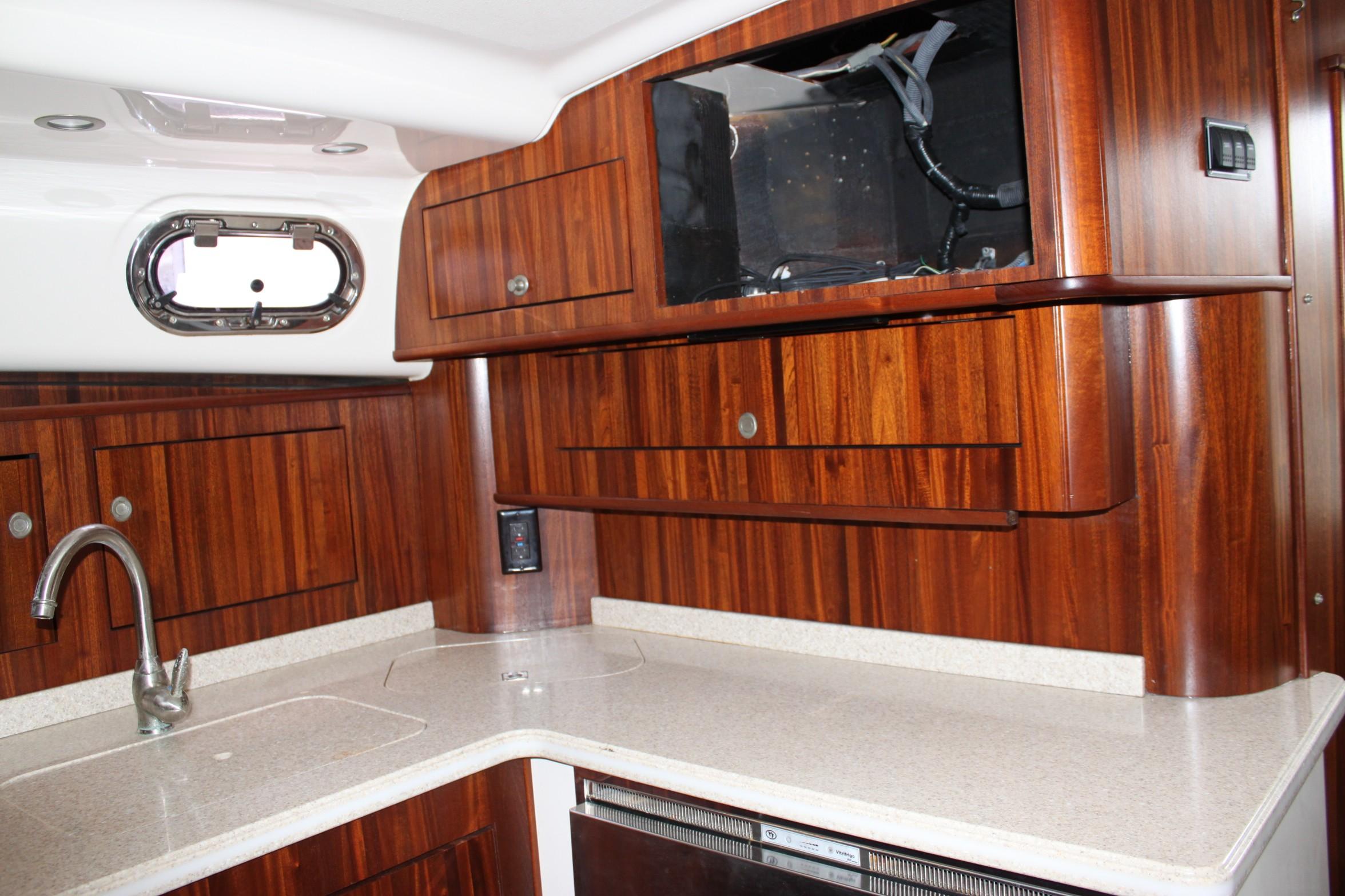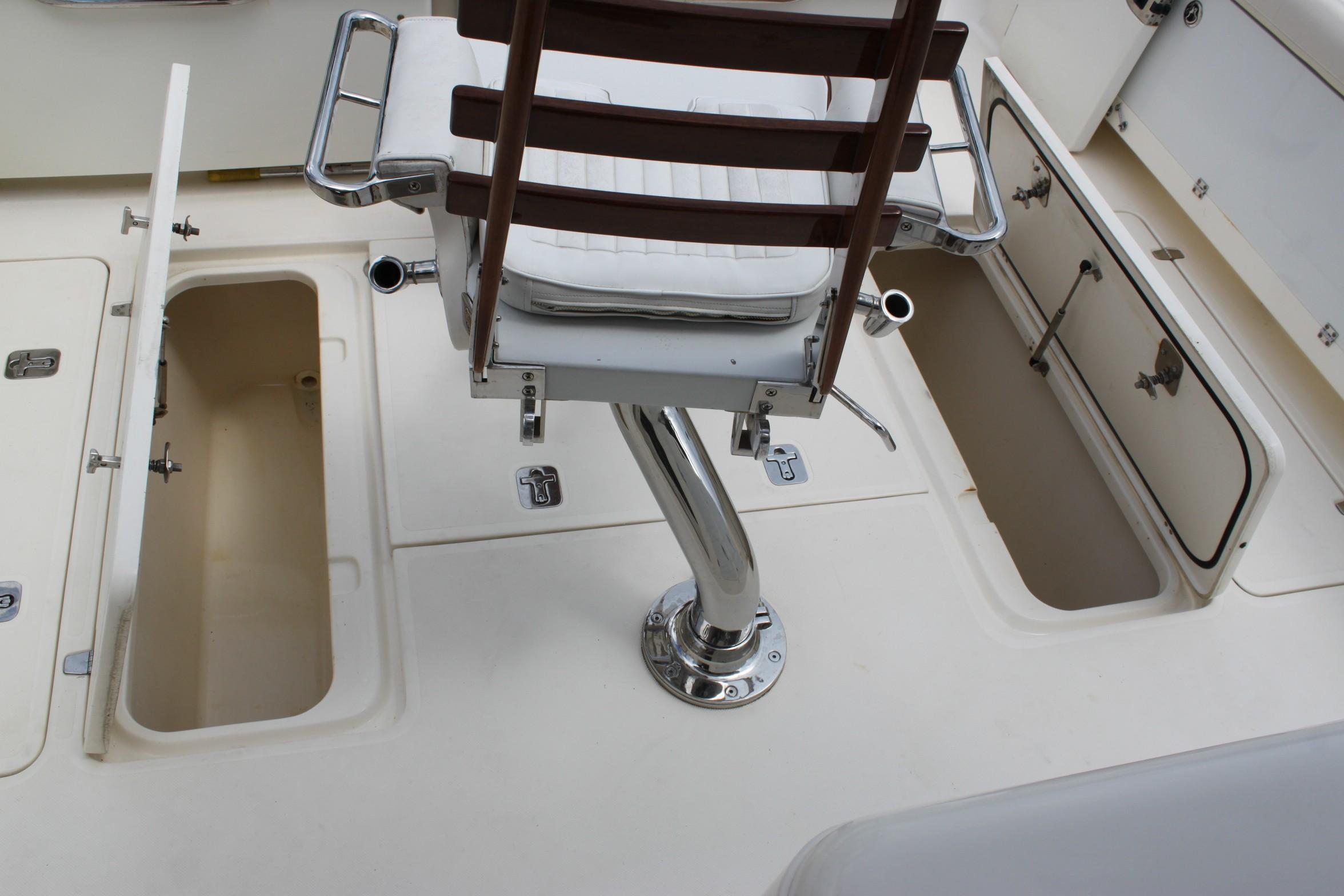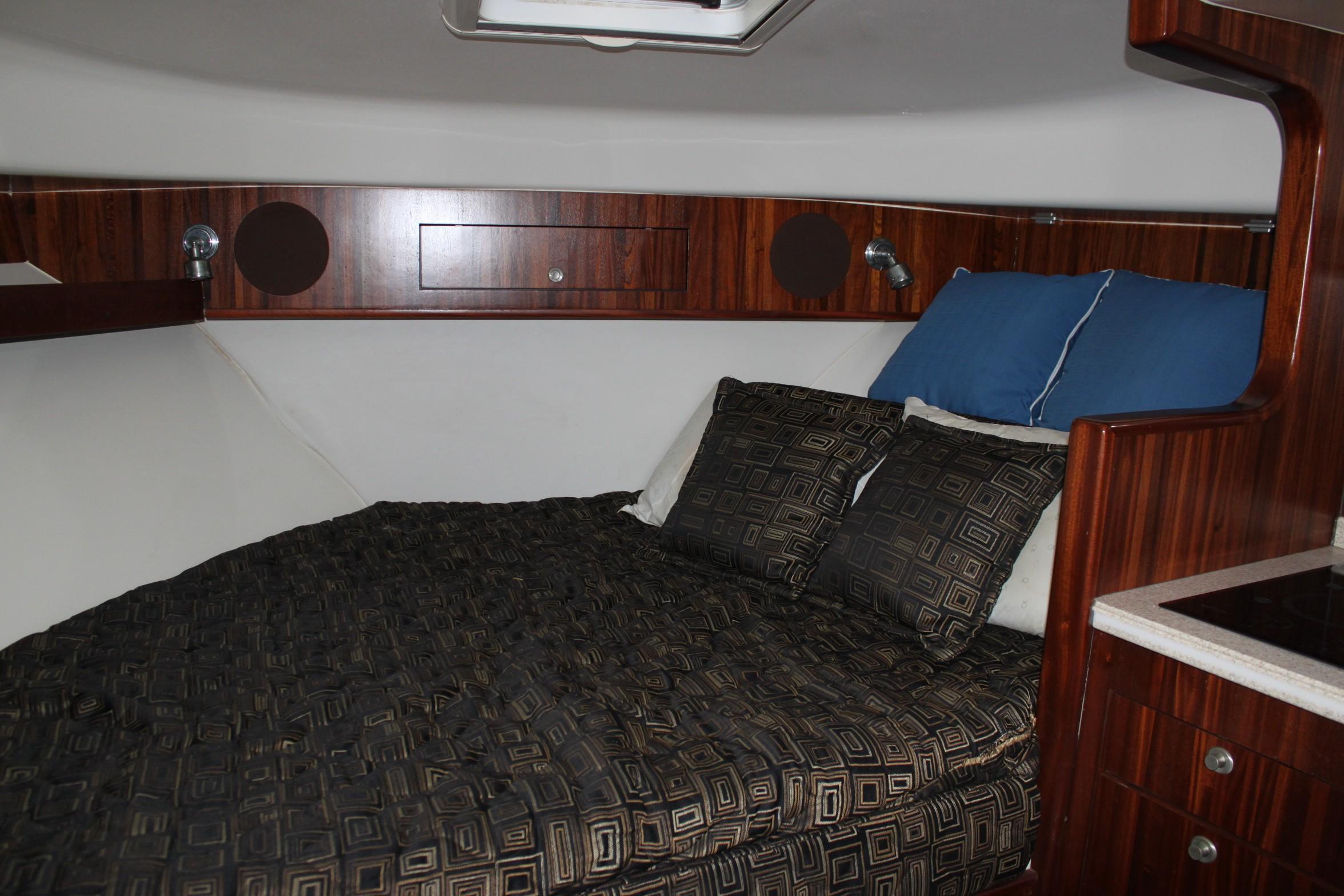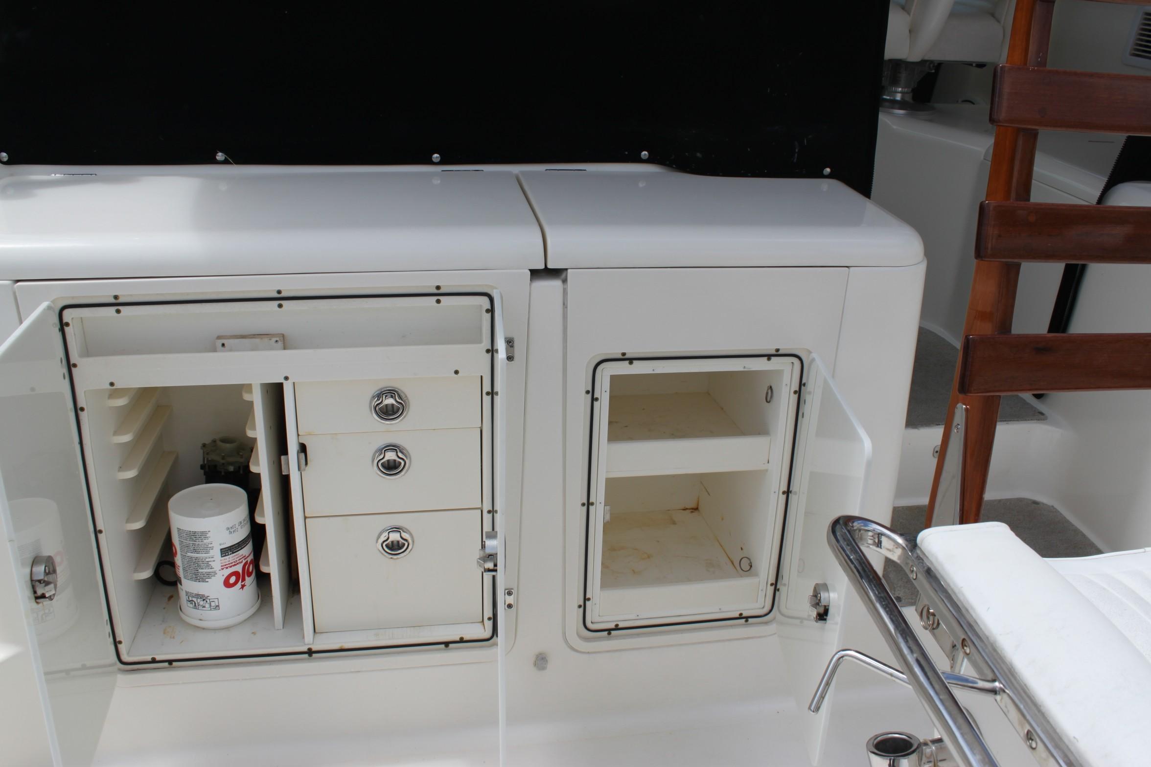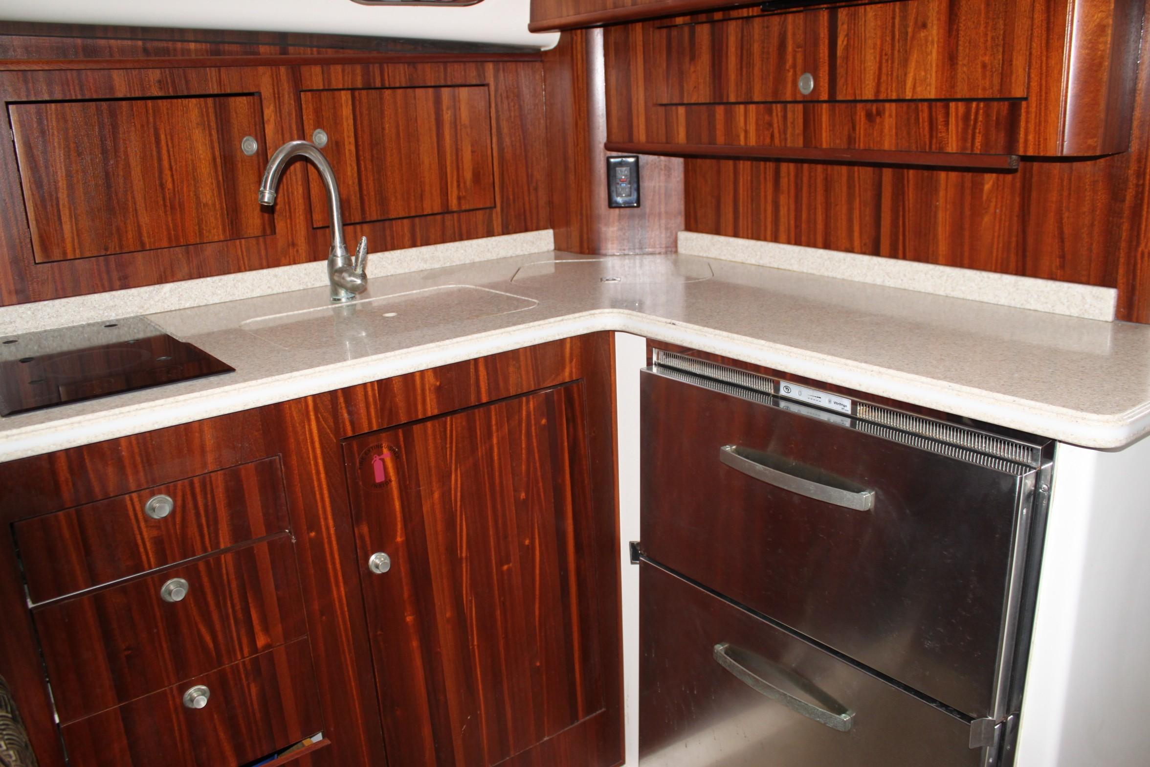 This boat is for the serious fishermen with an eye for quality. For more than 50 years and three generations the owners of Pursuit have set an unsurpassed standard of quality in marine design and manufacturing. Word on the docks is that you can't go wrong with a Pursuit. If you want to fish - if you have to fish, you'll chose the Pursuit 375. The 375 combines performance, seaworthiness along with the fish ability of the world’s top inboard battle wagons with the luxuriousness of the most comfortable cruisers. She features a 13-foot beam which results in an nice large cockpit and great space for accommodations in lower deck area with its Corian-countered kitchen — complete with a two-burner glass stove top, microwave, stainless steel refrigerator/freezer and stainless steel polished sink with hot and cold pressurized water.