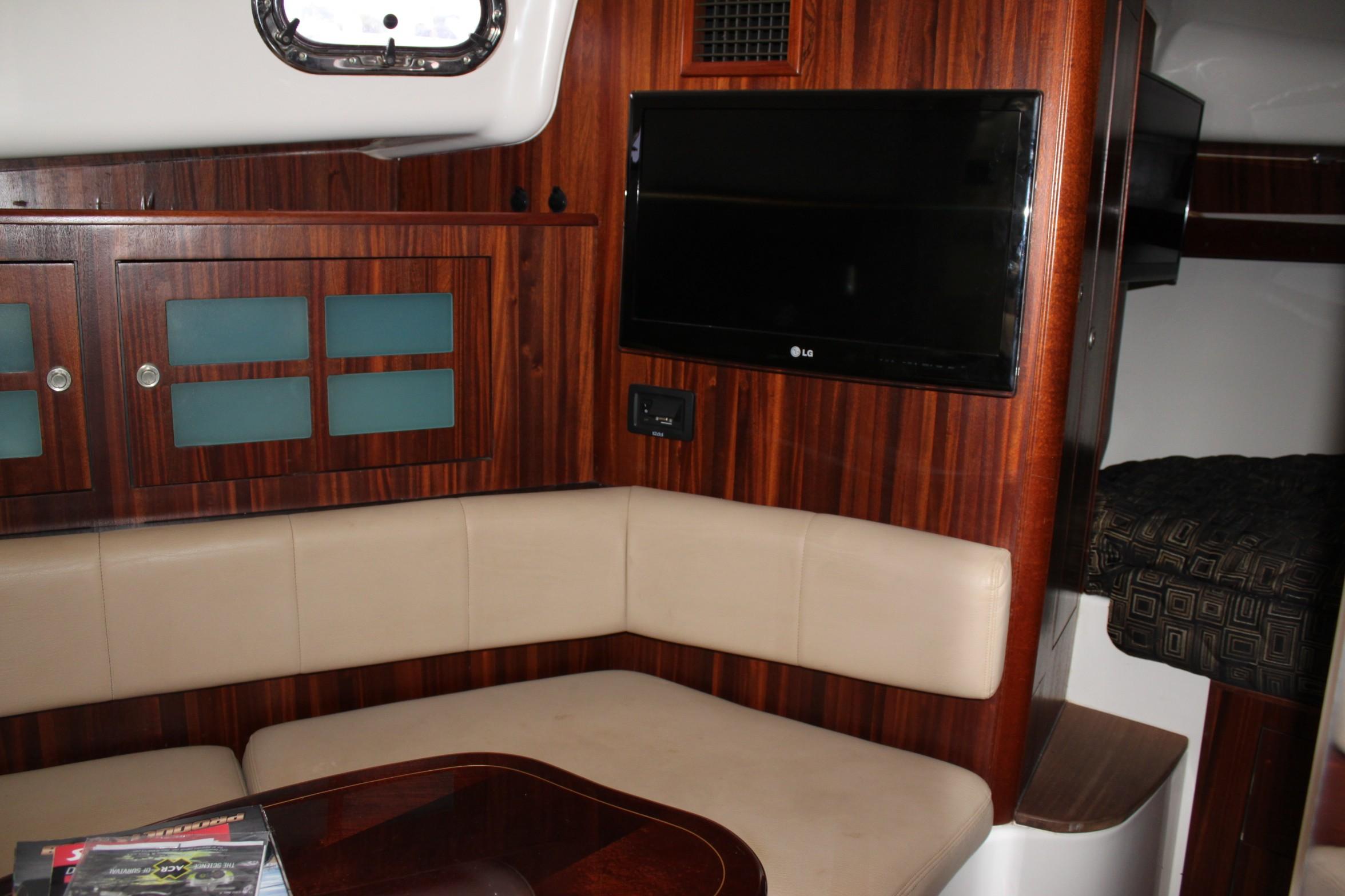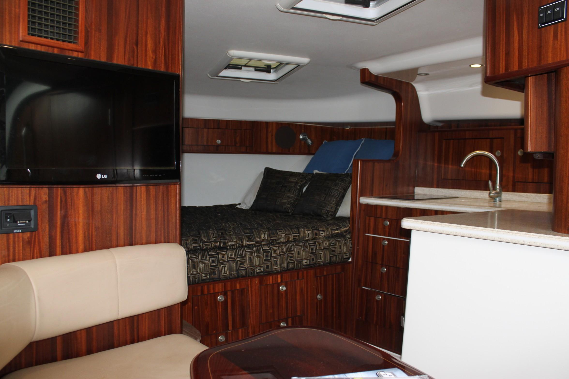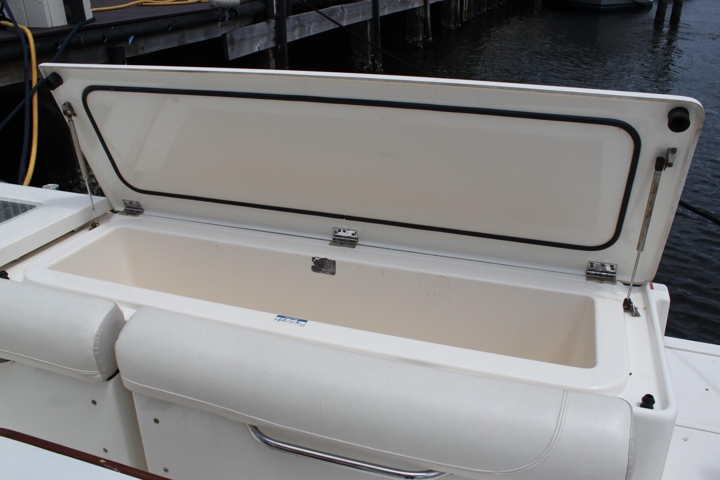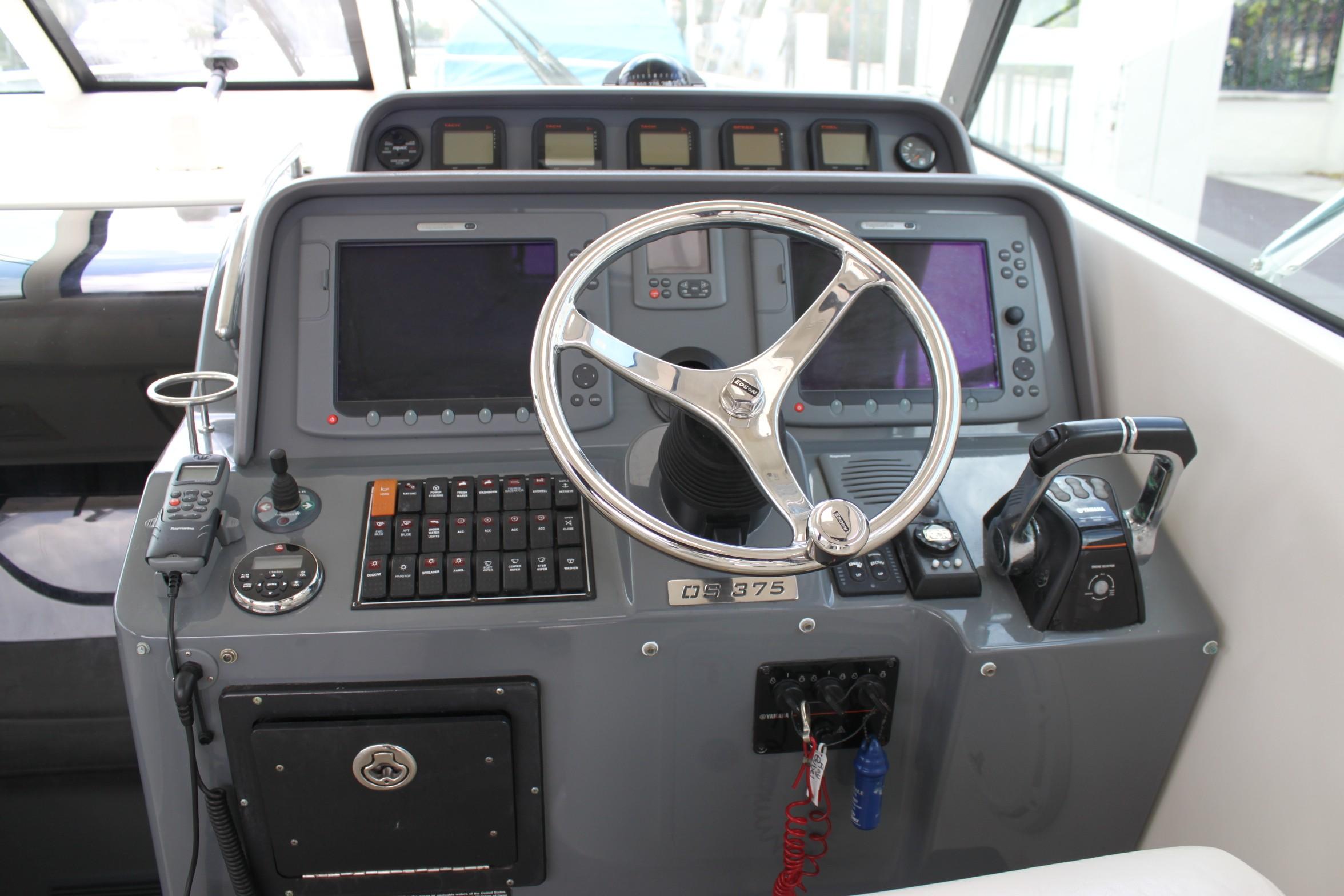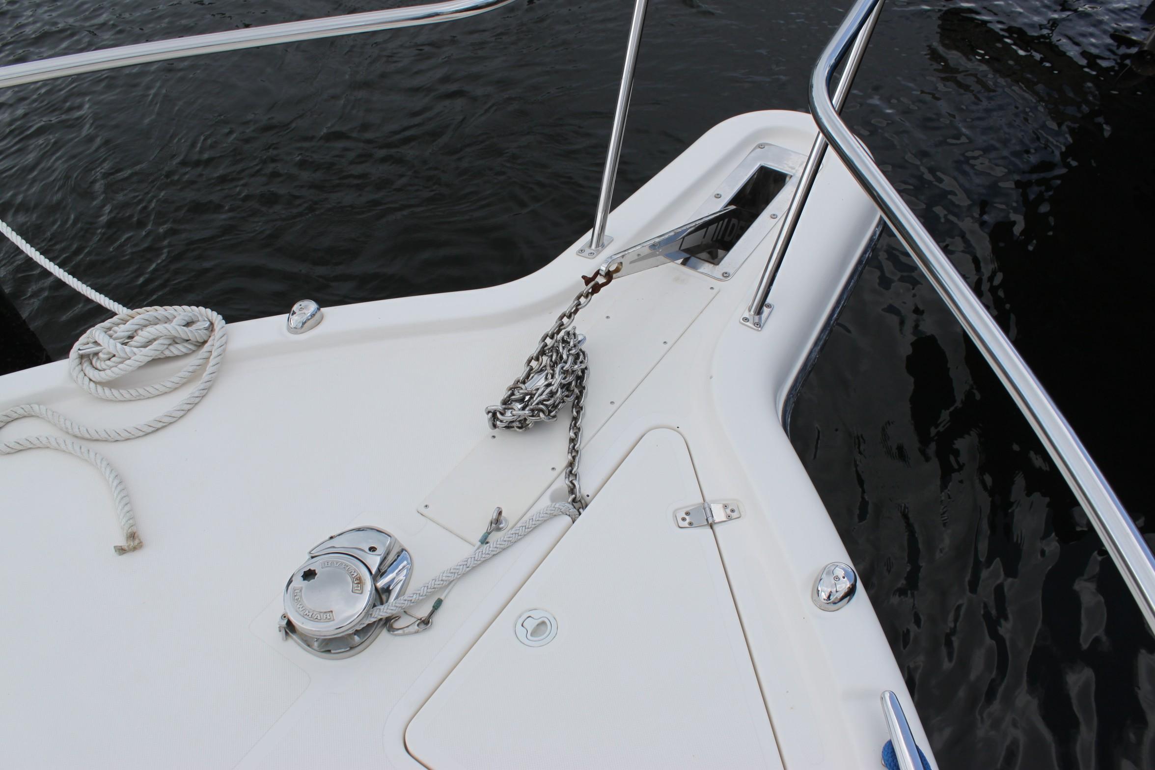 This boat is for the serious fishermen with an eye for quality. For more than 50 years and three generations the owners of Pursuit have set an unsurpassed standard of quality in marine design and manufacturing. Word on the docks is that you can't go wrong with a Pursuit. If you want to fish - if you have to fish, you'll chose the Pursuit 375. The 375 combines performance, seaworthiness along with the fish ability of the world’s top inboard battle wagons with the luxuriousness of the most comfortable cruisers. She features a 13-foot beam which results in an nice large cockpit and great space for accommodations in lower deck area with its Corian-countered kitchen — complete with a two-burner glass stove top, microwave, stainless steel refrigerator/freezer and stainless steel polished sink with hot and cold pressurized water.