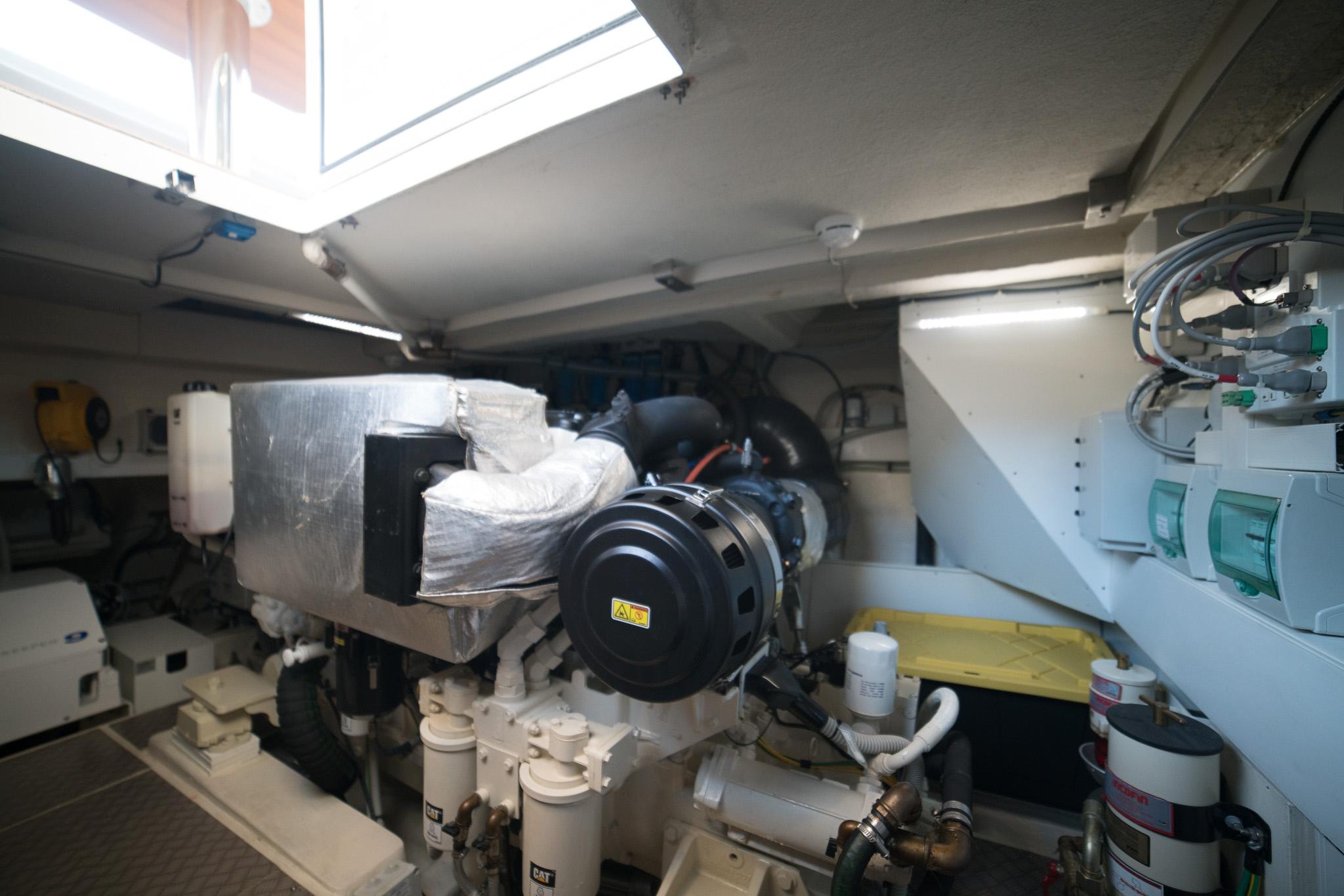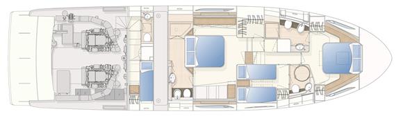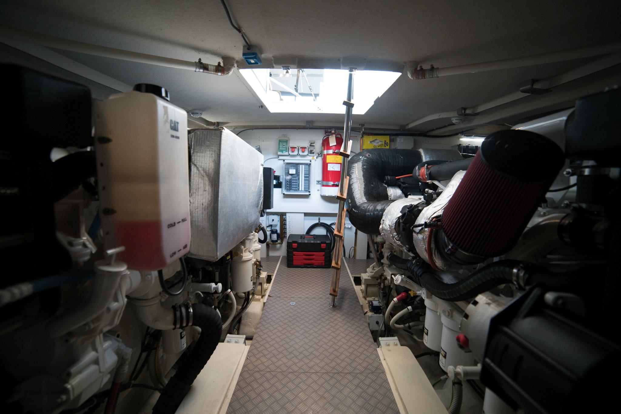 With Ferretti Yachts 650, the brand goes back to installing engines produced by Caterpillar. The boat is equipped with a pair of CAT C18: in the standard engine configuration - a pair of 1015 mhp C18 engines – the FY650 can indeed reach a cruising speed of 26 knots and a maximum speed of 30 knots. The optional engines (1150 mhp), in turn, can push the yacht to a cruising speed of 30 knots and a top speed of 33 knots. The range is 275 and 245 nautical miles, respectively, at maximum speed, and 310 and 300 nautical miles, respectively, at cruising speed.