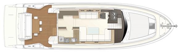 The Ferretti Yacht 650 immediately strikes the eye for its extensively renovated profile. Its outer silhouette is characterized by an aerodynamic flybridge and new fiberglass decorative elements that “cut” through the profile of the glazing in the superstructure. An unprecedented decoration connects the windows of the three cabins below deck. The slender lines are further enhanced by the yacht’s aft area, specifically designed to ensure easy and safe storage and launch of the tender while increasing the guests' on-board comfort. A tender lift has been developed, capable of lifting an over-3-meter-long tender that can be lowered into the water by a meter with respect to its original position, thereby allowing the vessel to be davit-free: a valuable attribute which provides an incredible amount of additional living space. As is the case on all models in the range, on this 65-footer the shipyard is proposing alternative layouts both on the sundeck – which also comes in the hard-top version – and inside the boat.