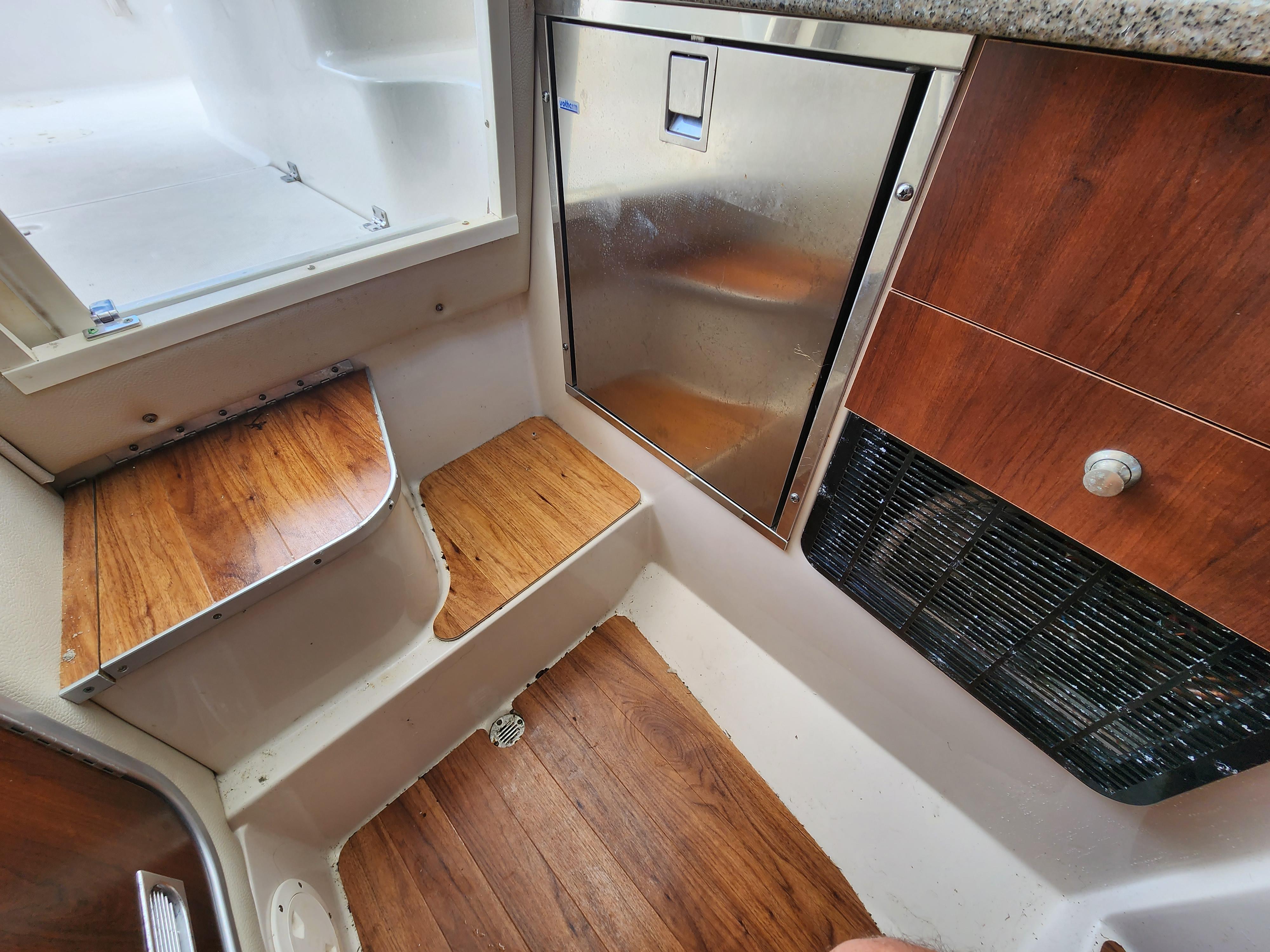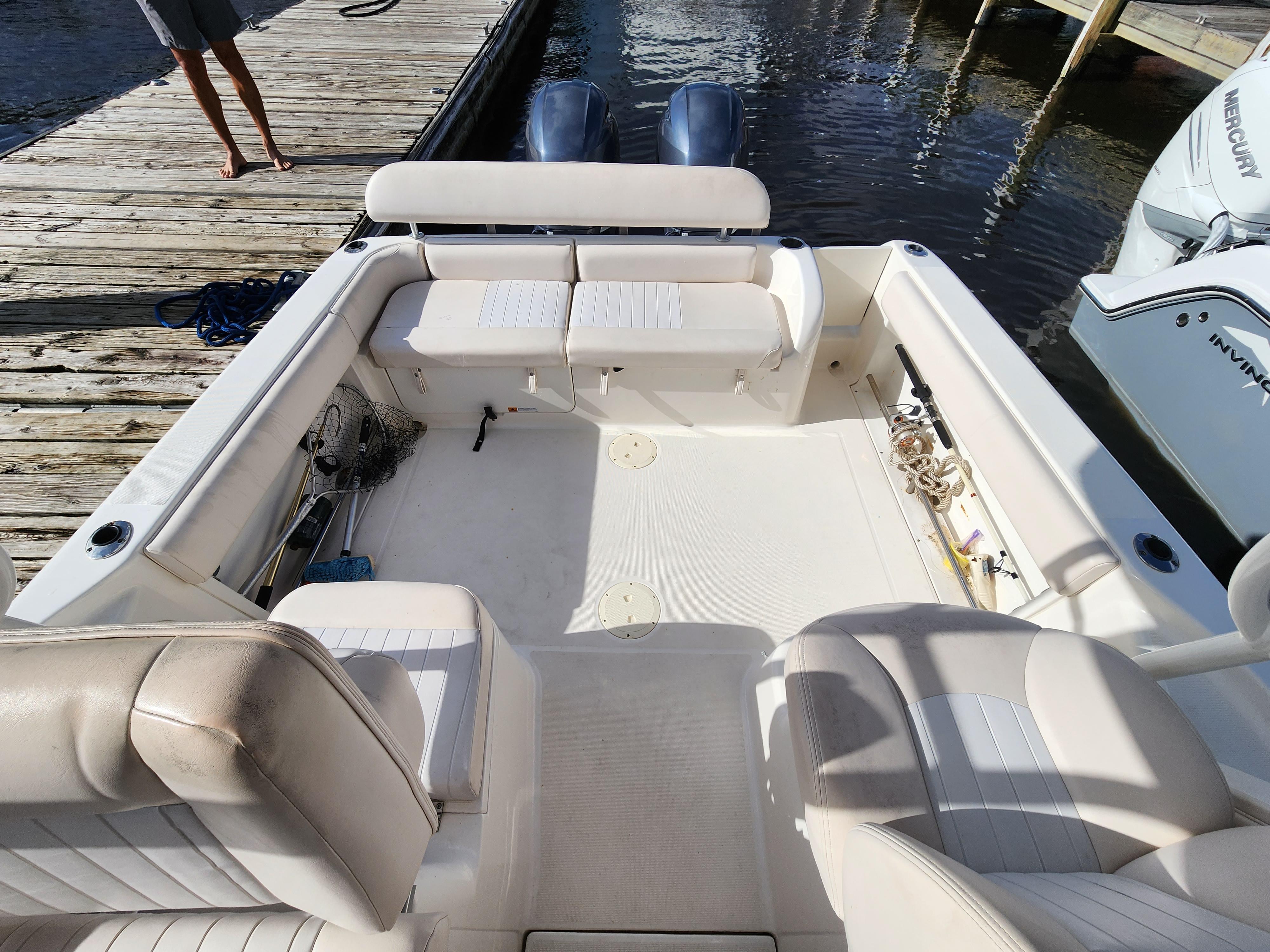 The appeal of a good express boat like the Robalo 265 can be summed up in a single word: versatility. Half fishing boat and half weekend cruiser, express boats are a great choice for anglers with active families. Belying her small size, the 265 Walkaround is built to handle big water with confidence. Like all late model Robalo boats, the 265 rides on a Kevlar-reinforced hull, a costly manufacturing process that makes for a near-bulletproof hull.