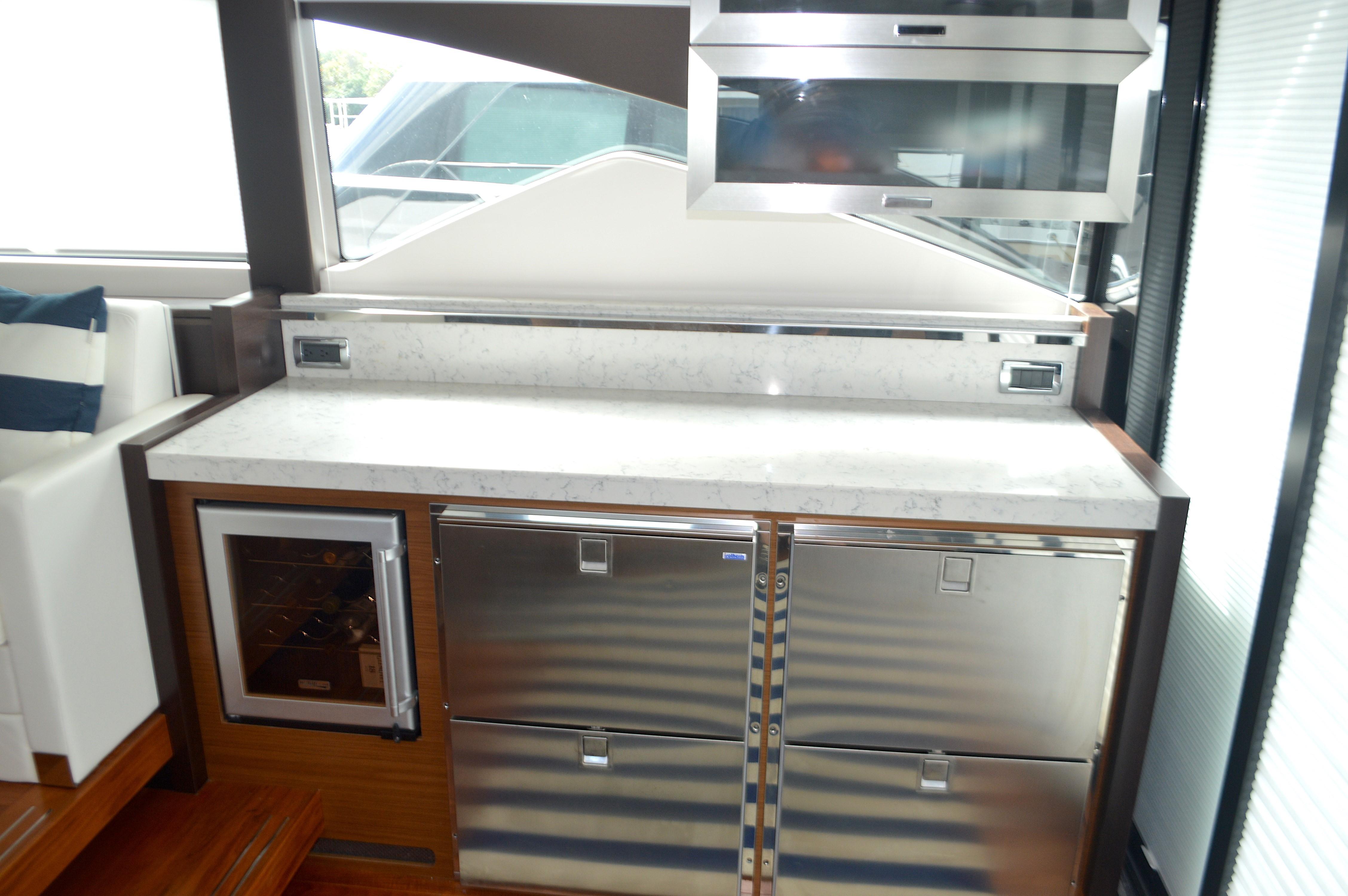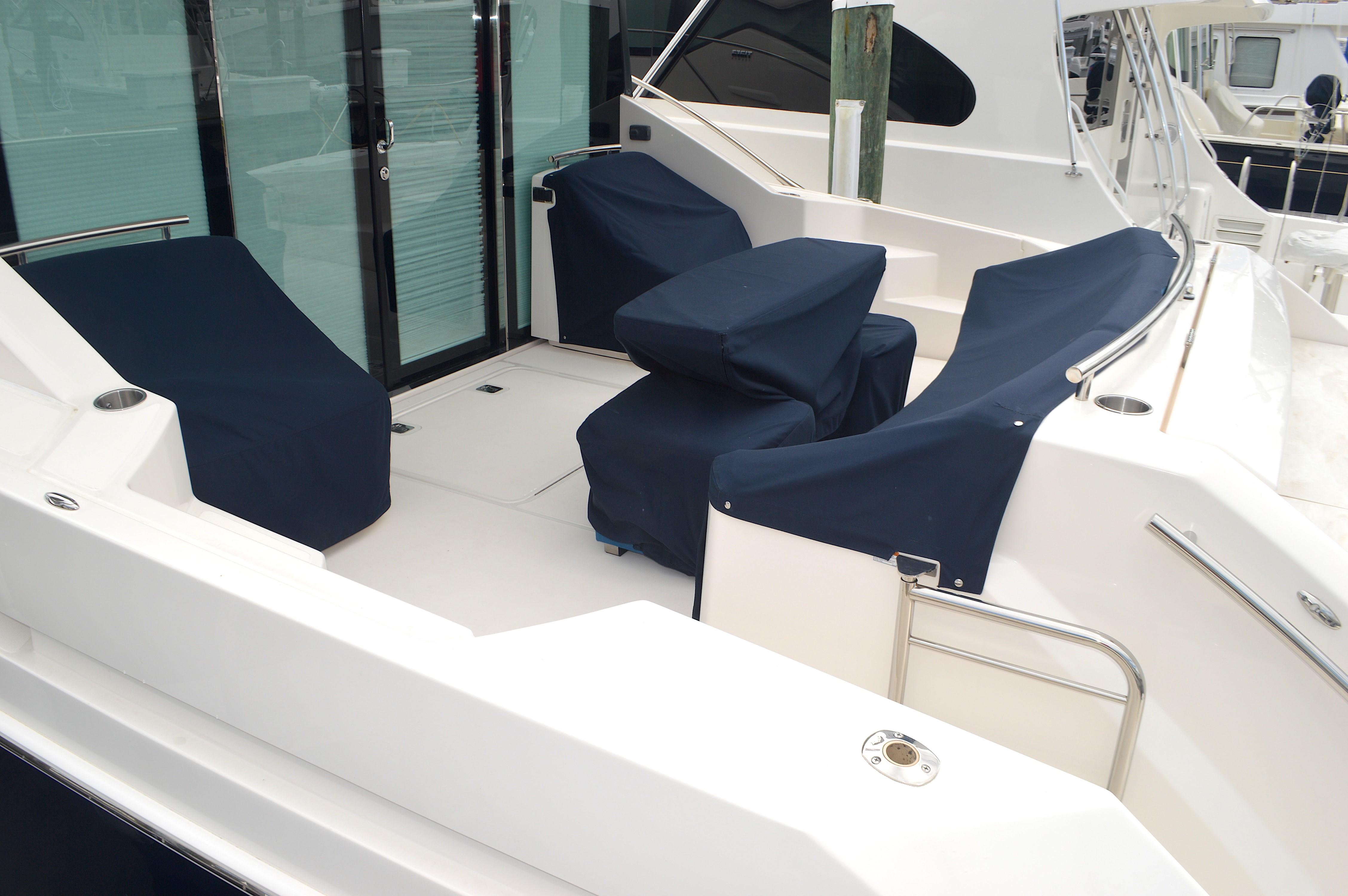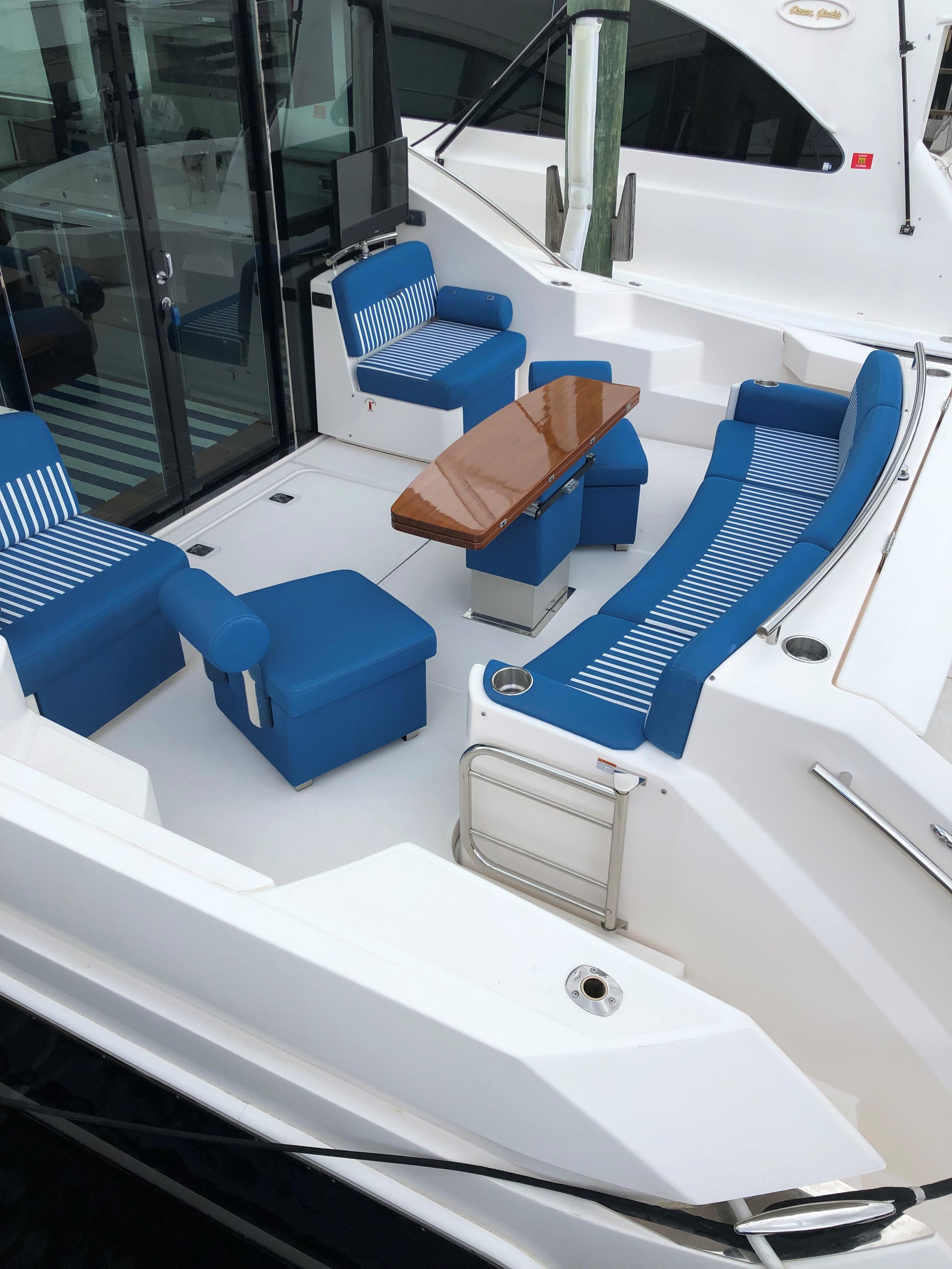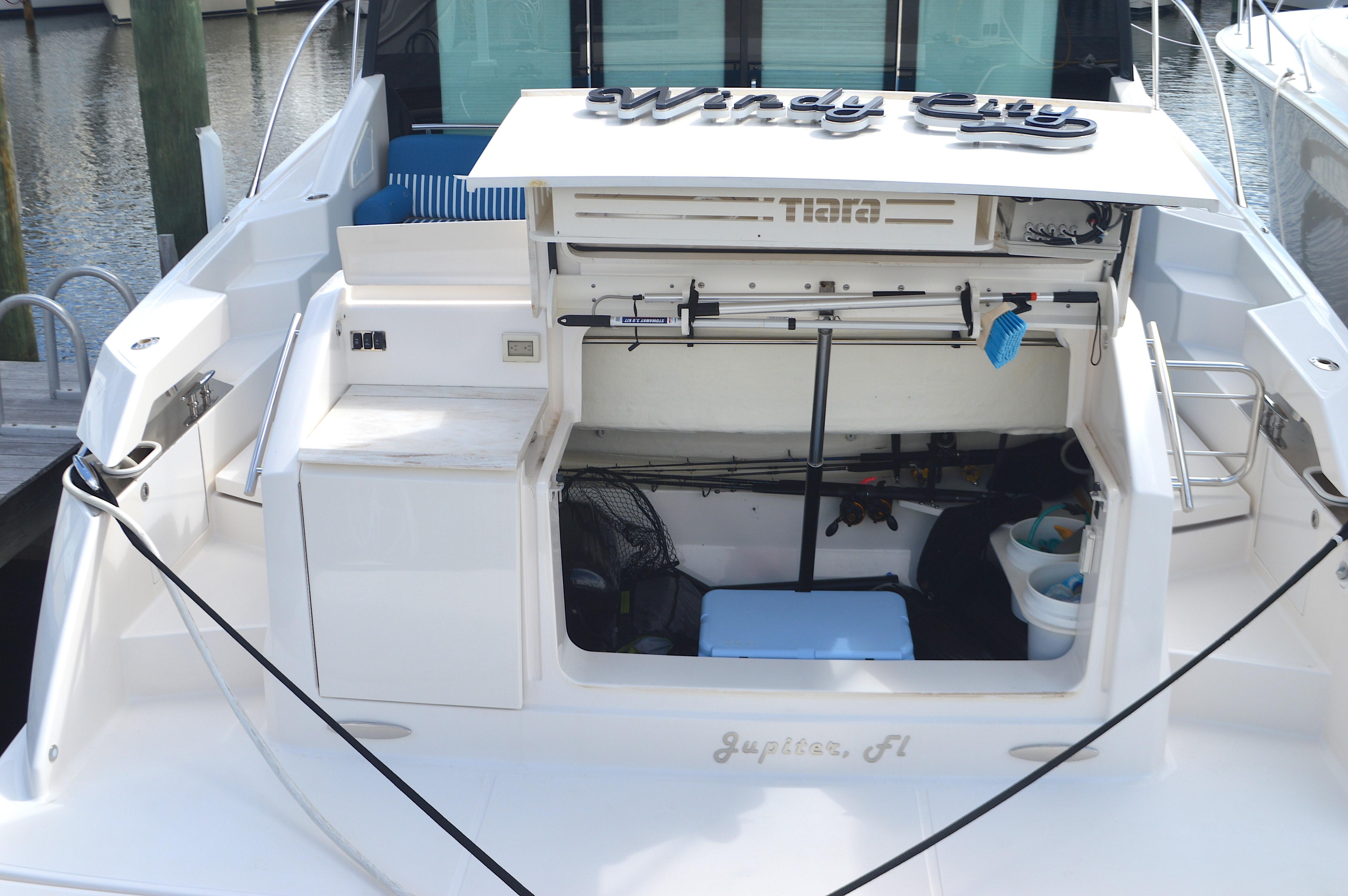 WINDY CITY features a SeaKeep 9 Gyro stabilizer, Garmin Electronics, Hydraulic 70" Swim Platform, hydraulic powered sunroof, joystick docking controls, electric aft cockpit sunshade, custom navy blue hull color and engine room / salon camera systems. Low hour Volvo Penta IPS 950, 725 hp diesel engines allow a fast and efficient 27 knots cruising speed. The Volvo joystick control provides easy docking and maneuverability not found in other yachts. WINDY CITY is an excellent example of Tiara quality and technology!