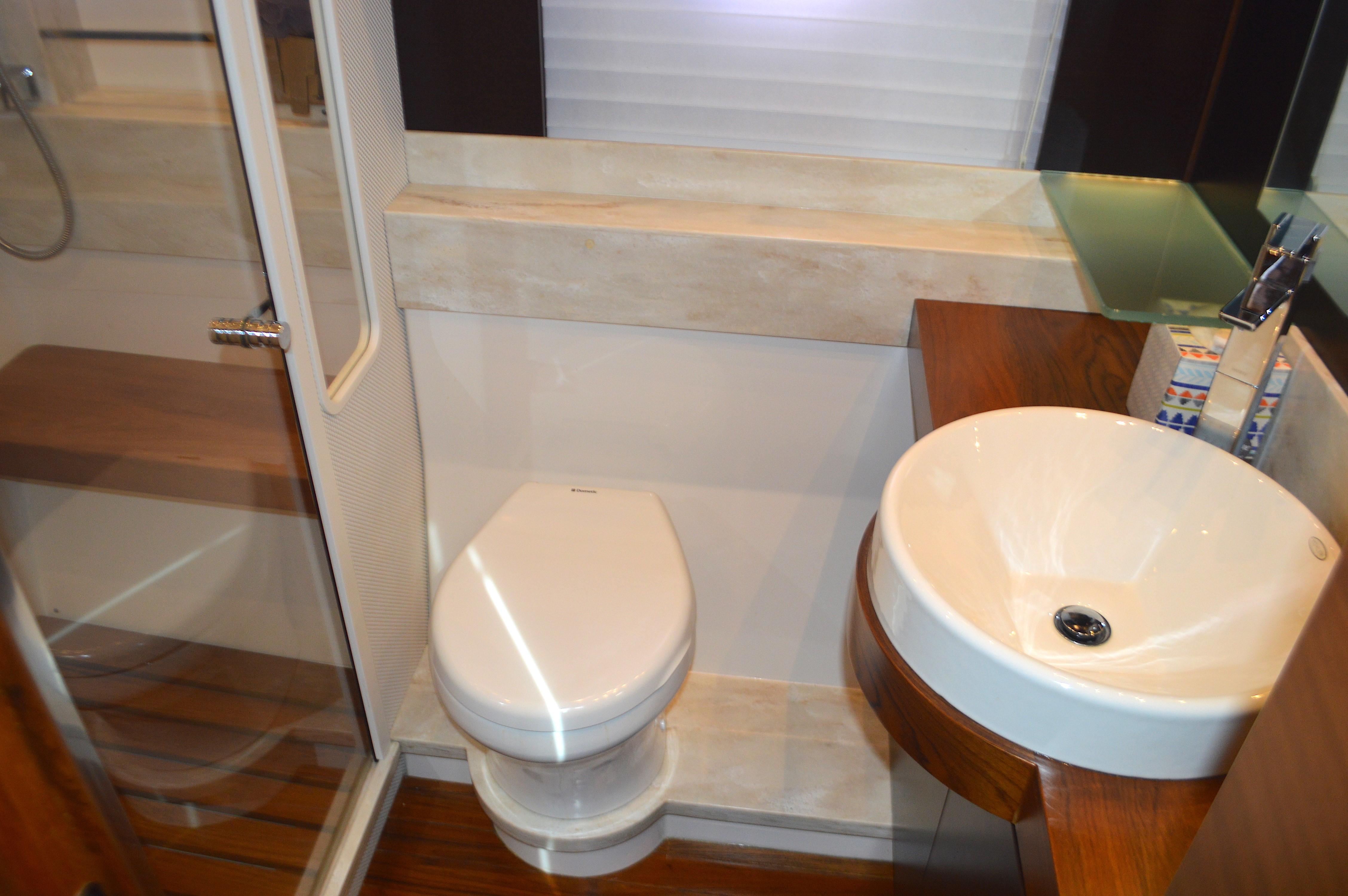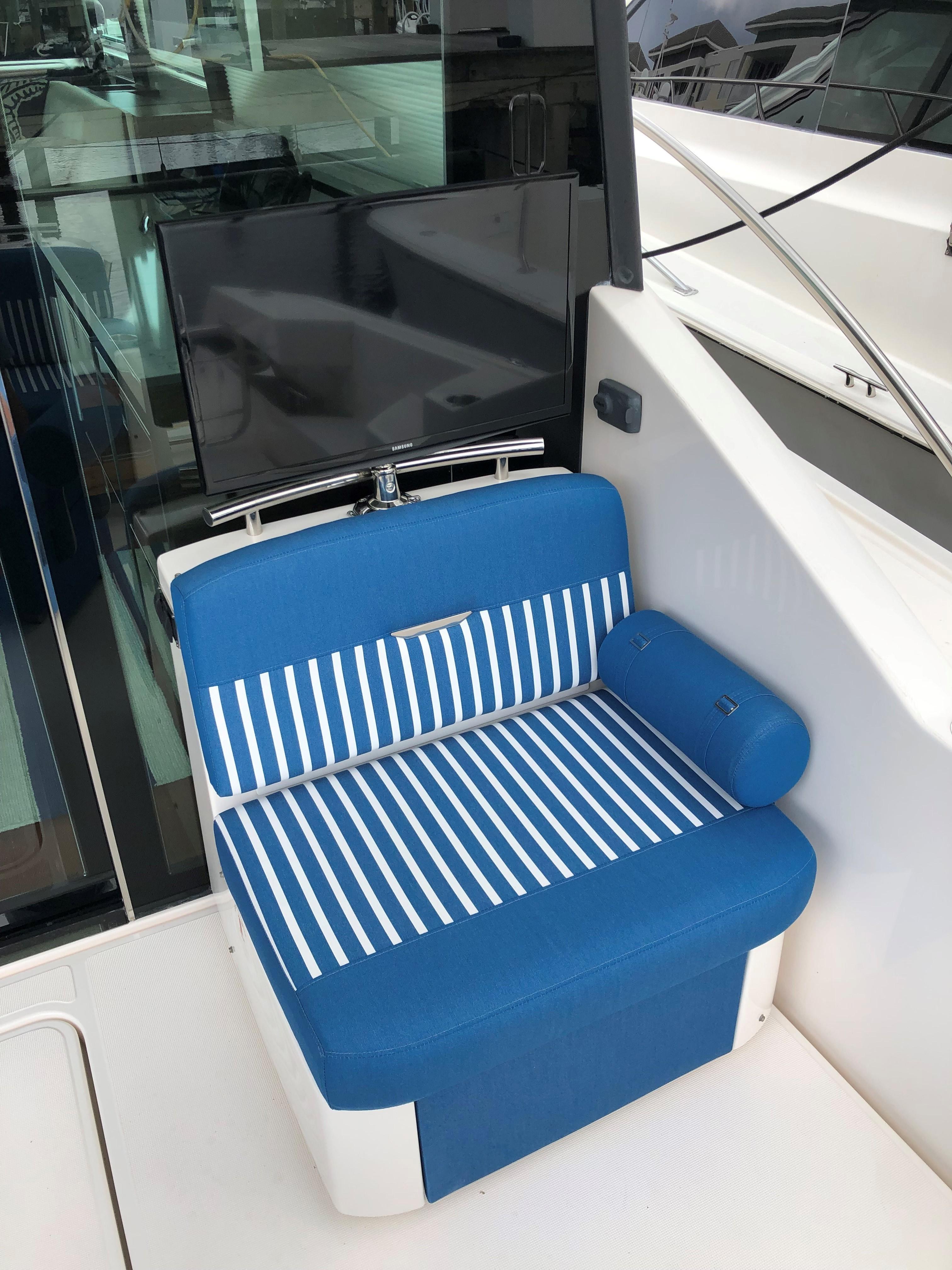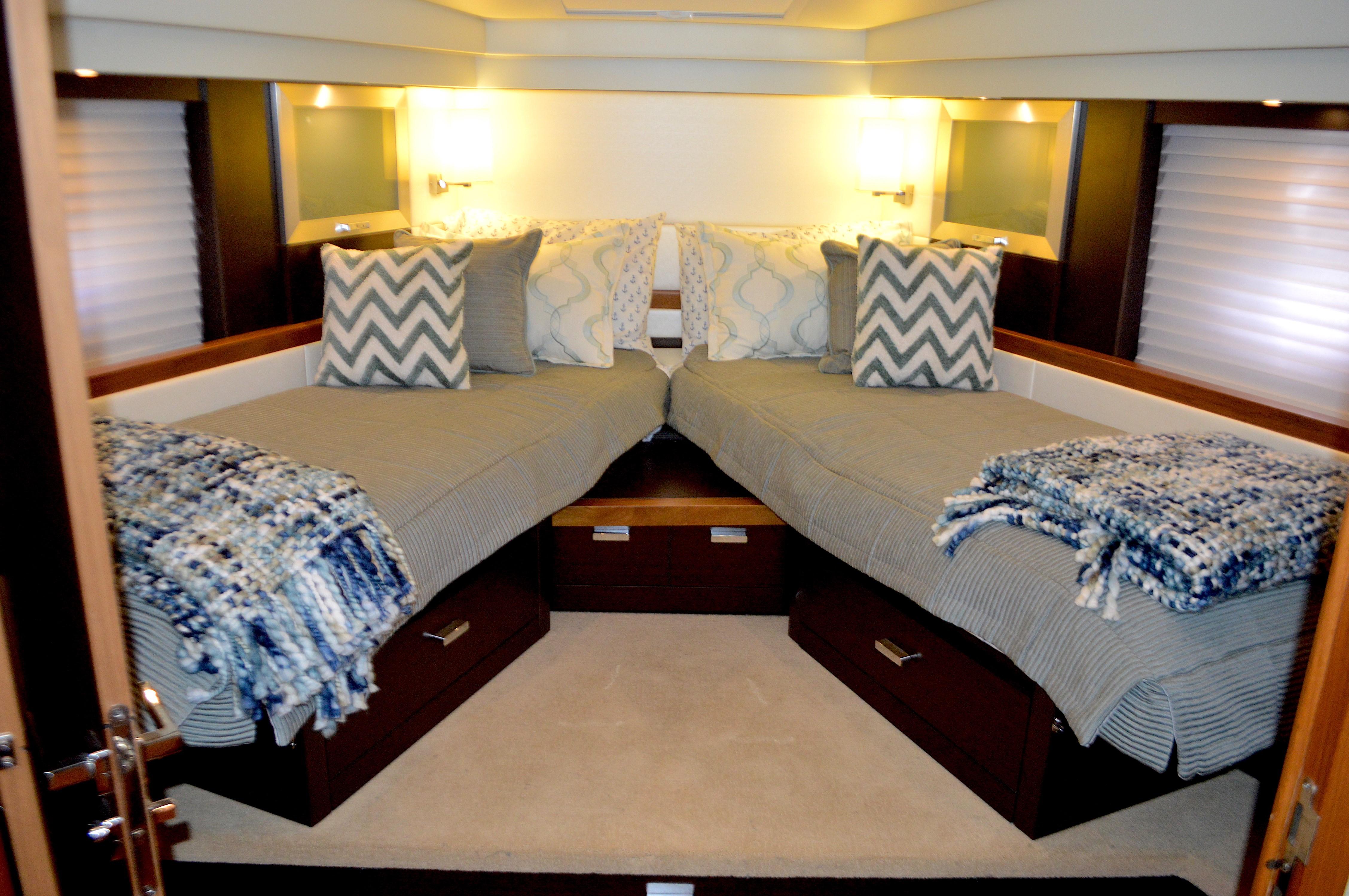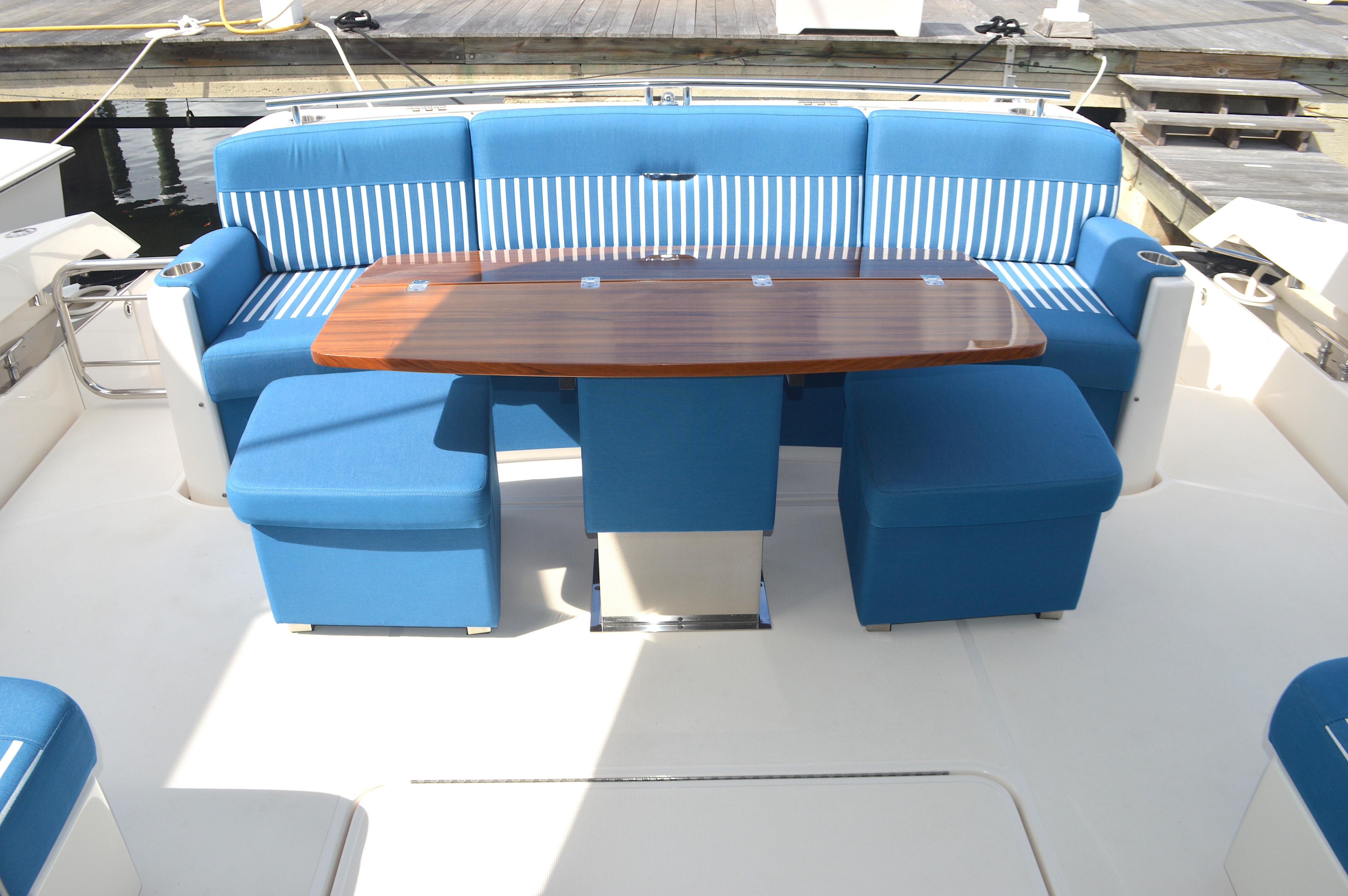 WINDY CITY features a SeaKeep 9 Gyro stabilizer, Garmin Electronics, Hydraulic 70" Swim Platform, hydraulic powered sunroof, joystick docking controls, electric aft cockpit sunshade, custom navy blue hull color and engine room / salon camera systems. Low hour Volvo Penta IPS 950, 725 hp diesel engines allow a fast and efficient 27 knots cruising speed. The Volvo joystick control provides easy docking and maneuverability not found in other yachts. WINDY CITY is an excellent example of Tiara quality and technology!