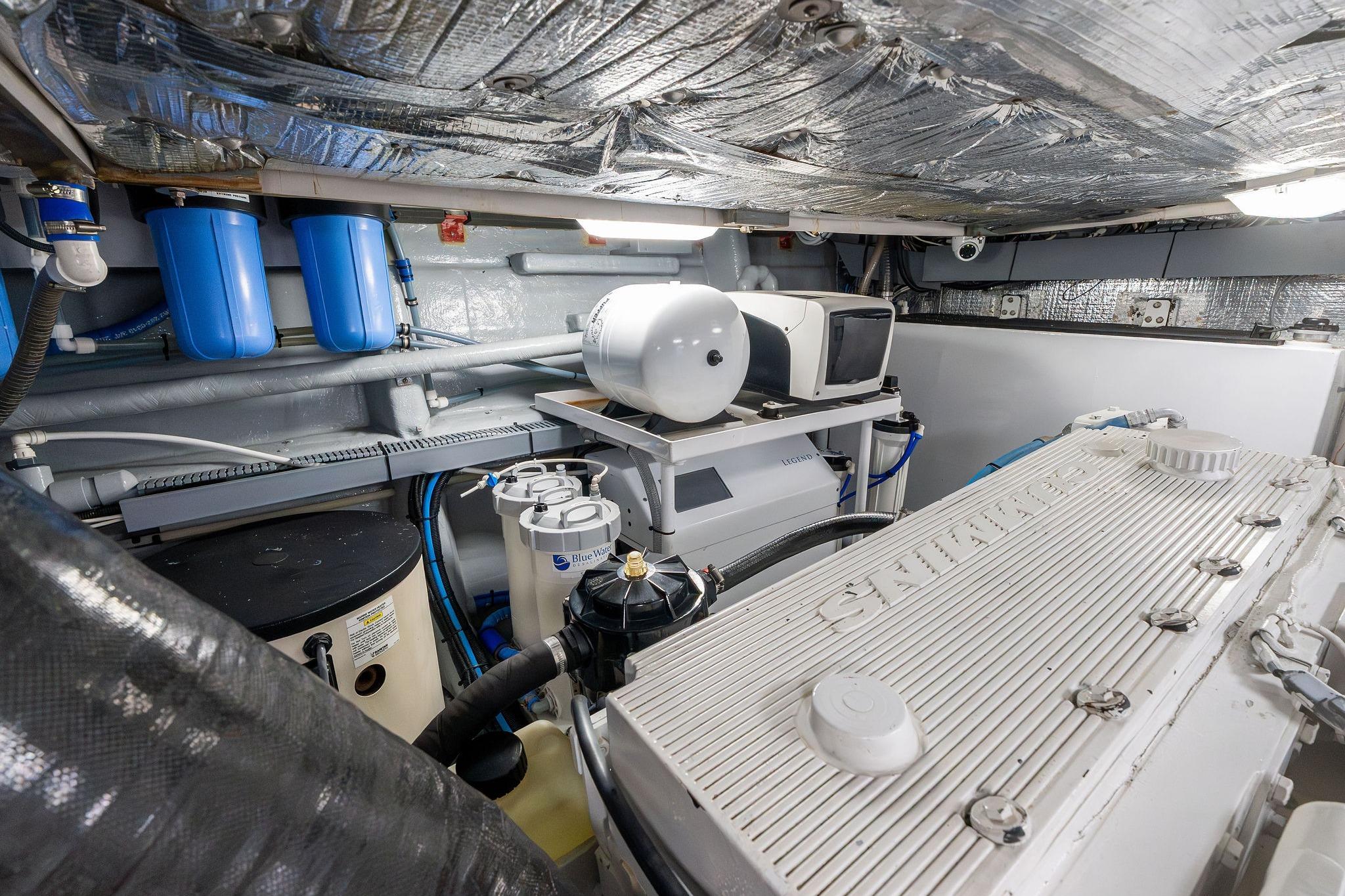 Powered by twin Cummins QSM-11 diesel engines that offer a thrilling burst of speed and can cut through the ocean's swell with grace and stability.