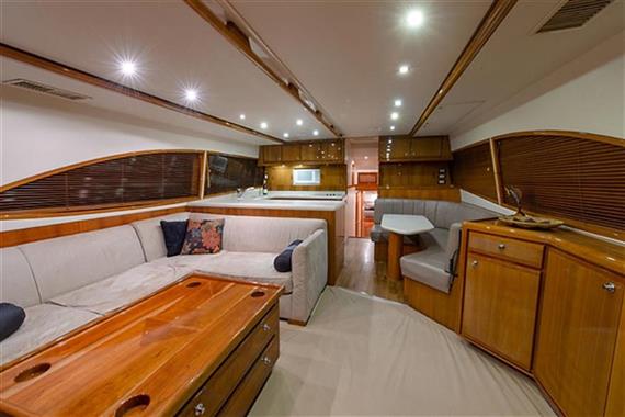 Description per areaLayoutVisit the following page for a 3-D tour of the interior: https://my.matterport.com/webgl_player/#model=A7cpVUHsVoy Visit the following page for a 3-D tour of the flybridge: https://my.matterport.com/show/?m=CrS3BkDzNRV. REMARKS: The 51' is Bertram's most successful model. She runs completely dry and efficiently ( 27 knots-65 gallons per hour ) and makes for a perfect size 3 stateroom , 2 head convertible. There are NO BUNKBEDS!! "The End of the Line" is truly a turn-key operation ready to fish or cruise reflecting the care of a fastidious owner. With her MAN'S, A/C system, generator and electronics serviced and up-to-date, " The End of the Line " is ready to take her new owner to The Bahamas and beyond. The seller is market aware and priced this vessel accordingly. Vessel DescriptionSalon • Remodeled entertainment center • Sony 32' flat screen TV • L-shaped sofa • Custom Cherry high gloss tables w/ great storage • Padded settee port side w/ storage below • I-pod station • Blu-ray player • Sony Play station • Original Bertram table • LED lights (new) • Raritan icemaker • Central vacuum system • A/C electronic control • 120V A/C receptacles • Electrical distribution panel • Overhead grab rail • Overhead concealed rod locker • Varnished wood paneling • Vinyl headliner • Icemaker • Remote control start stop for generator at electrical panel • Reverse polarity indicator • Main control system for chill water cold system located in main electrical panel Galley • Corian sink • Kenyon glass top three burner stove • Two molded FRP sinks • Single lever hot & cold faucet • Microwave • Undercounter Sub-Zero Refrigerator & Freezer • Storage Cabinets • 120V A/C lighting • Overhead rod storage compartment • Vinyl headliner Padded dinette settee with Corian top New Microwave New stove top Companionway • Access doors to staterooms • Starboard guest head • Laundry locker with shelf • 24DC lighting • Washer & dryer in locker • Vinyl headliner & wall covering Master Stateroom • Queen size berth with drawer storage beneath • New flat screen TV • New Blu-Ray player • Cedar lined hanging locker w/ drawer storage • A/C electronic control • Vinyl headliner • Vinyl wall covering • Mirrored aft bulkhead • 120V AC & 24V DC • 120V AC receptacles Master Stateroom Head • Private entrance • Corian countertop and sink • Single lever hot and cold faucet • Stall shower with door and floor grate • Vanity locker with mirror panels • Cherry floor • Lighting Guest Stateroom Forward • Centerline queen size berth with storage beneath • TV/VCR • Clarion Stereo • Cedar lined hanging lockers • Hullside storage lockers • Vinyl headliner and wall covering • Bomar skylight deck hatch w/ recessed pull out screen • 120V AC & 24V DC • 120V AC receptacles • A/C electronic control Guest Stateroom Starboard • Twin berths w/ drawer storage beneath • TV/VCR • Stereo • Cedar lined hanging lockers • Hullside storage shelves • Vinyl headliner & wall covering • 120V AC & 24V DC • 120V AC receptacles • A/C electronic control Guest Day Head • Corian countertops and sink • Molded FRP sink • Molded FRP shower stall • Raritan Atlantic electric toilet system • Single lever hot and cold faucet • Stall shower with door and floor grate • Vanity locker with mirror panels • Cherry floor • Head and shower lighting • Blower Cockpit • Custom Murray fighting chair fitted with custom teak four rod rack holder with cutting board outside • Four gunwales rod holders • New Macerator pump, fish box • Upgraded cockpit freezer (extra insulation) • Sink with fresh & salt water spigots • Tackle drawers • Deep drop outlets, port and starboard • Deck hatches with recessed cam locks to secure closed when underway • Molded FRP bait tackle prep center with freezer • Access to engine room through molded hatch step way • Access to salon • Live well • Four flush mounted rod holders on pilasters • Courtesy deck lighting • Marinco 50amp - 125V shore power cord receptacle • Marinco dockside telephone/TV/cable hookup • Cablemaster shore power cord reel • Salt & Fresh water washdown • Padded knee bolsters • Transom door w/ heavy duty spring loaded latch to secure closed • Port & Starboard outriggers • Transom top deck storage locker fish box • Clarion stereo speakers (2) • Dockside water Flybridge • New Captains chairs (re-upholstered) and new chair covers • U-Shaped lounge to seat six • Console cover • Full zippered Eisenglass enclosure • Seven rod rocket launchers • Hard top teaser reels • Helm station • Maya Epoch Super 9 electric teaser reels • Remote control for windlass • U-shaped padded settee forward of helm • Access hatch to flybridge wing locker • RPM/Oil pressure/Engine temperature/Voltage/Transmission oil pressure & temperature instruments • Hour meters • VHS Marine radio telephone • LCD depth sounder • Northstar color GPS plotter • Robertson AP22 auto pilot • Furuno Radar • Furuno Color video sounder • Mico Commander control • Horn • Fuel tank gauge • Manual control switches for bilge pump • Clarion AM/FM/Stereo • Two speakers aft • 24V DC electronics accessory panel w/ magnetic circuit breakers in console • 12V DC electronics accessory panel w/ magnetic circuit breakers in console • Alarm monitor panel w/ bilge flood signal for three compartments • Battery Parallel switch • Remote ground fault circuit interrupter receptacles in console • Main engine control panel • Overhead lights • Molded -in cockpit spreader lights • Molded FRP hard top w/ aft deck flood lighting • ACR remote control search light • GPS antenna receiver • ATW loud hailer horn Deck & Hull • Underwater transom lights • Pulpit • Simpson- Lawrence electric windlass • Hauled & bottom pai