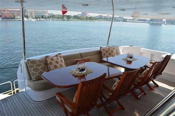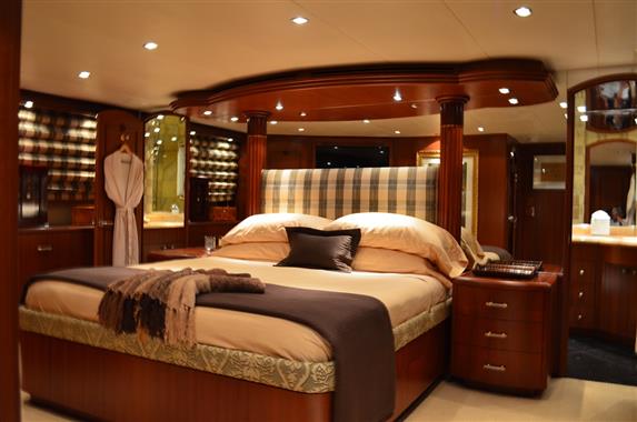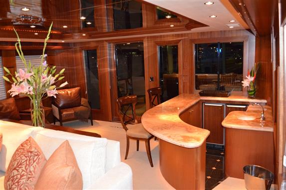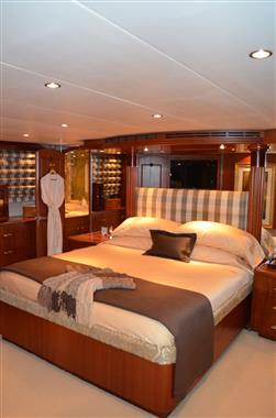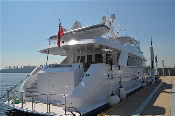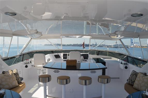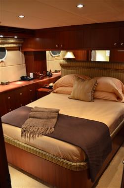 A superb and finely customized 100' Hatteras featuring four Owners Staterooms and six heads, SUPERNOVA boasts an elegant “Full Beam” Master Stateroom situated mid-ships on the lower deck and features a King sized bed and “his and hers” baths.
