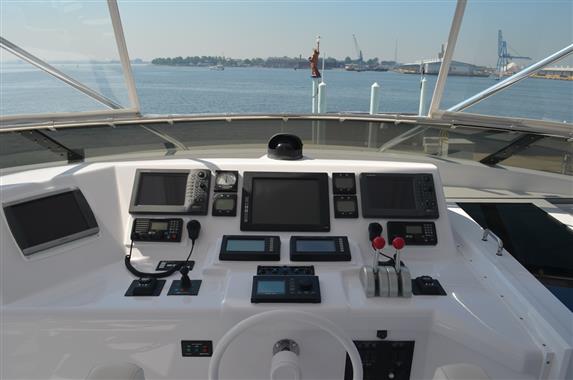 Description per areaElectronicElectrical Equipment Electrical Circuit: 240V MechanicalsHELM AREA L-shaped settee with granite table directly behind steering station Maple wood floor with Chery and Walnut compass rose inlay Access to the flybridge from pilothouse Garmin 5212 GPS Plotter with repeater on flybridge Nobletec Plotter with radar interface and Big Bay 17" SXGA Monitor Furuno X-Band radar with Big Bay 17" Monitor Furuno GP-37 WAAS/DGPS Furuno PG 1000 Compass Furuno S Band Radar with Big Bay 17" Monitor Big Bay 24 volt regulator Furuno 50/200 sounder with thru-hull transducer Furuno Navtex NX 500 Simrad Auto Pilot Simrad Bow Thruster interface American Hydraulic Bow thruster Simrad Wind Speed indicator Simrad IS 15 Compass heading display Gyro Compass Dell Computer EMX Thermal Image Video camera with remote Extron Video amplifier Focus T View converter Statpower 1800 24 volt Inverter with remote Icom VHF Naiad Stabilizers and controls Electronics cooling system with sub pilot house cooling duct Additional ICOM VHF at helm and flybridge DECK Full walk-arounds with overhead lighting (2) Murray Brothers aft deck teak tables with four (4) teak lounge chairs Fixed centerline black marble wet bar with 4 fixed stools (2) 24 volt Maxwell capstans for aft deck line handling Maxwell 6000 anchor windless (2) 8 person Switlik hydrostatic life rafts (2) refrigerators Twin port and starboard seating areas on flybridge with black marble tables Twin Helm Seats Flybridge wing control stations port and starboard Large 6x5 ft. raised storage locker (2) new Stidd captain chairs 15' Novurania with 80 hp Yamaha 4 Stroke Marquipt 2500 lb 12' boom hydraulic davit Custom stainless steel staircase with access to flybridge FLYBRIDGE ELECTRONICS Icom M 80 SSB radio Necode 322ARX 12 encoder Digital 567CW 8' Dual antenna with Digital DA 4000 CDMA/TDMA cell amplifier Big Bay Saga 17' Monitor Furuno Satellite compass Garmin 5212 GPS Plotter Netgear Navnet hub S-band plotter for thermal imaging Video camera access Simrad IS 15 compass heading, wind, XDCR instrument display American Bow thruster controls Naiad stabilizer controls ENGINE ROOM Twin MTU M91 Electronic engines 1800 hp each with 2458 hrs. on the stbd engine and 2456 hrs. on the port engine. Dedicated engine room propulsion gauge package Two 1500 gpd water makers with new membranes Naiad Stabilizers Twin Generators Air Compressor Full mechanics bench and tool chest Easy access seacocks Automatic fresh water washdown which may be used as a backup for ships water pump ELECTRICAL Multiple shore inlets and retrieval systems 240/120 volt AC electrical through main distribution and breaker panels All panels are Hatteras quality featuring e-Frame magnetic breaker systems 24/12 volt ship's battery systems Dual 45 KW Onan gensets Port gen 4109 hrs. , Starboard gen set 3803 hrs. Just serviced Multi-function interior lighting controls Underwater light on transom Hatteras multiple electrical monitoring systems and alarm systems Main saloonMAIN SALON AND DINING AREA Custom satin Cherry wood throughout New neutral carpeting Sunken on-deck wet bar with granite tops, sink and ice maker, moveable chairs Glass and bottle storage Custom floor to ceiling entertainment area, Sony 42” Flat screen TV Yamaha “top of the line” surround sound system, DVD/CD, sub-woofer speakers Neutral colored sofa and ottomans Custom window treatments Overhead flush mounted speaker system Cherry columns and moldings throughout Cherry wood buffet and display cabinet in formal dining area Sculpted and coffered ceiling mirrors Raised panel cabinets, Cherry beveled pillars on forward bulkhead Decorative wall lighting Custom dining table seats six guests standard, accommodates up to eight Master cabin and bathroomFull Beam Master, King sized bed with cedar storage beneath Custom bead covers, headboard, window shades His and Hers heads, black granite floors, marble counter tops Dual access shower with marble seating (2) cedar-lined walk-in closets Cherry 3-drawer side tables 37” Flat screen TV, Yamaha surround sound entertainment system, DVD/CD, sub-woofer Office area with black granite desktop, six drawers, built-in bookcase VIP cabin and bathroomQueen berth with custom headboard, en suite marble head and shower, separate built-in vanity Cedar-lined closet Overhead escape hatch 20” Flat screen TV, CD/DVD, (4) speaker entertainment system Custom drawer storage throughout WhisperWall headliner and walls Recessed overhead lighting Guest cabin and bathroom 1GUEST STATEROOMS PORT/STARBOARD One stateroom with a true Queen berth, other stateroom can be converted from Queen configuration to two Single berths Full en suite heads and showers Marble counter tops in heads, plus mirrored ceilings Flat screen TVs, stereo, DVD entertainment systems Cherry cabinetry with cedar-lined hanging lockers GalleyDual recessed stainless steel sinks Granite counter tops Kitchen Aid stainless steel microwave /convection oven Kitchen Aid flat 4 burner stove Kitchen Aid stainless steel under counter digital oven Kitchen Aid dishwasher, garbage disposal, trash compactor (6) Sub Zero refrigerator/freezer drawers and stand up Sub Zero refrigerator/freezer Cherry cabinets, overhead and under counter lighting Polished granite center island Table and four chairs for breakfast Maple floors with Cherry accents Flat screen TV Crew cabinsCaptain’s cabin, double berth with hanging locker, full entertainment system, en suite head Crew cabin, Twin over/under berths, hanging locker, adjoining head Large dinette with seating table Hard surface counter top with sink & storage Flat screen TV New stereo system Full-size washer dryer Vessel Walkthrough2011/2012 UPGRADES: New SAT phone, Sailor SAT Bow windlass rebuilt Both stern capstans rebuilt New Eskimo ice maker on aft deck Double SAT mast with dual SAT antennas, M-7 Internet 1,000 hour service / Full 2,000 hour service 2013 New davit crane hydraulic pump All (3) A/C compressors r