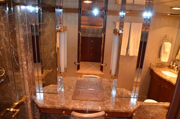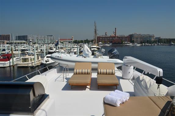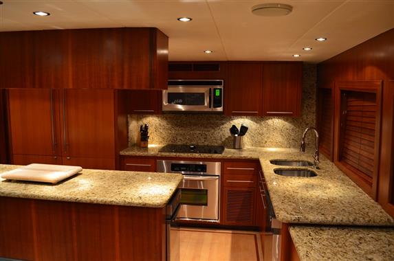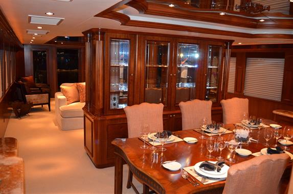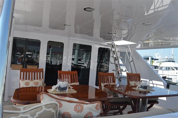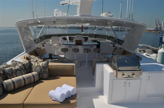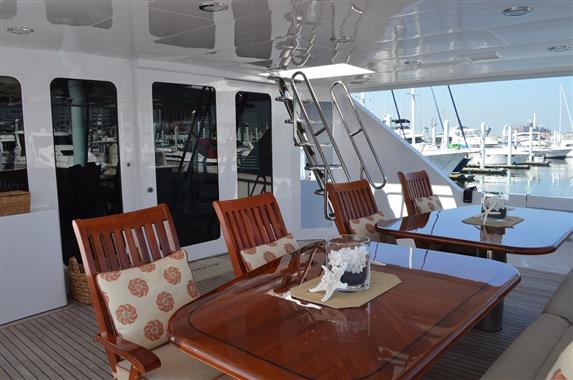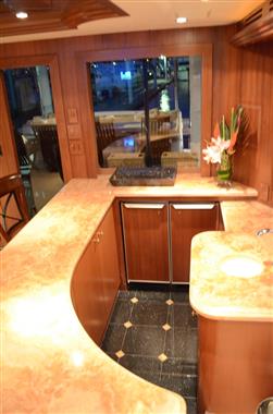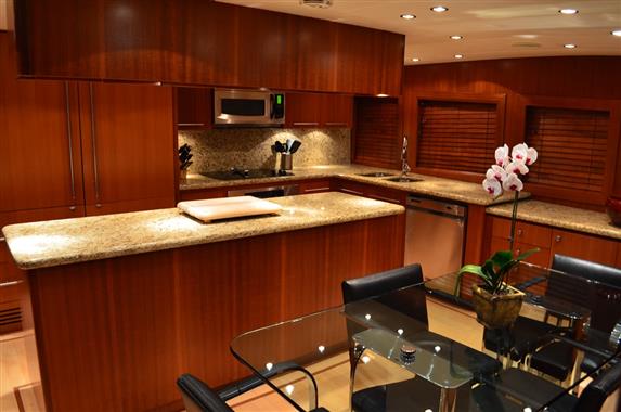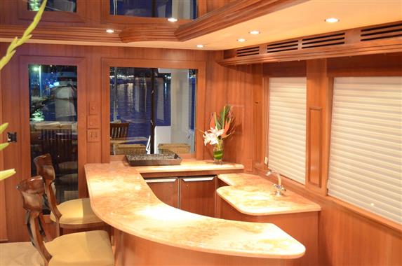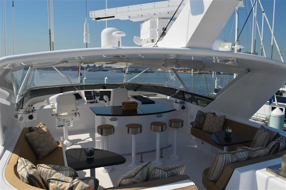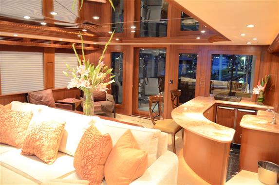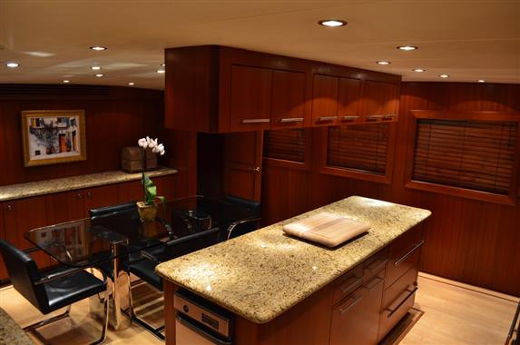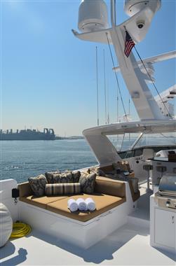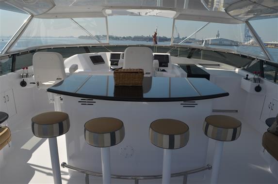 The spacious walk-around decks and large entertainment areas give the feeling of a much larger yacht and provide 360 degree access. The 100' Hatteras is renowned for its sturdy solid fiberglass hull construction and excellent sea handling capabilities, especially when faced with adverse weather conditions.