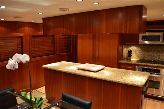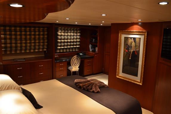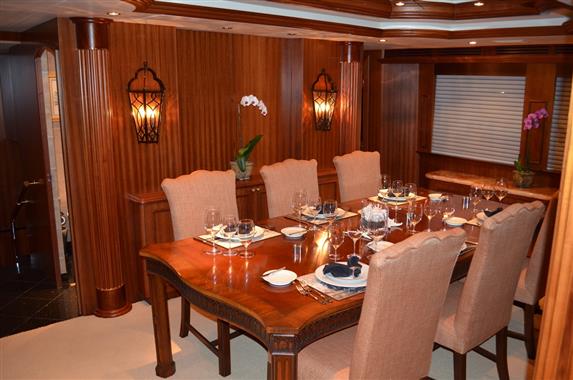 Her soft goods and many of the electronics have recently been redone and she boasts the warmth and rich feeling of Cherry wood throughout. With separate Crew Quarters aft and a private entry, this yacht promises to be the absolute in privacy and luxury for the aspiring 100 foot buyer.