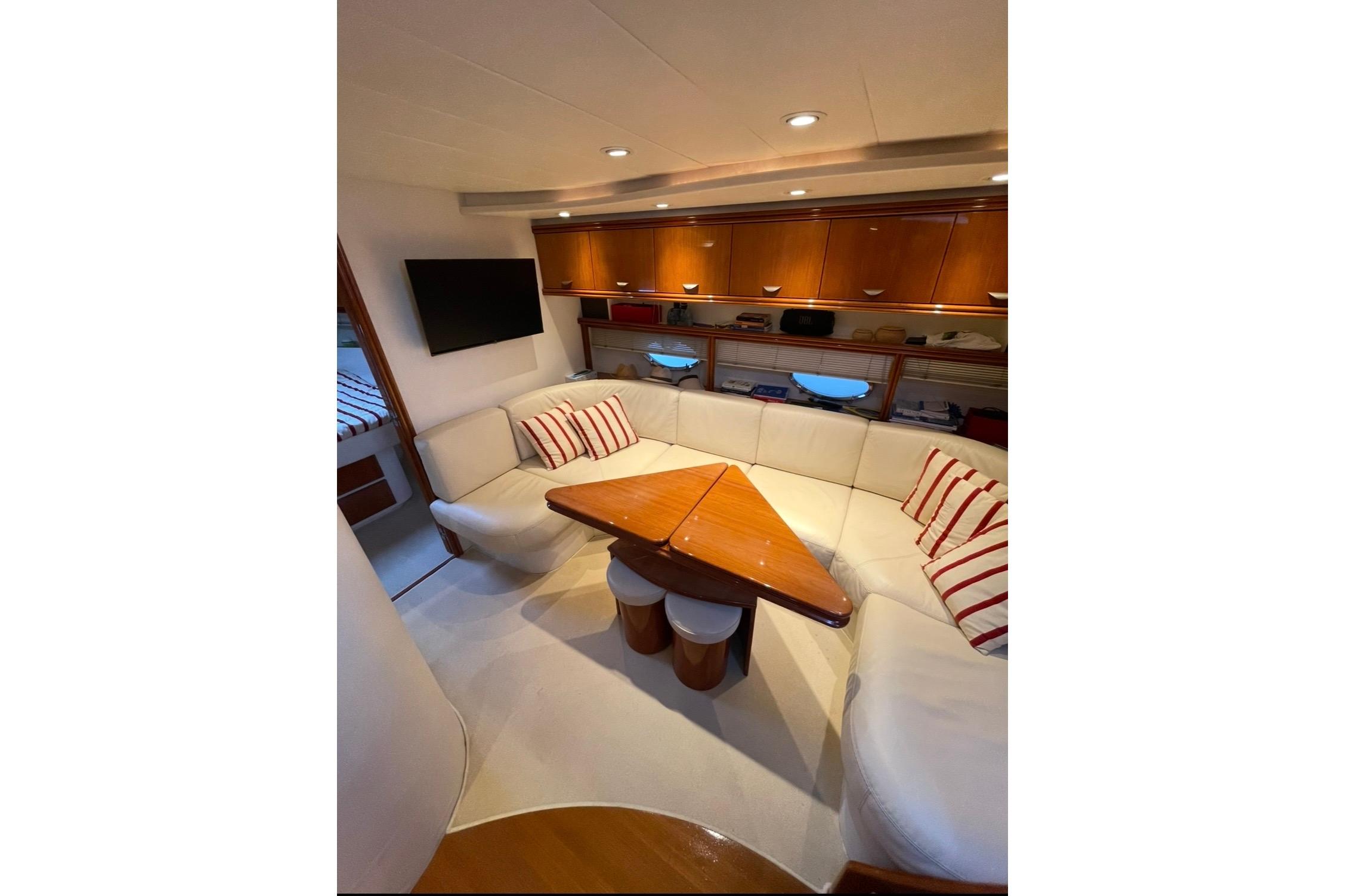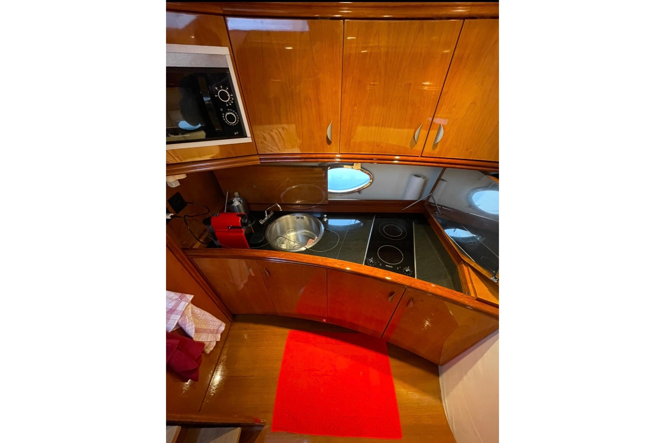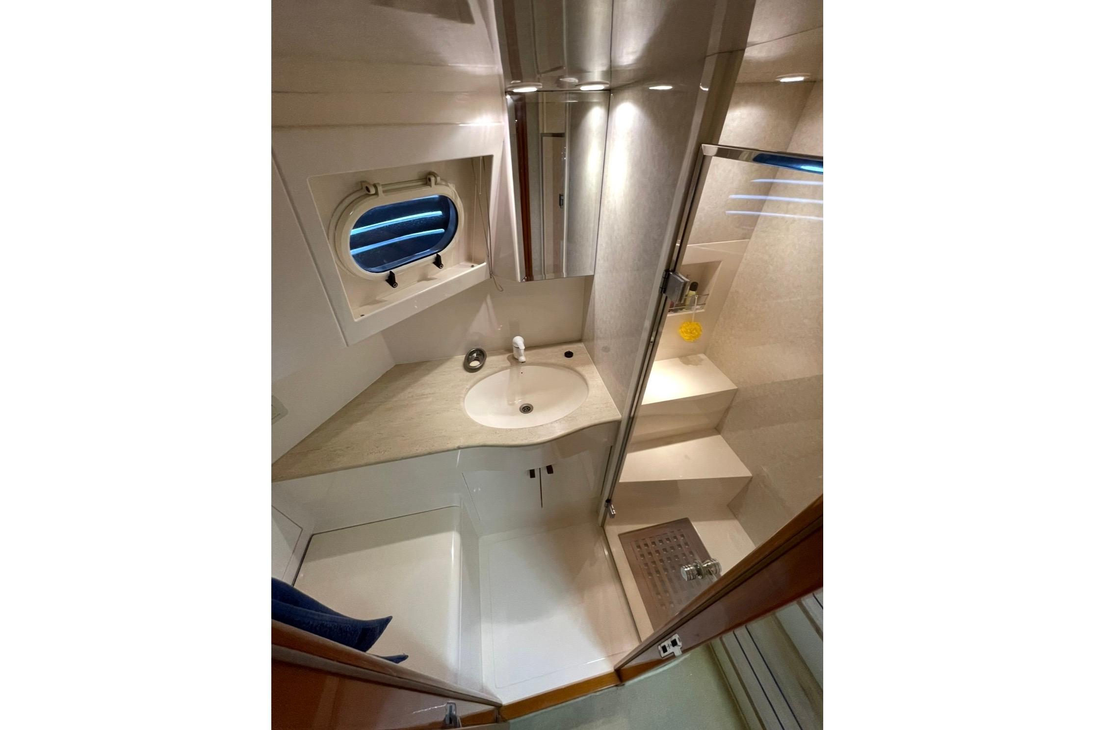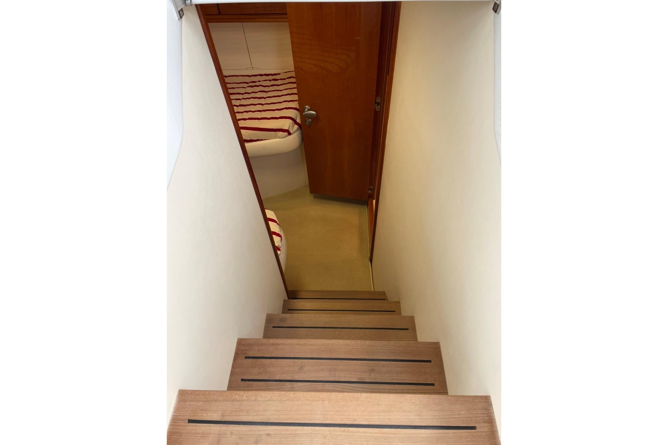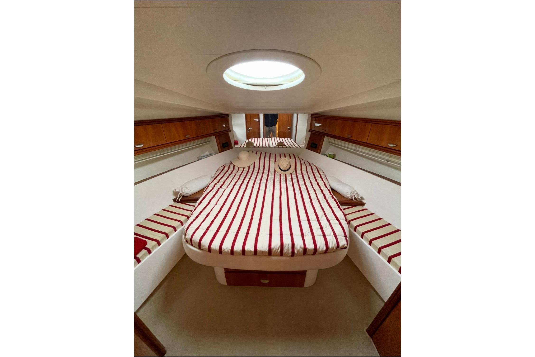 LāintĆ©rieur, raffinĆ© et lumineux, propose deux cabines doubles, un carrĆ© Ć©lĆ©gant, une cuisine entiĆØrement Ć©quipĆ©e et une salle dāeau confortable, le tout dans un Ć©tat proche du neuf. Chaque dĆ©tail tĆ©moigne du savoir-faire Pershing : finitions soignĆ©es, matĆ©riaux nobles et ergonomie pensĆ©e pour le plaisir Ć bord.