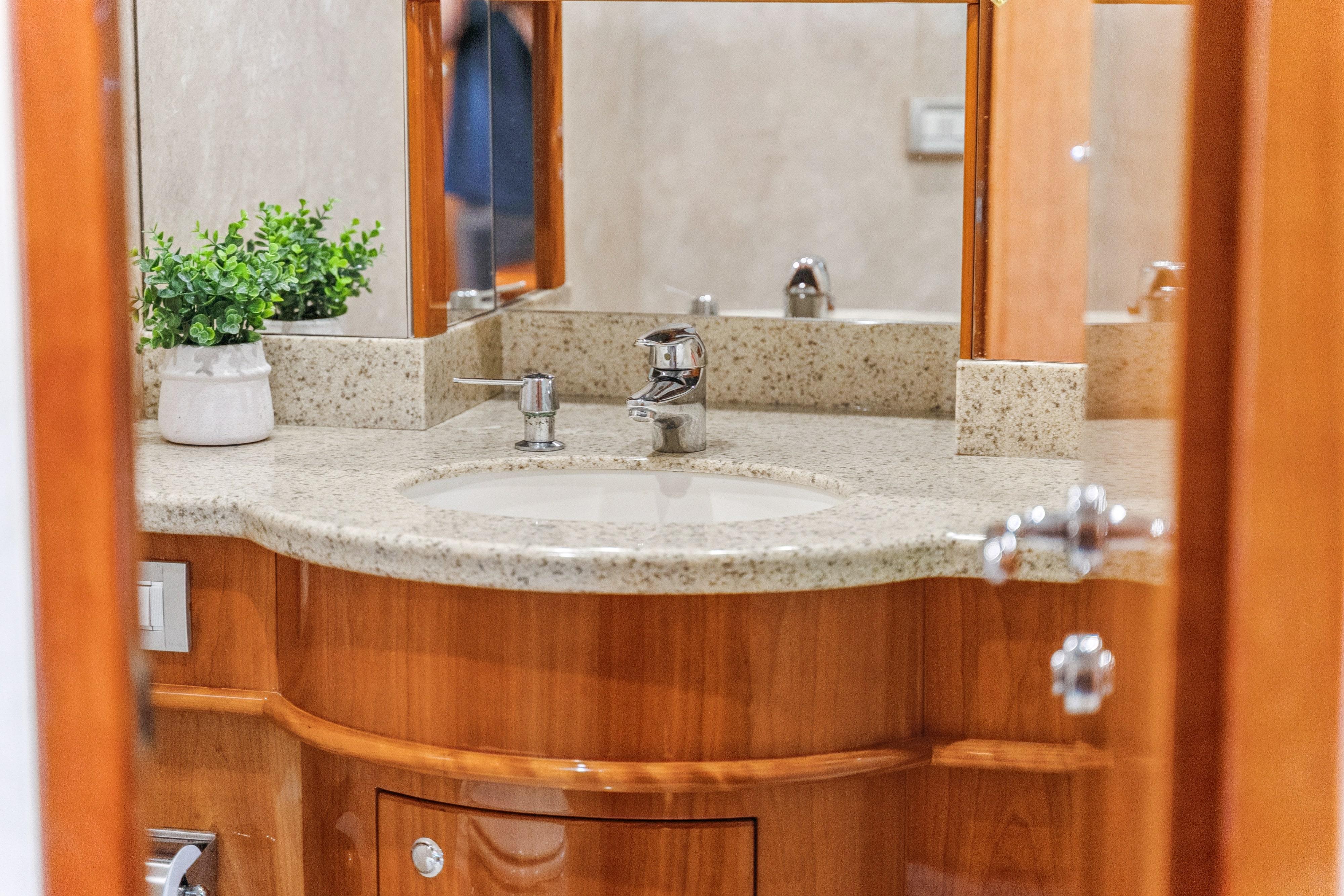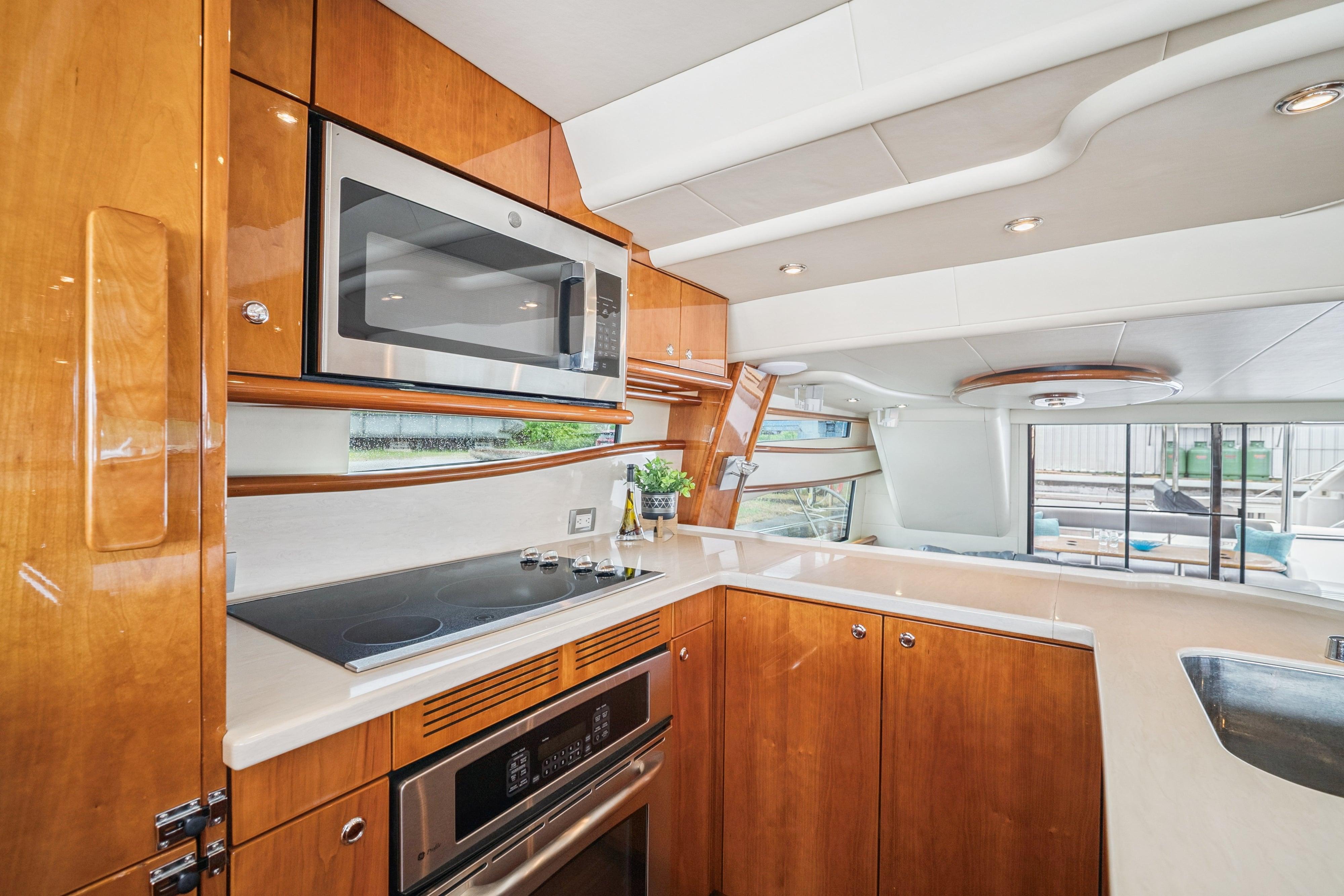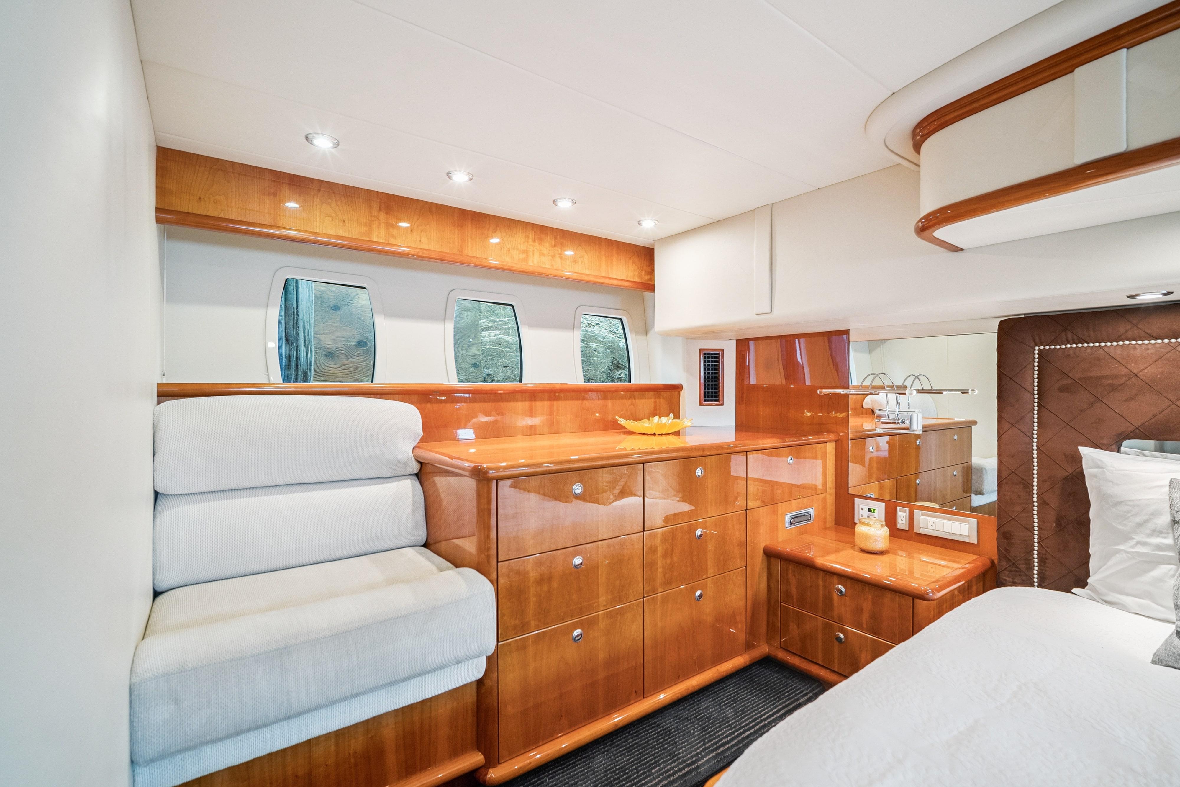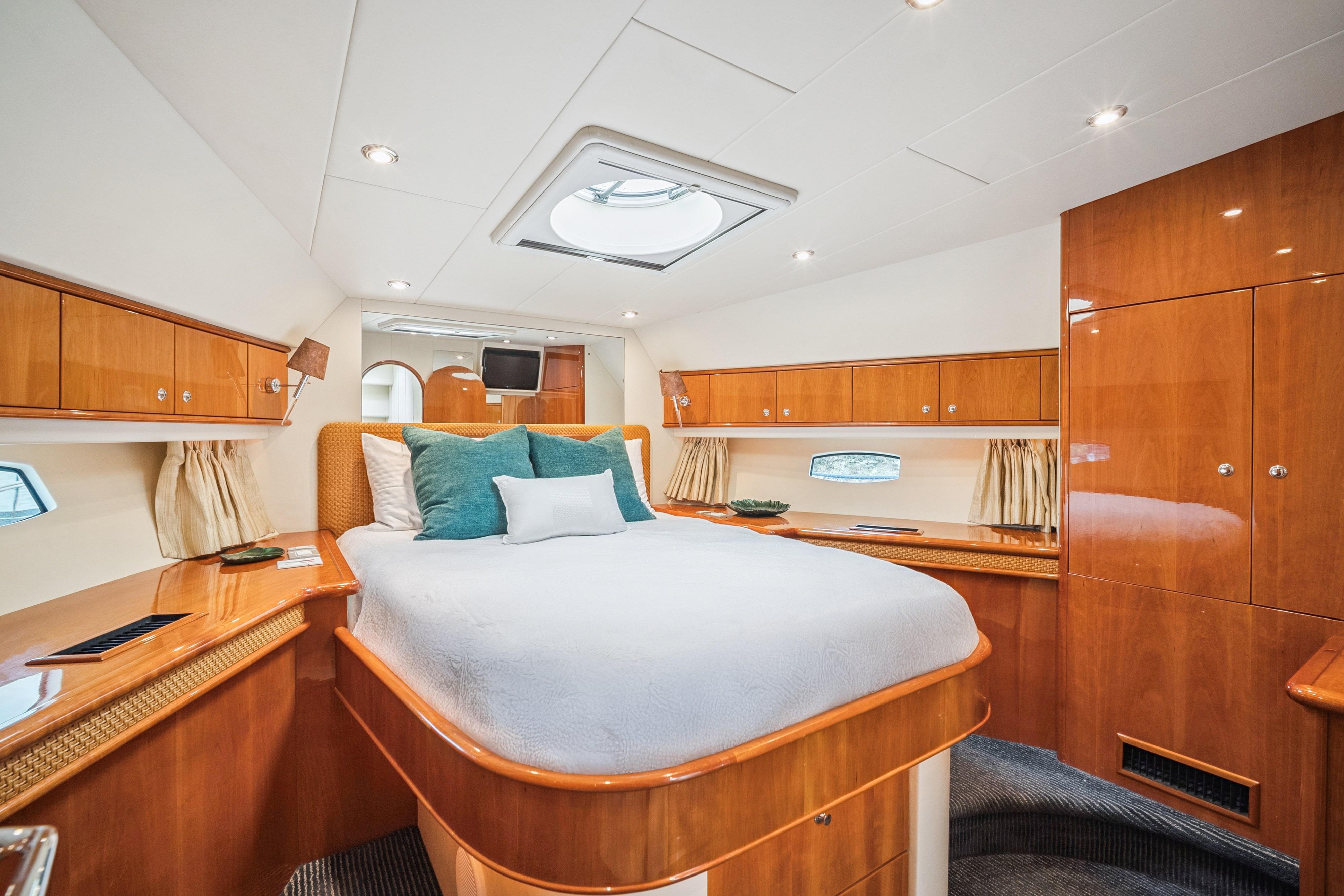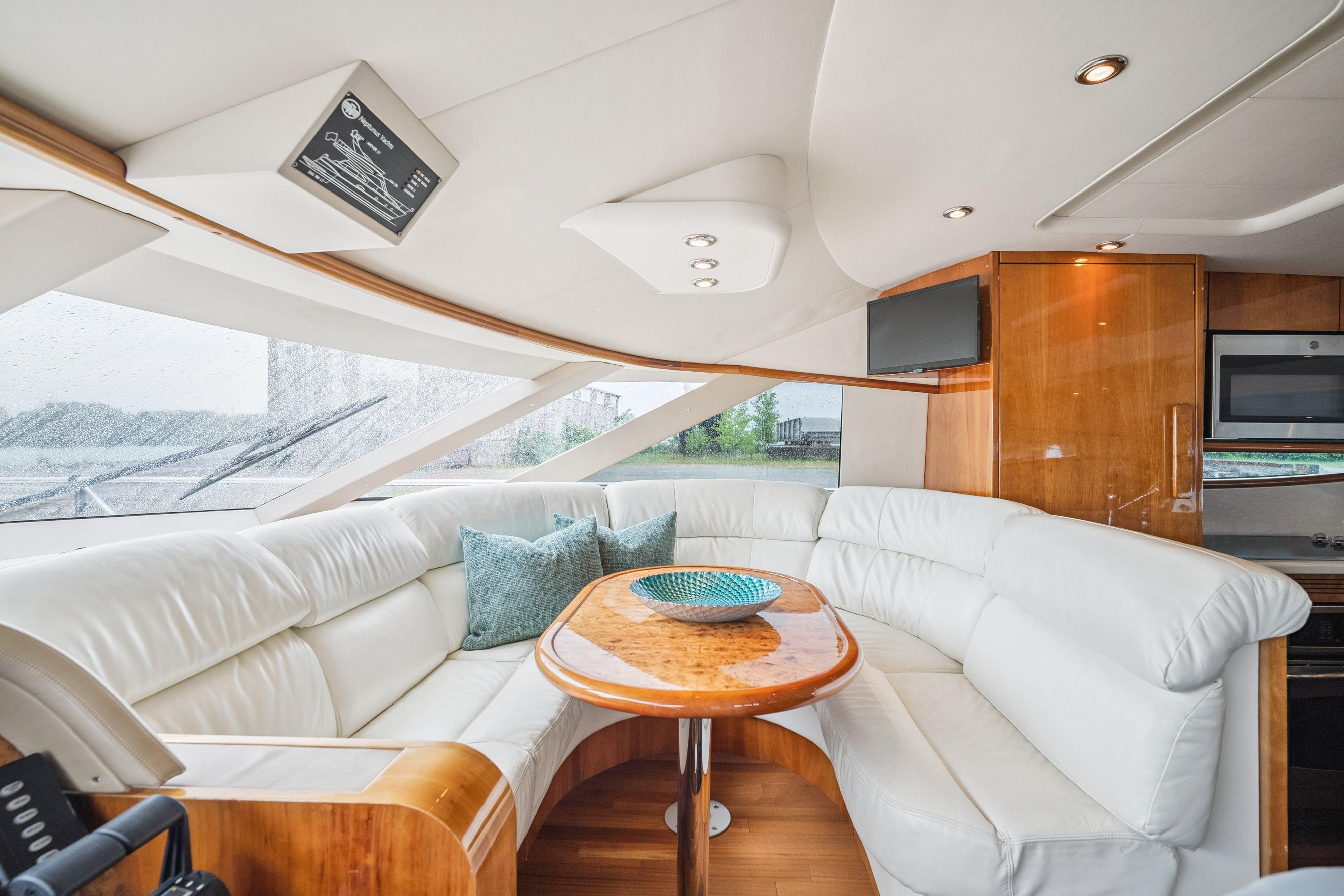 This 2008 Neptunus 62 features an open layout with three staterooms, two heads, a bright salon with opposing seating, a fully-equipped galley, and a dinette with 360 vistas. Her interior is graced with natural cherry joinery with a gloss finish. The salon, galley and dinette areas have cherry hardwood flooring.