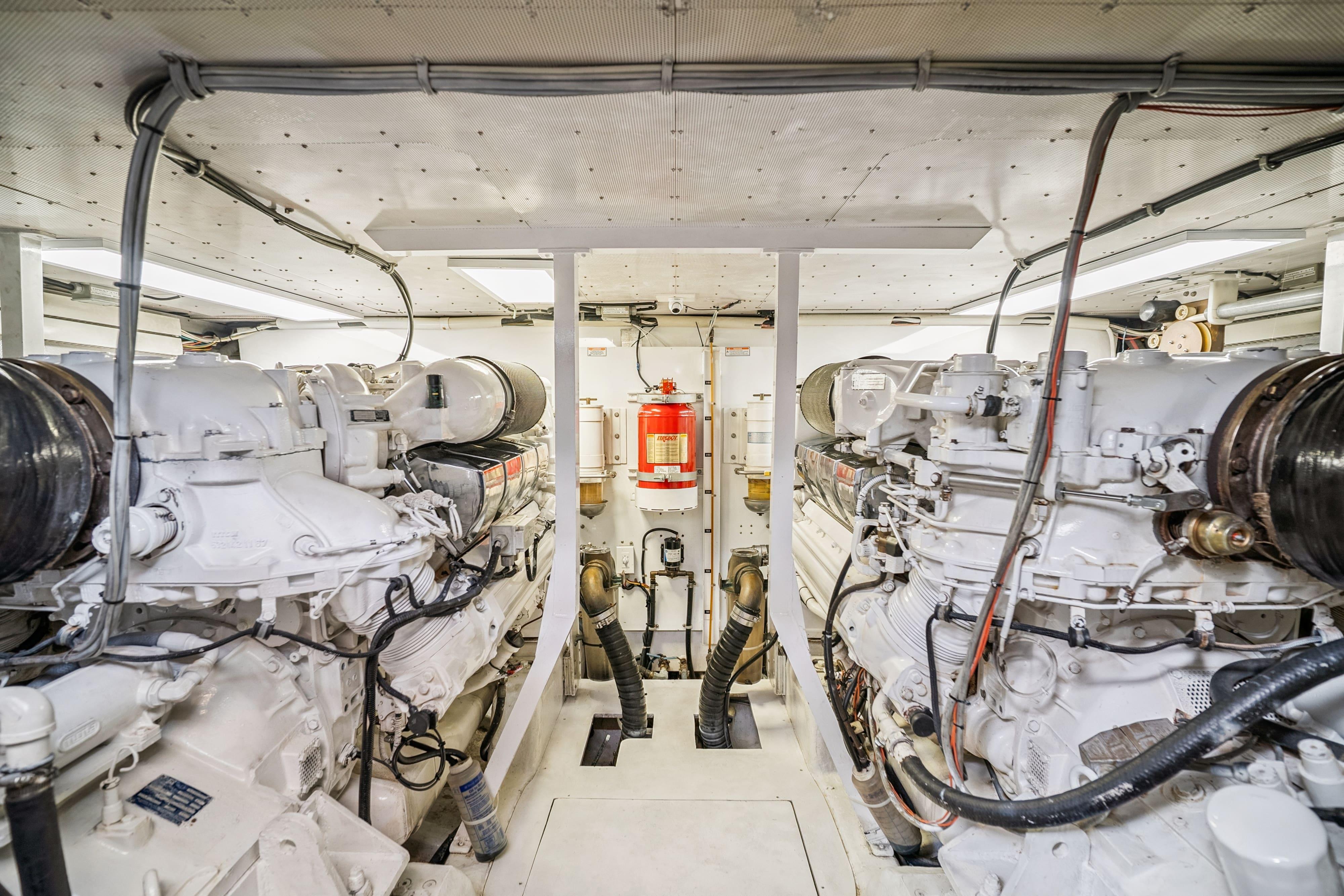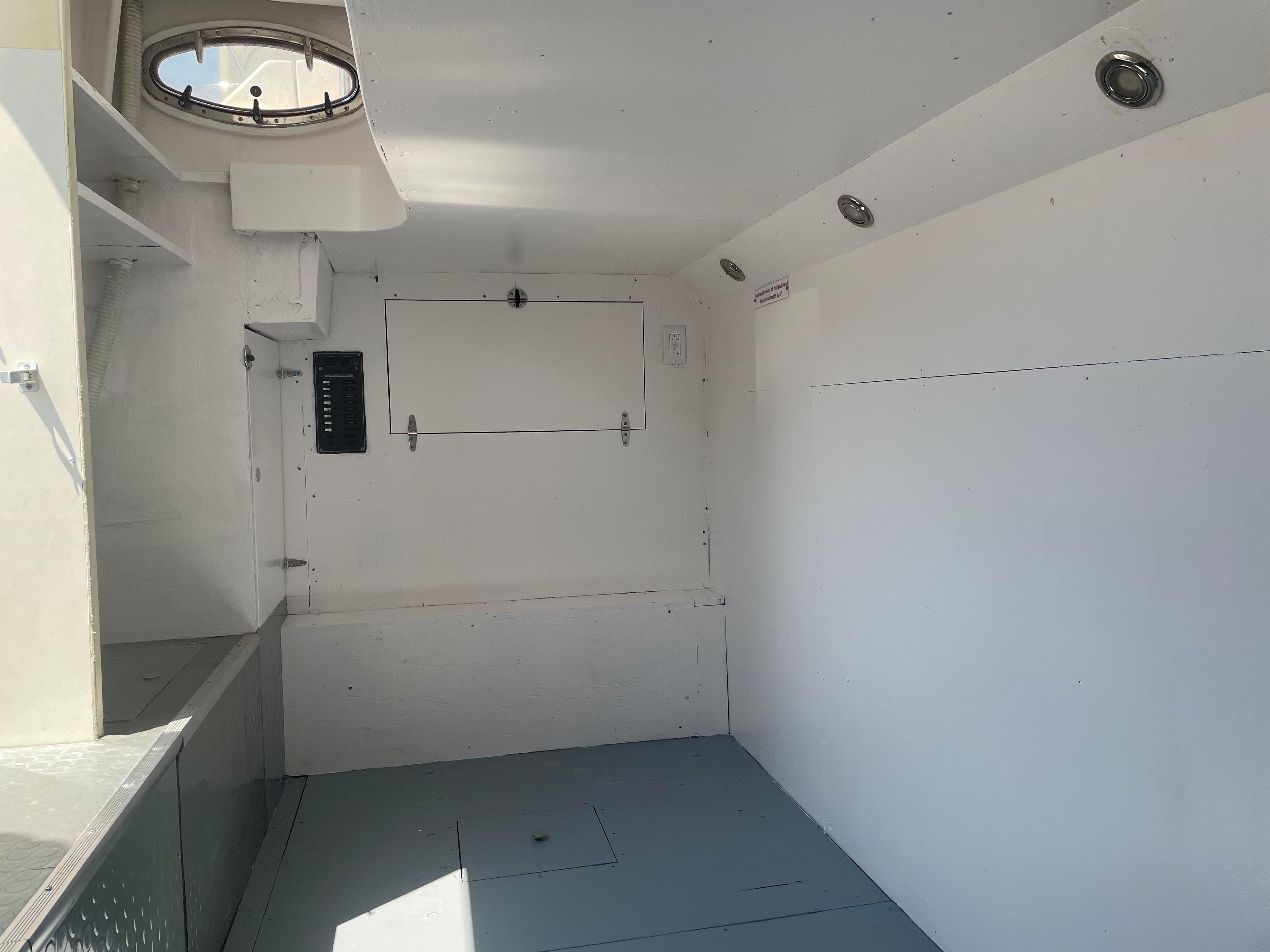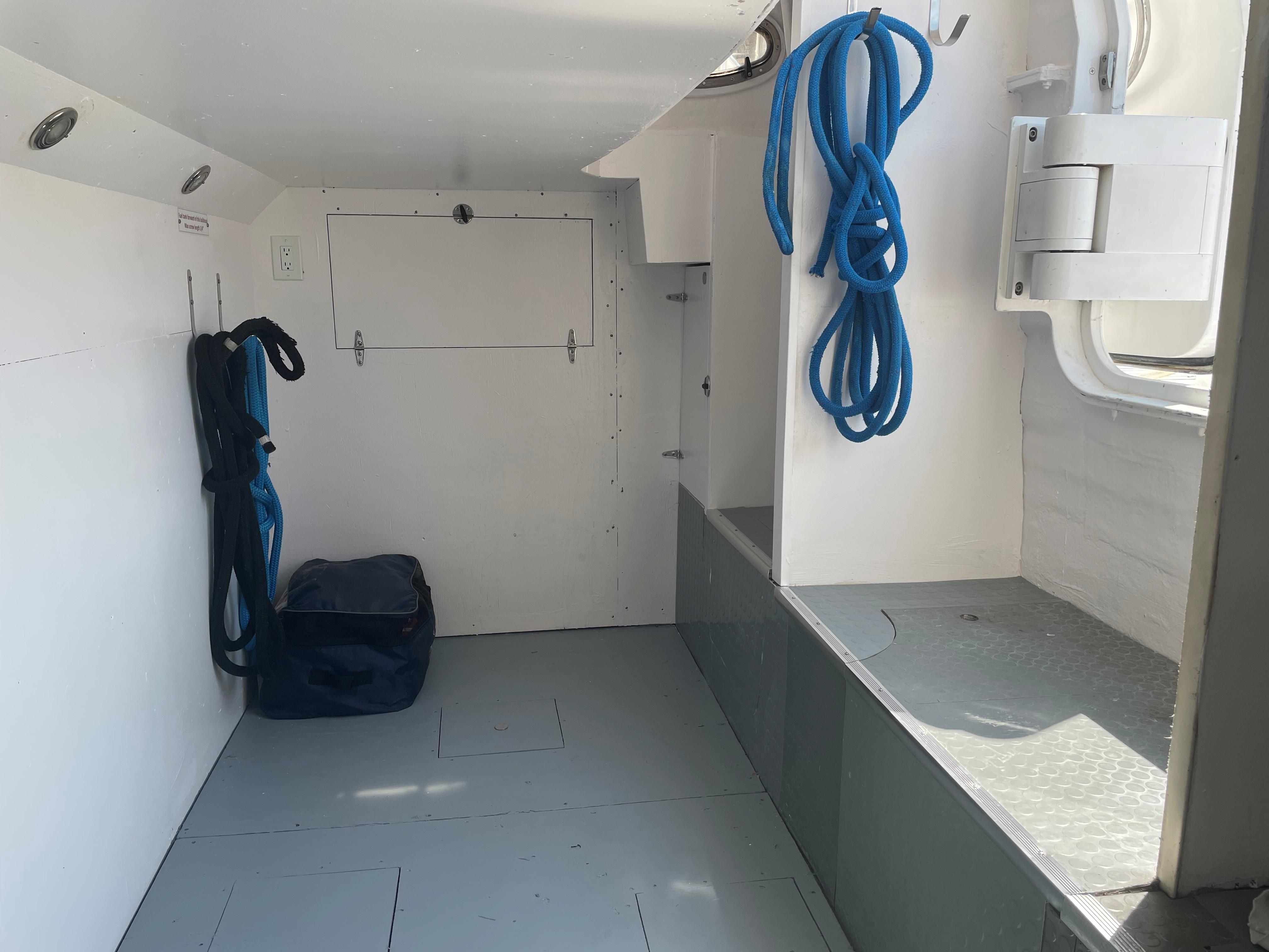 This Neptunus 62 has a lazarette aft with valuable space for storage. The lazarette is accessed via the watertight transom door. The engine room is accessed via an opening hatch in the cockpit.