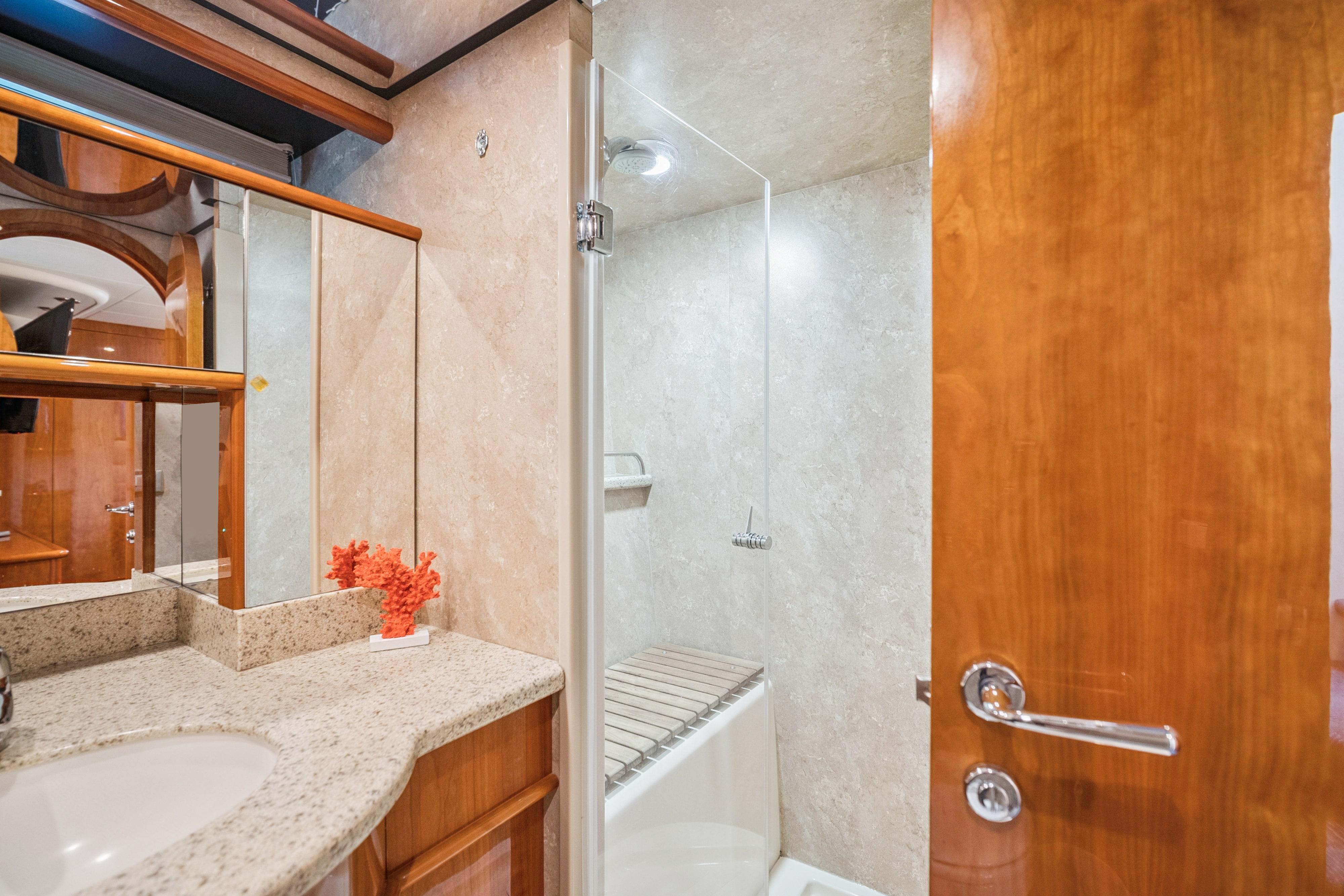 This Neptunus 62 has a comfortable aft deck with teak decking and built-in seating. The salon is bright and spacious with opposing seating port and starboard. The salon couch and chairs have leather upholstery. The galley has an upright Sub-Zero fridge/freezer for extended cruising or entertaining. Below decks are three staterooms and two heads. The master is amidships and takes advantage of the widest part of the yacht. The master has a full ensuite, and the layout includes extended master stateroom storage. Forward is the VIP cabin with full guest head, and on starboard is the guest stateroom with twin berths.