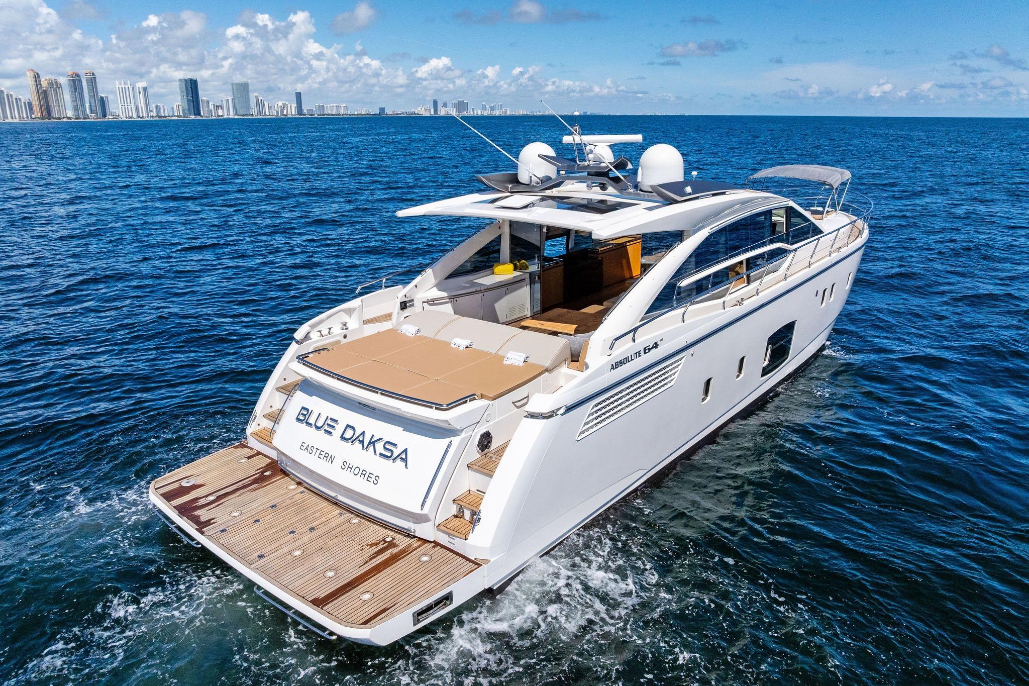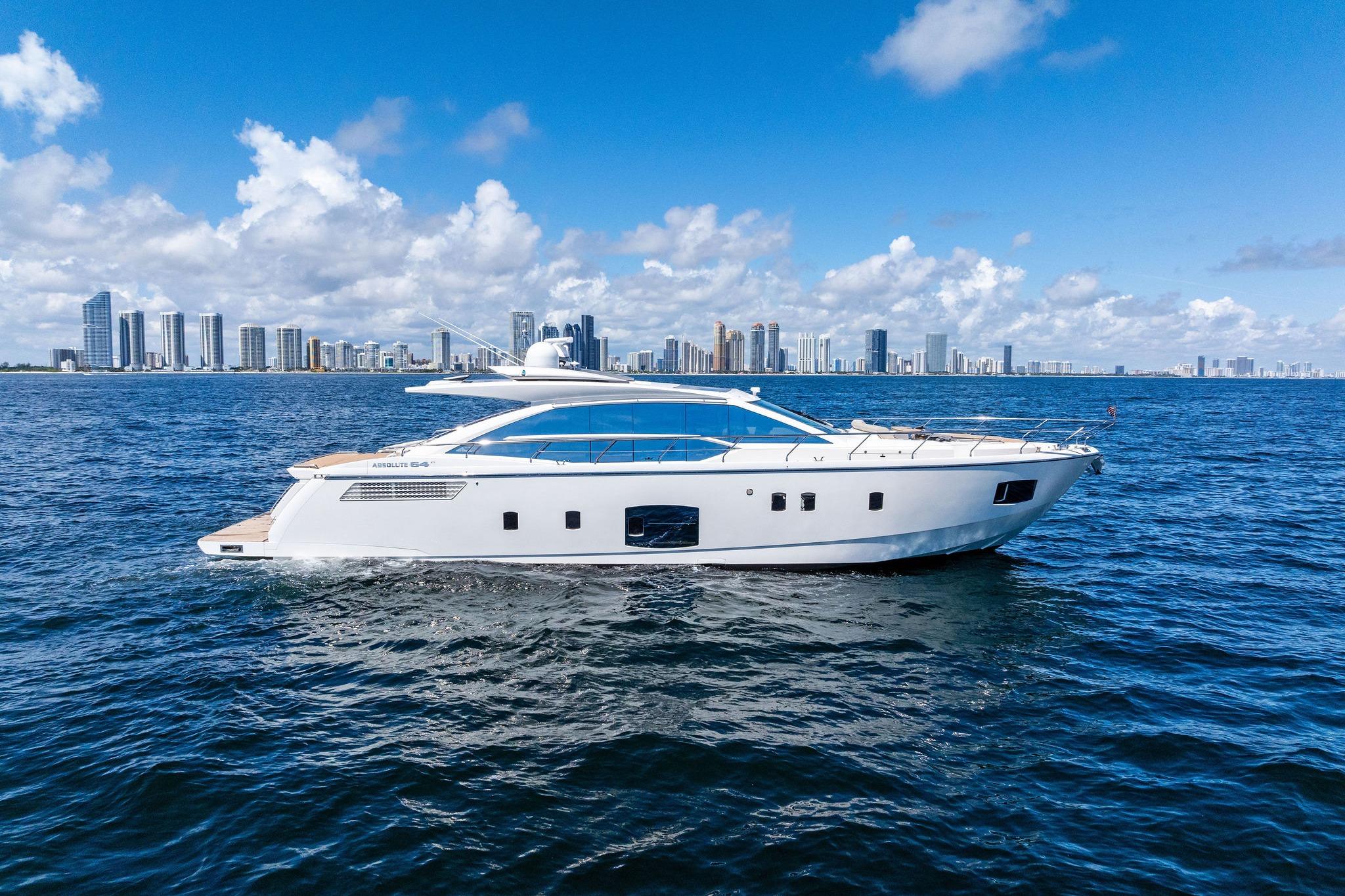We proudly present this highly customized 64' Absolute! She was built by an extremely knowledge able and detail-oriented owner who has made very well-planned upgrades to the vessel for cruising pleasure. You will not find a more user friendly, accessible boat. The 64' boasts a fantastic ride and 360-degree visibility at the helm. She is laid out with upper and lower salons featuring 2 staterooms en suite, with the traditional 3rd stateroom having a customized open layout equipped with an office and Sofa that could be used as an additional sleeping area also en suite. The lower level features an addition of finished wood flooring. IPS drives bring fuel efficiency and can be operated by a joystick at helm. A perfect yacht for family enjoyment and extended cruising. She recently had a bottom paint job, and both IPS transmissions were fully rebuilt.