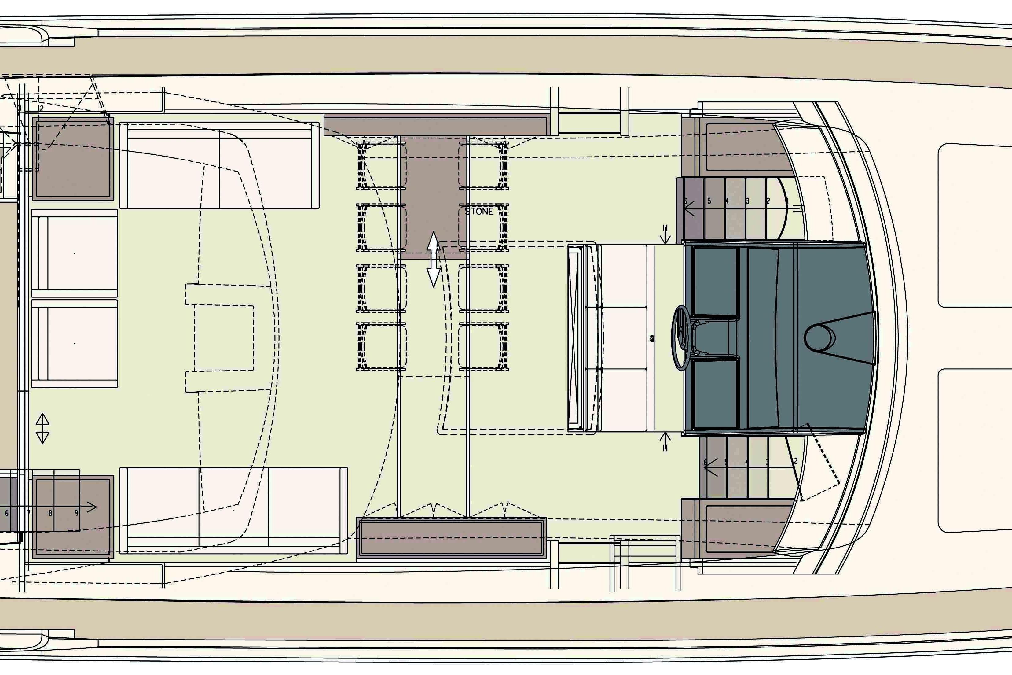 Deck:Ā New custom teak tables by YRM; all-new exterior upholstery by Admiral Canvas (Horizon Capriccio/Sunbrella); new Izerwaren gas shocks on all hatches. Feb 2026 Teak Replacement on over 50% of exterior surfaces.Ā