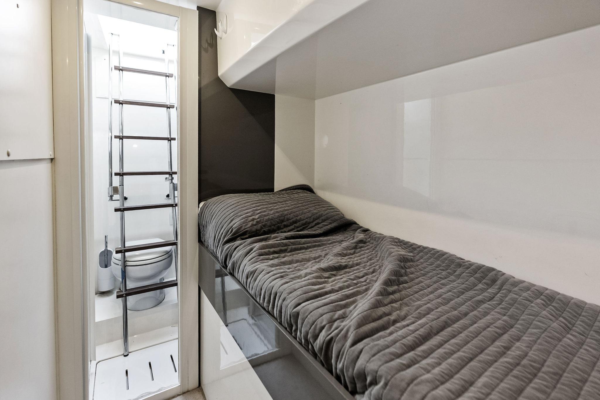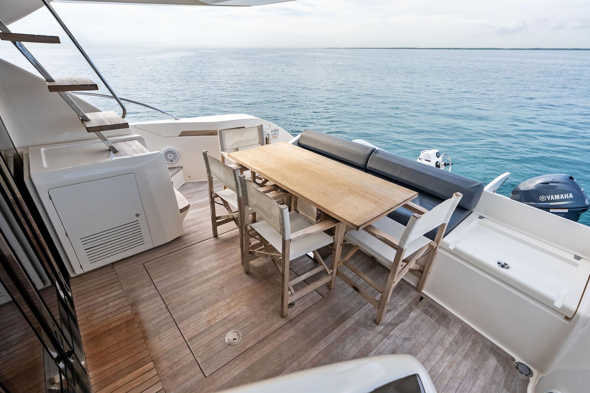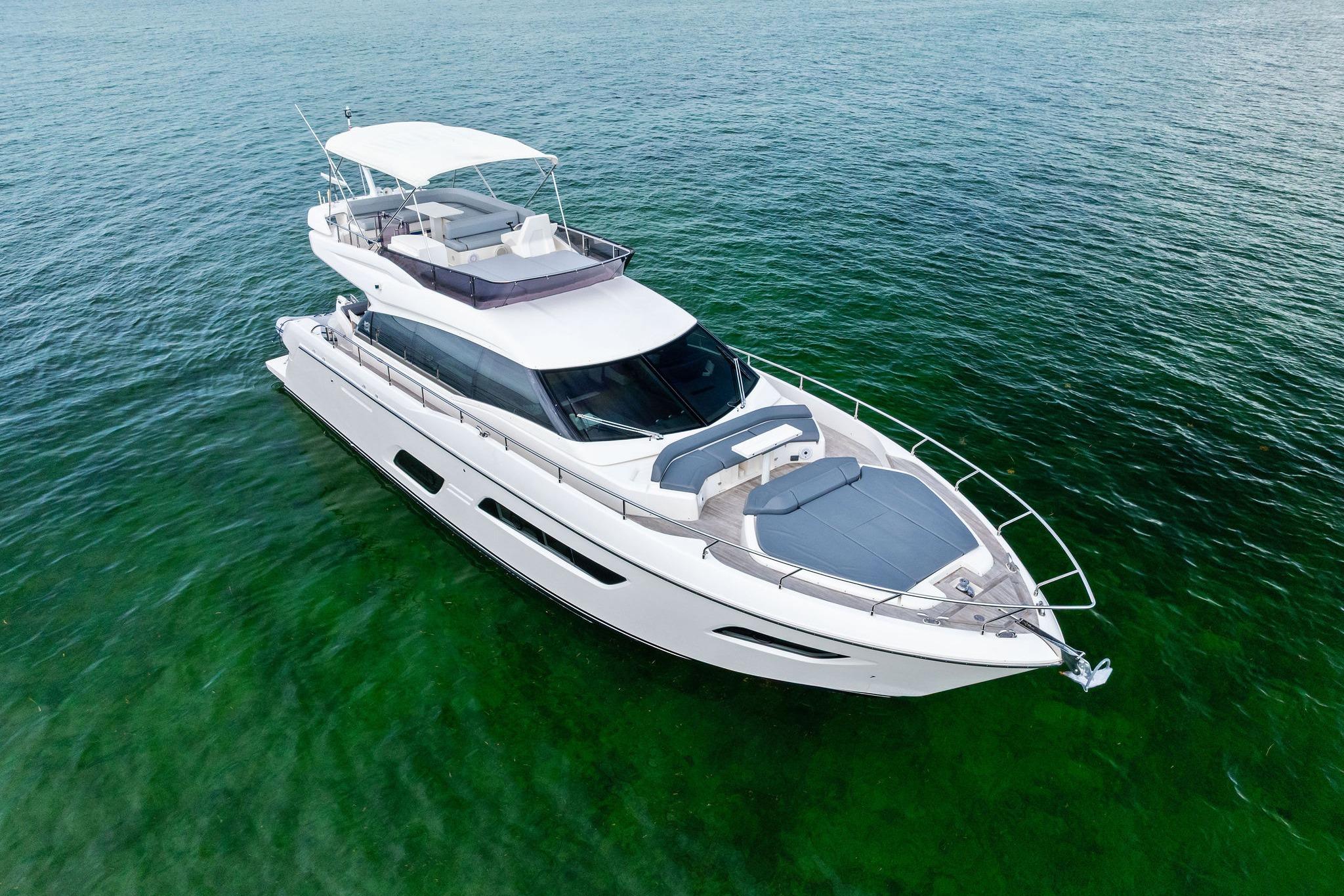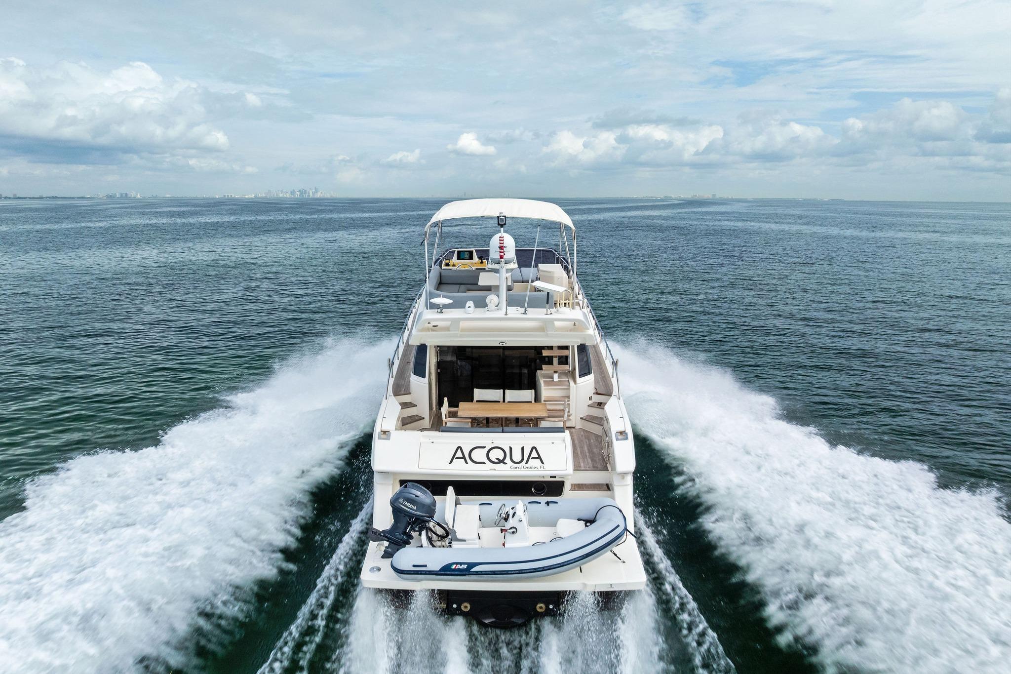 ACQUA accommodates six guests in three spacious staterooms. The yacht has a “just like home feel” with a comfortable sofa, tasteful interior color and soft goods. The outside boasts multiple lounge areas, flybridge and foredeck. The yacht also has an upgraded JL Audio system throughout the vessel, excellent for entertaining family and friends.
