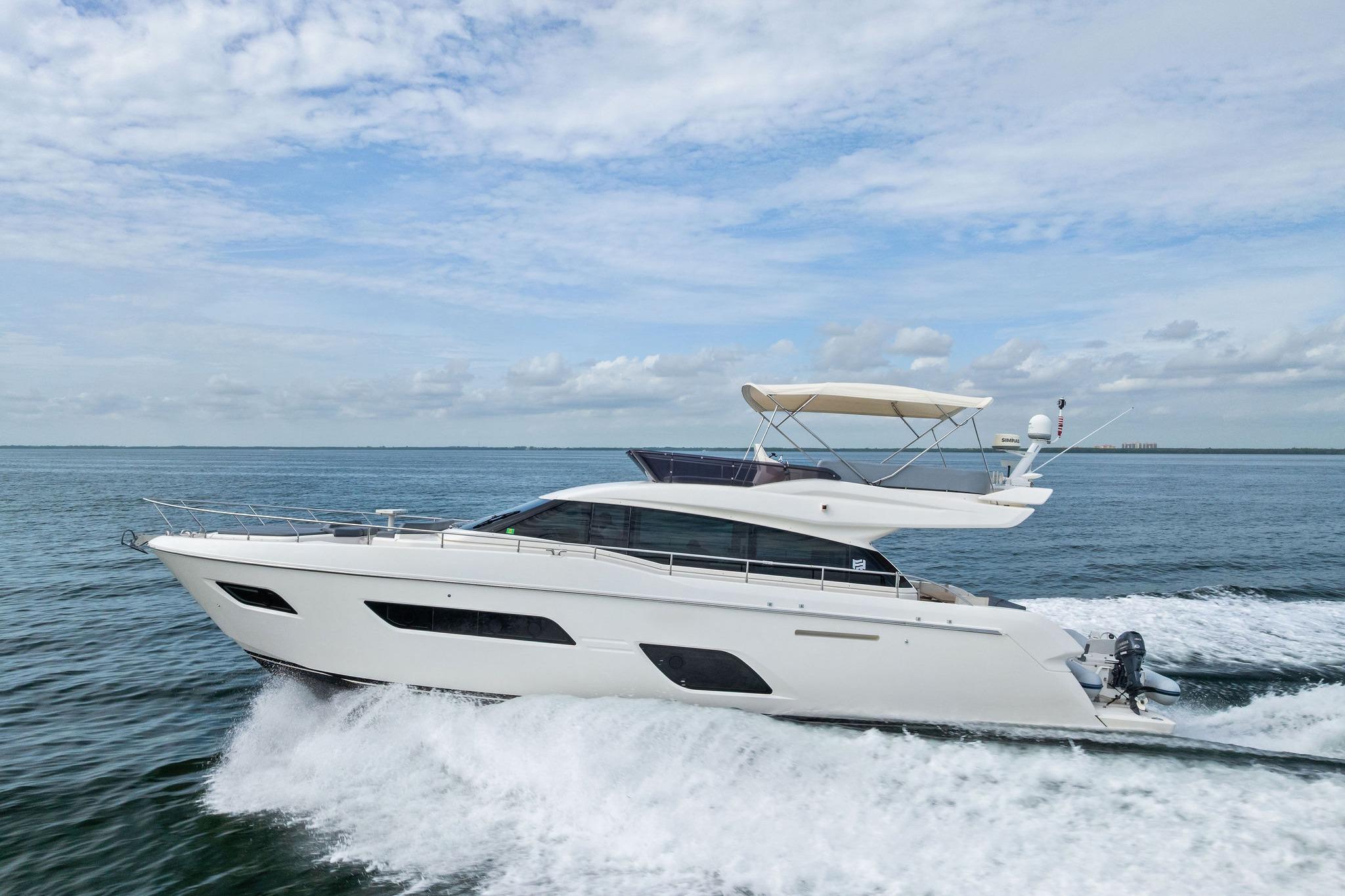 ACQUA is a beautiful, 55 Ferretti. The yacht has been maintained by a full-time captain and the attention to detail shows. This 55 has the upgraded 800 MAN Diesels, cruising at a comfortable 26 knots.