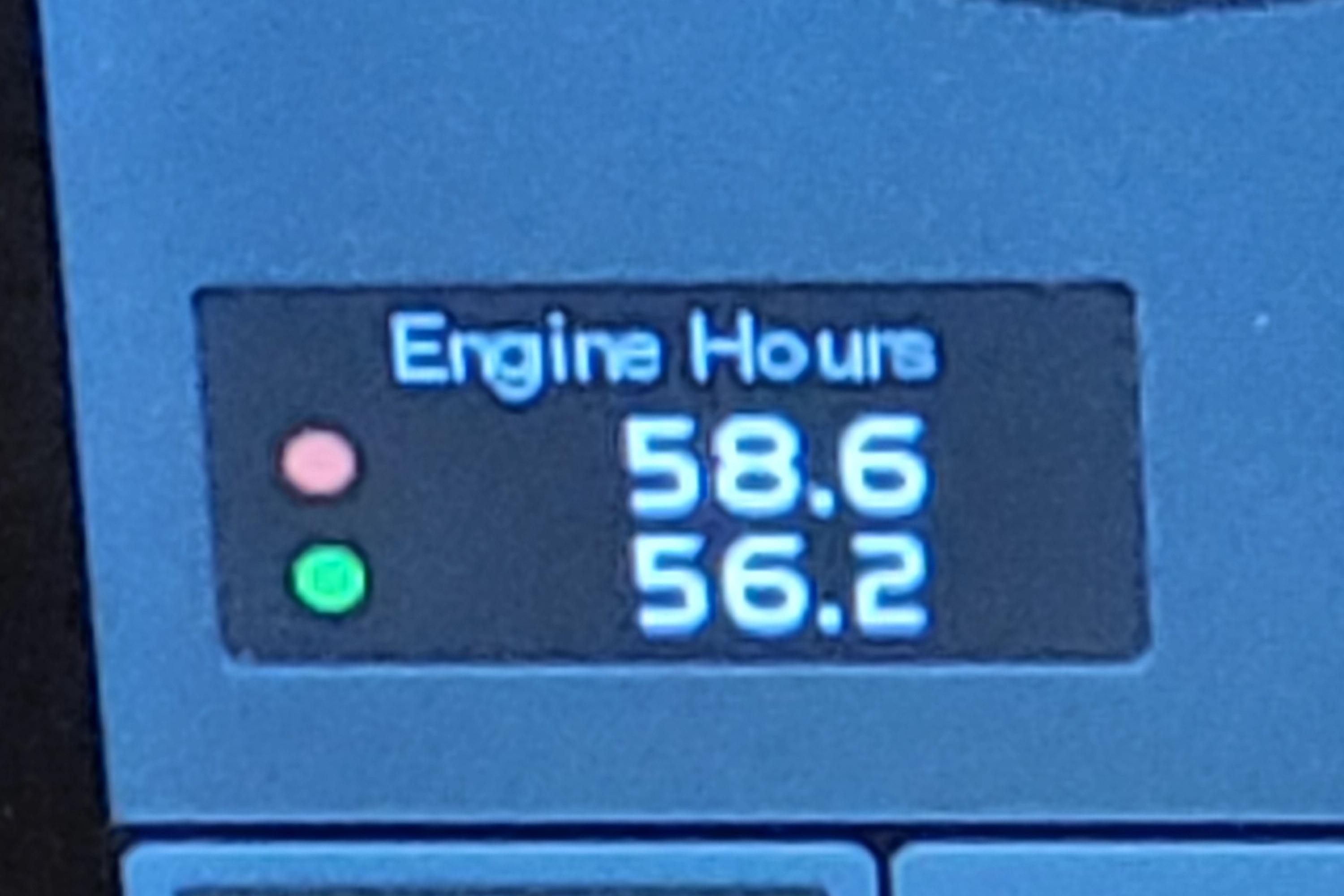 The boat was launched again in August, 2023 and to date the total engine hours are: Green = 54.2 hours and the Red = 56.6 hours.
