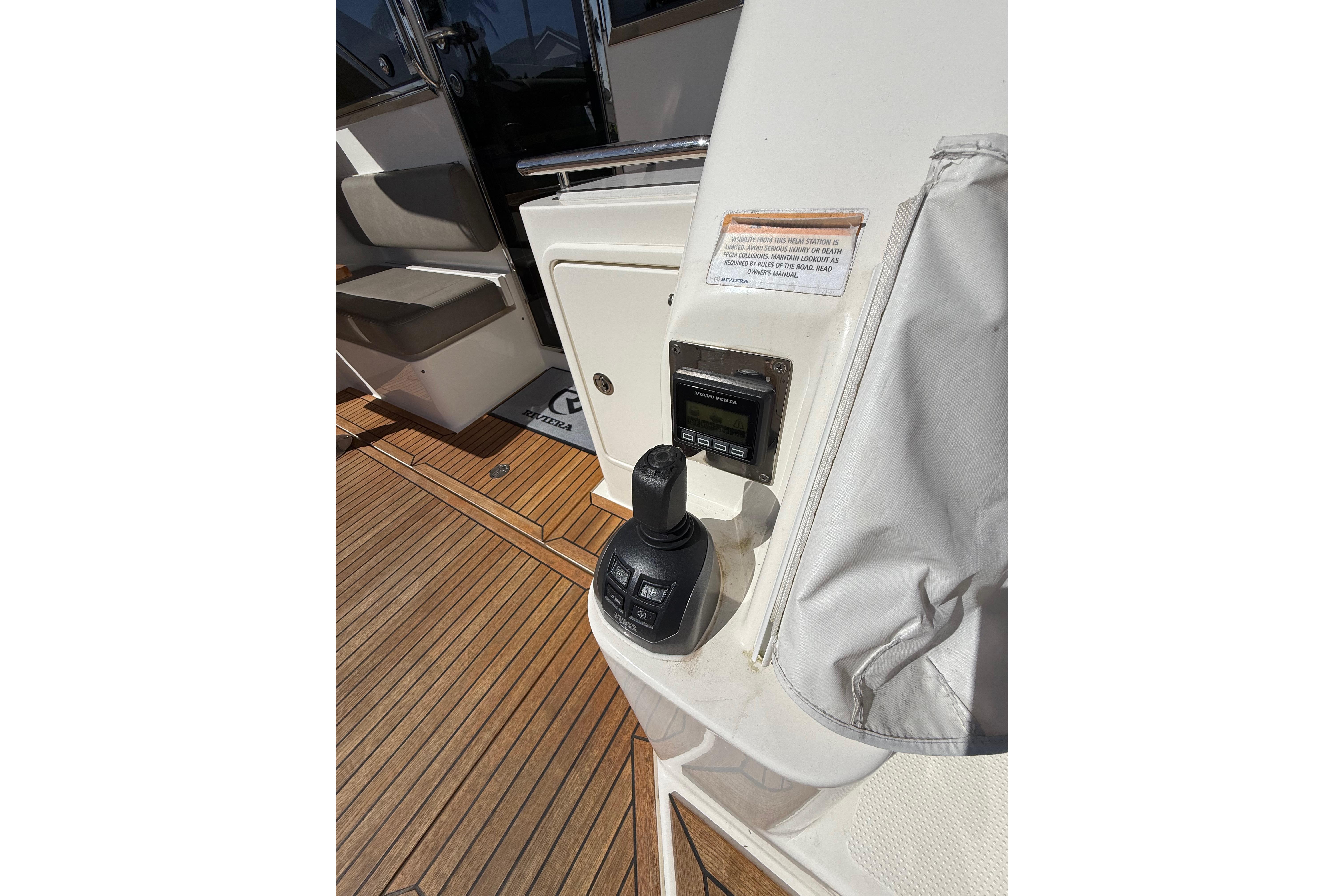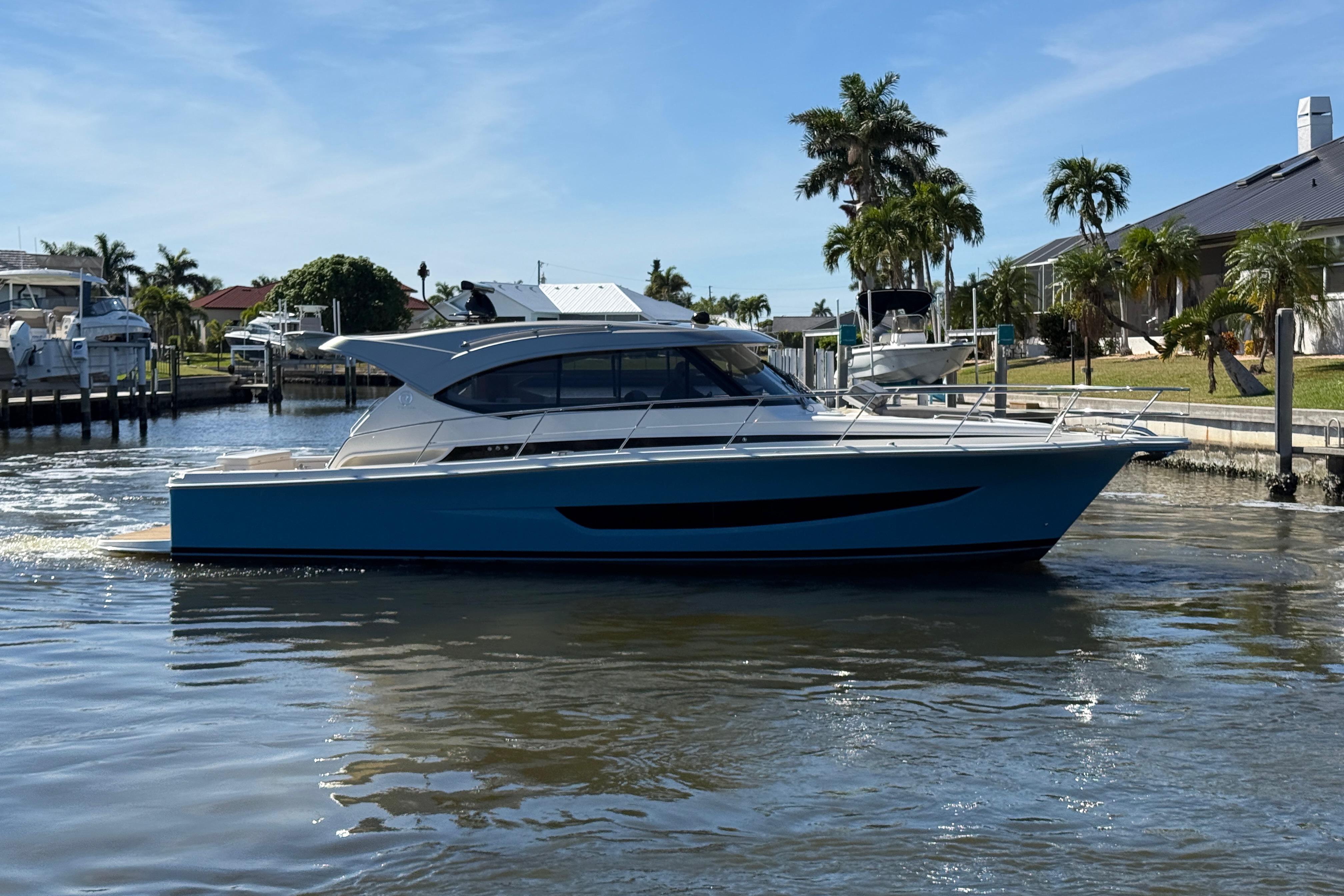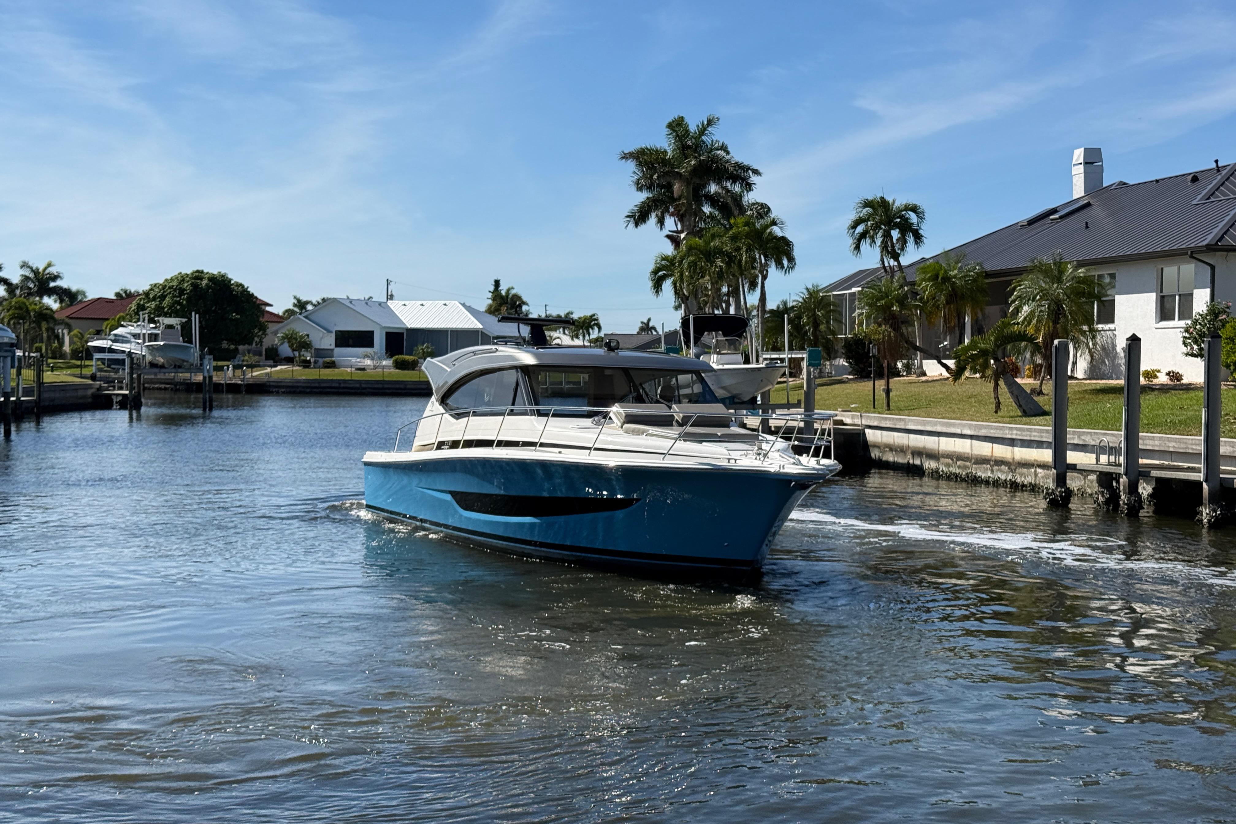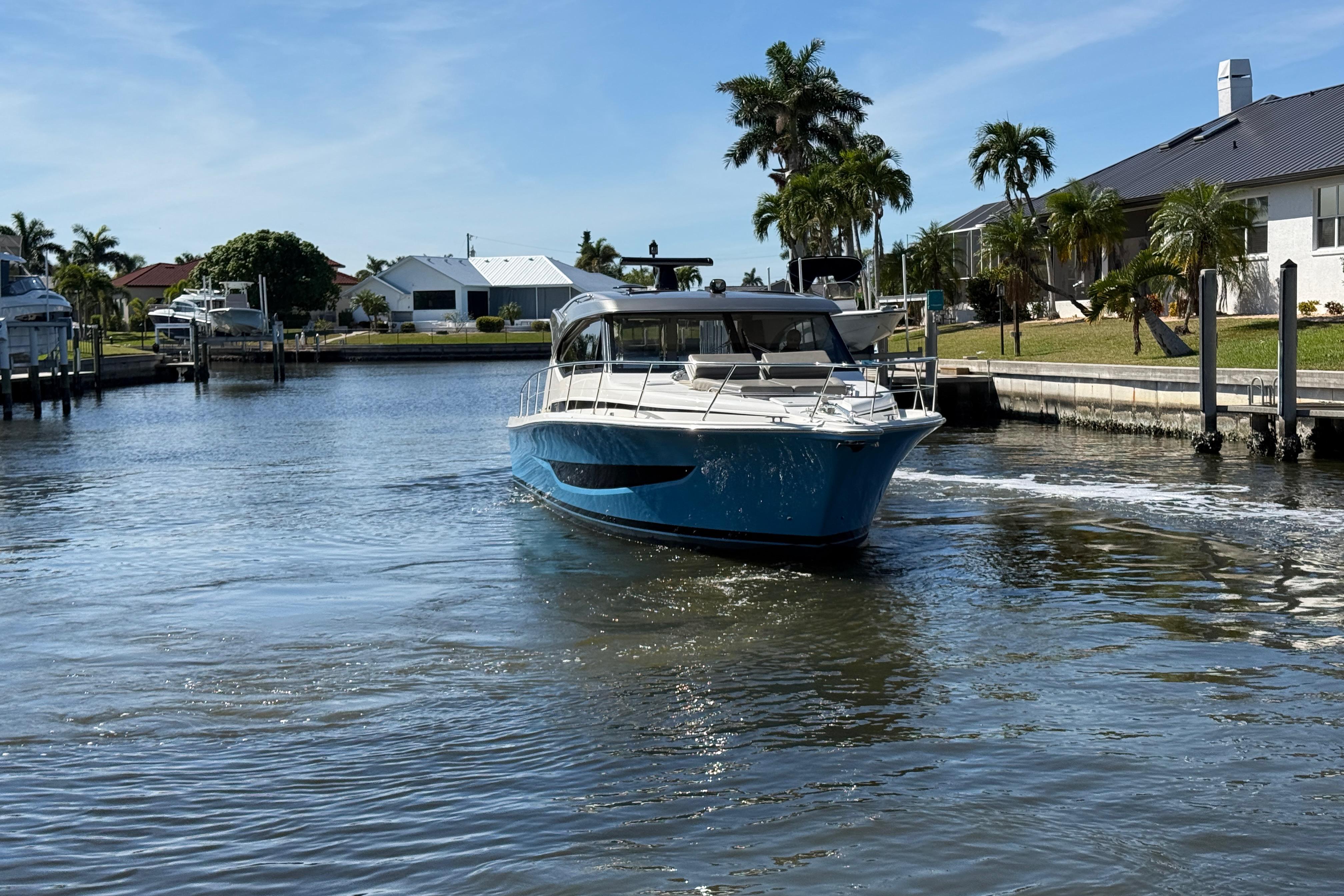 This 2021 Riviera 395 SUV is in near new condition. It stands out in the crowd with its Bahama Blue painted hull, teak cockpit, and the glistening gelcoat finish all around. All services were done in May of 2024, as well as new bottom paint. This vessel is turn key and ready for survey.