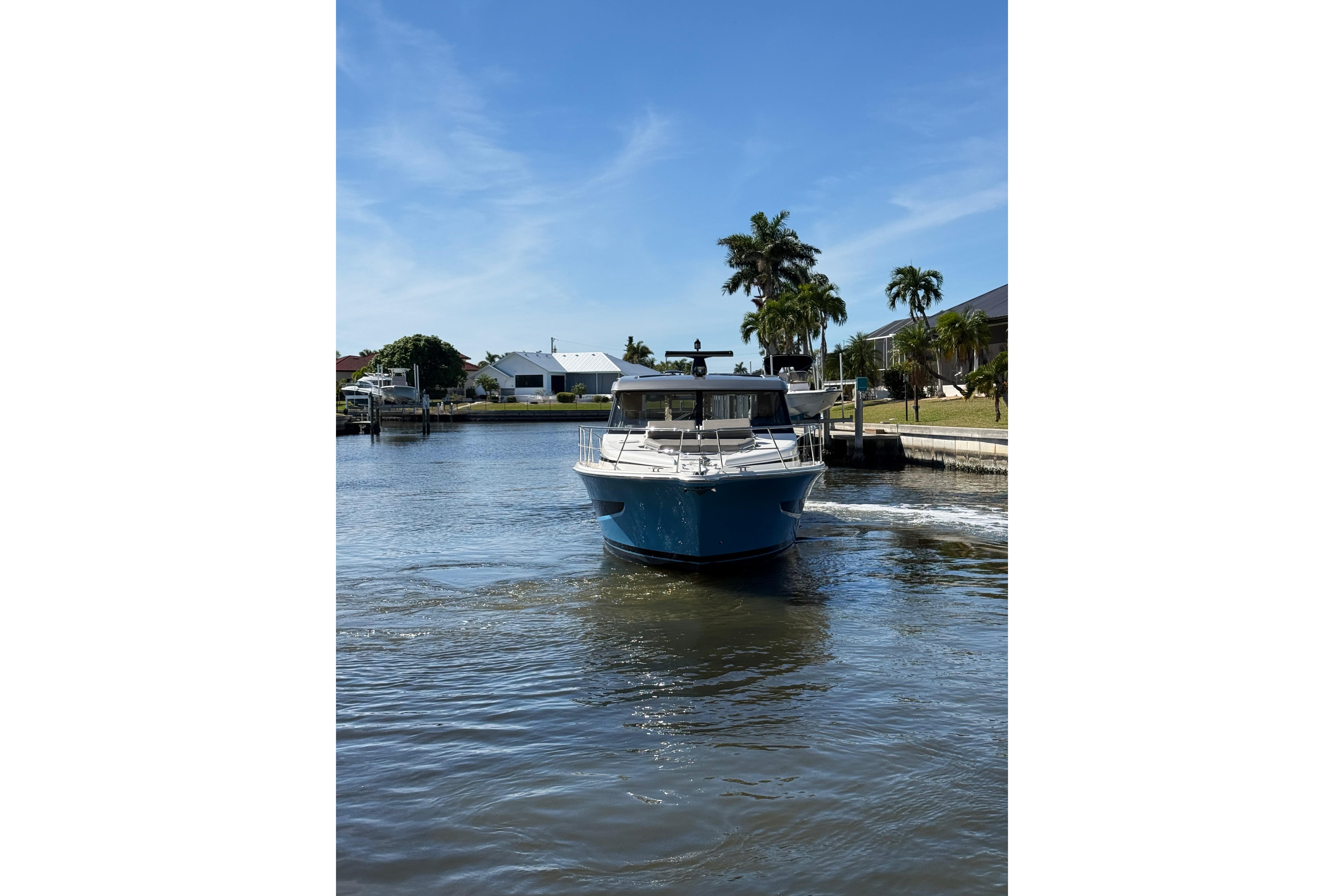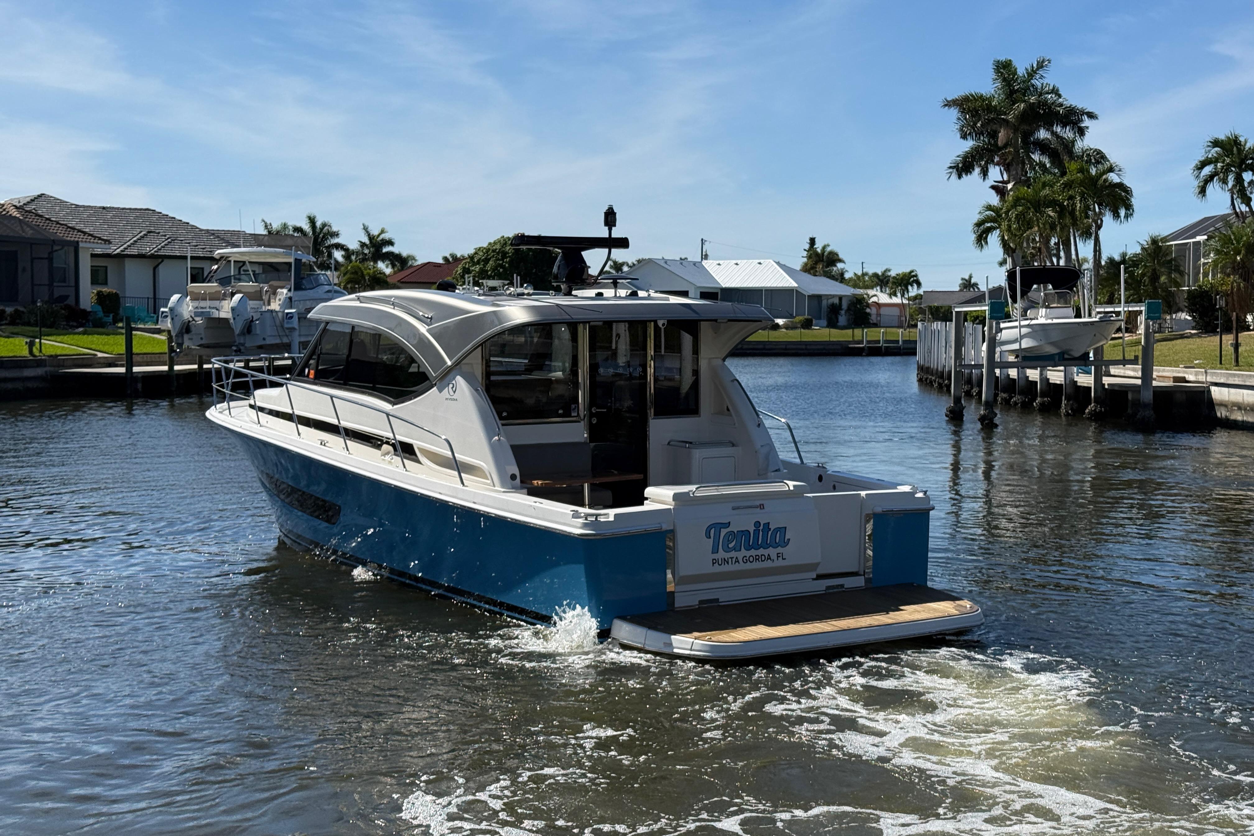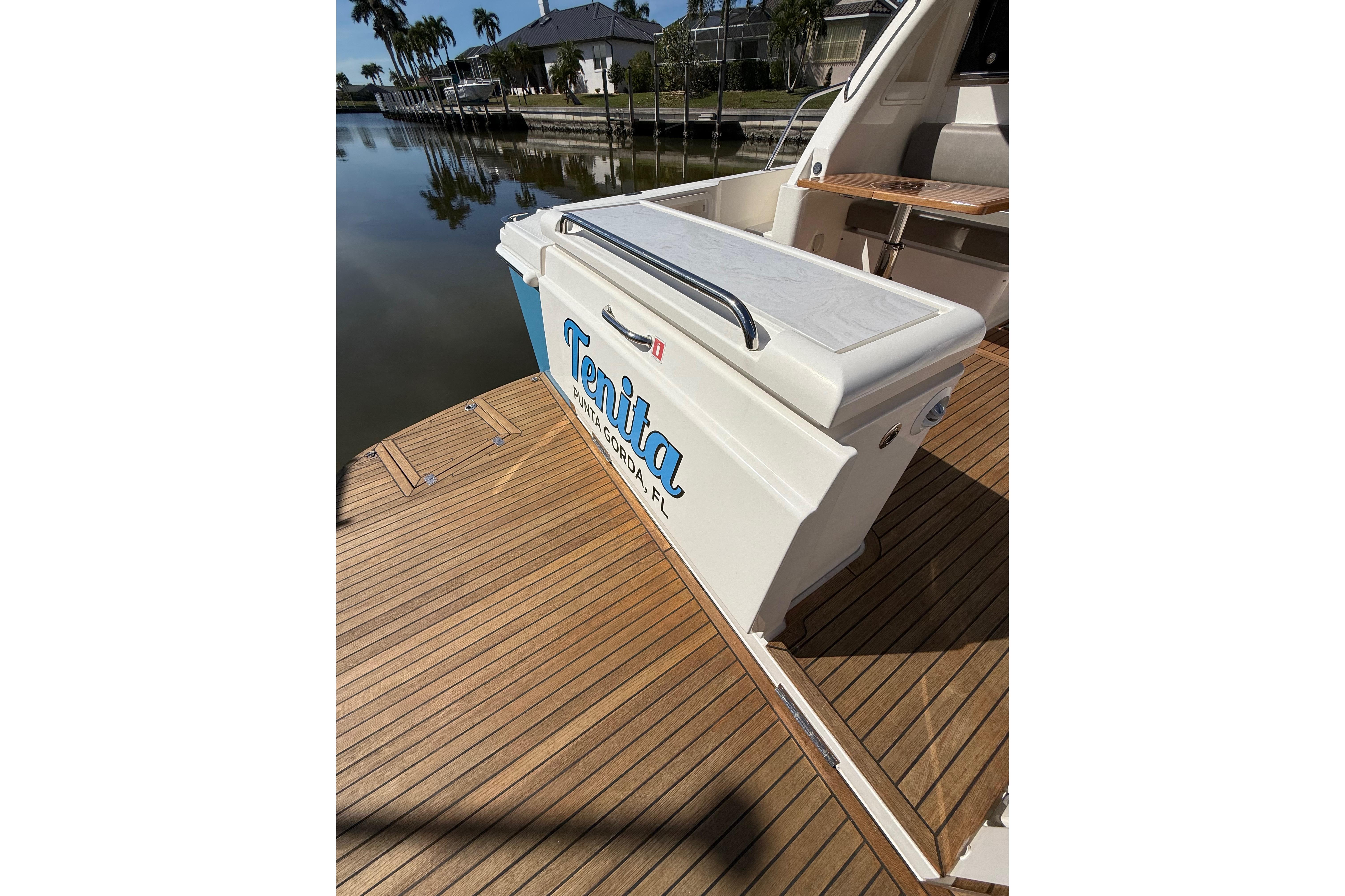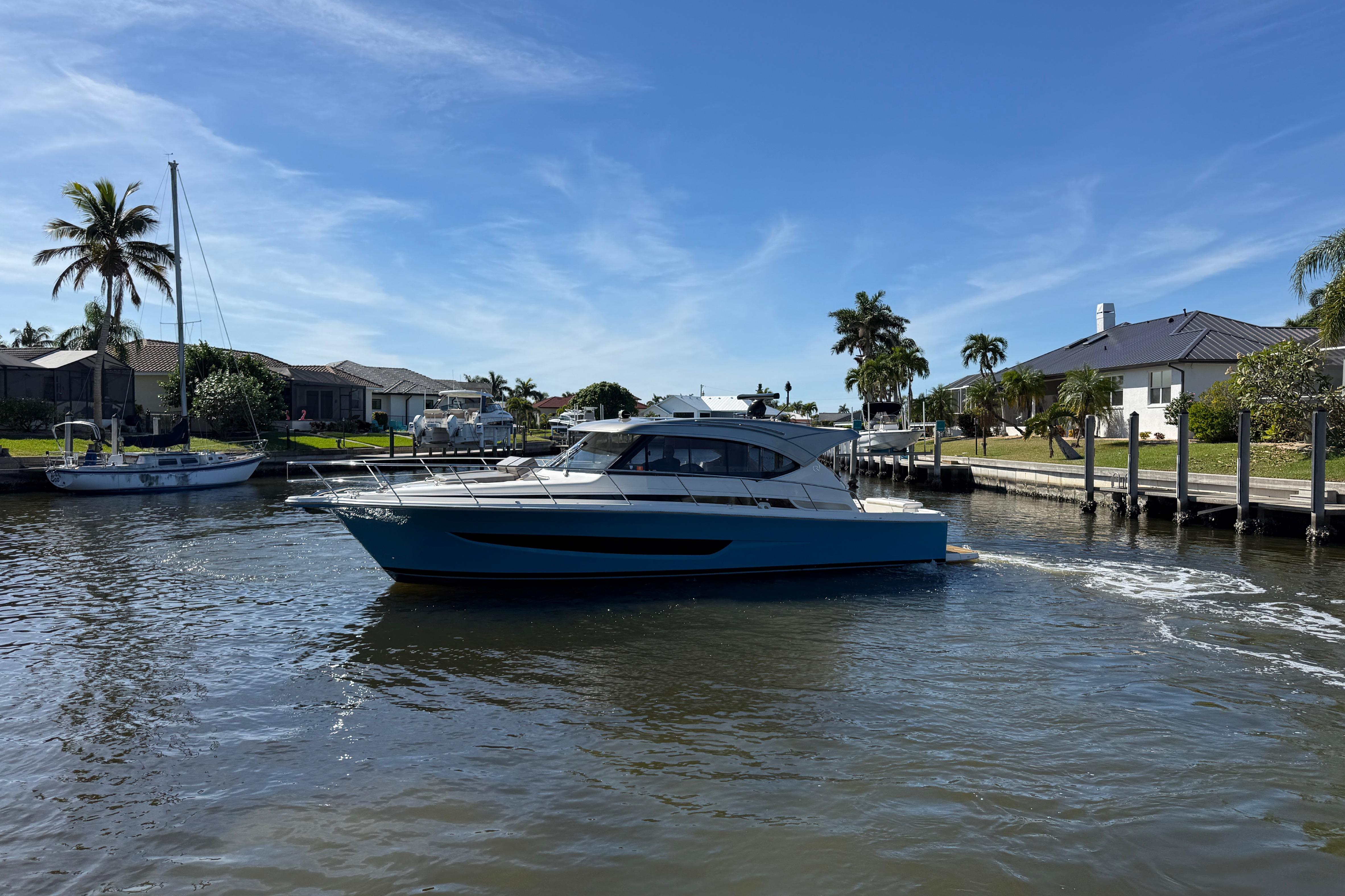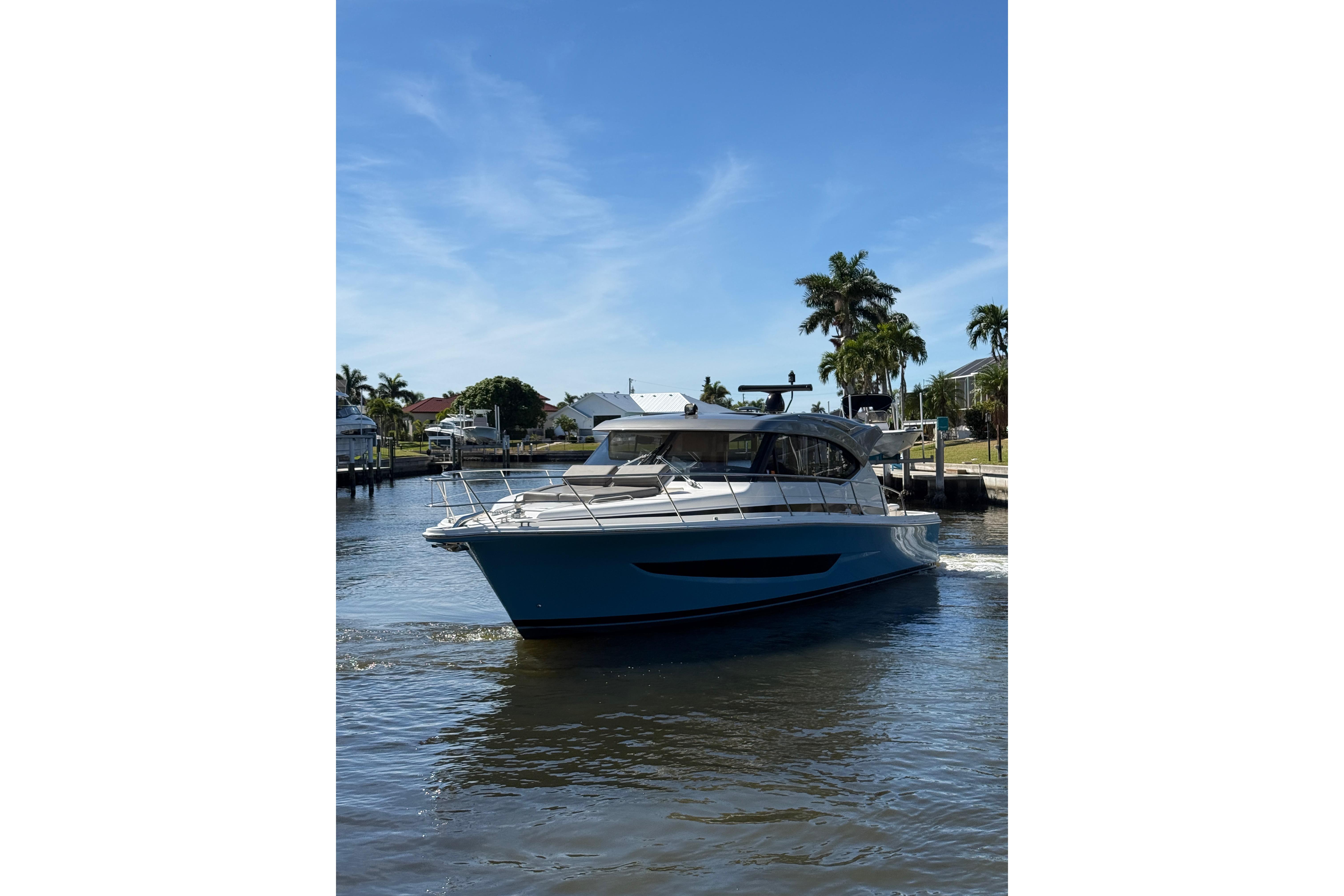 This 2021 Riviera 395 SUV is in near new condition. It stands out in the crowd with its Bahama Blue painted hull, teak cockpit, and the glistening gelcoat finish all around. All services were done in May of 2024, as well as new bottom paint. This vessel is turn key and ready for survey.