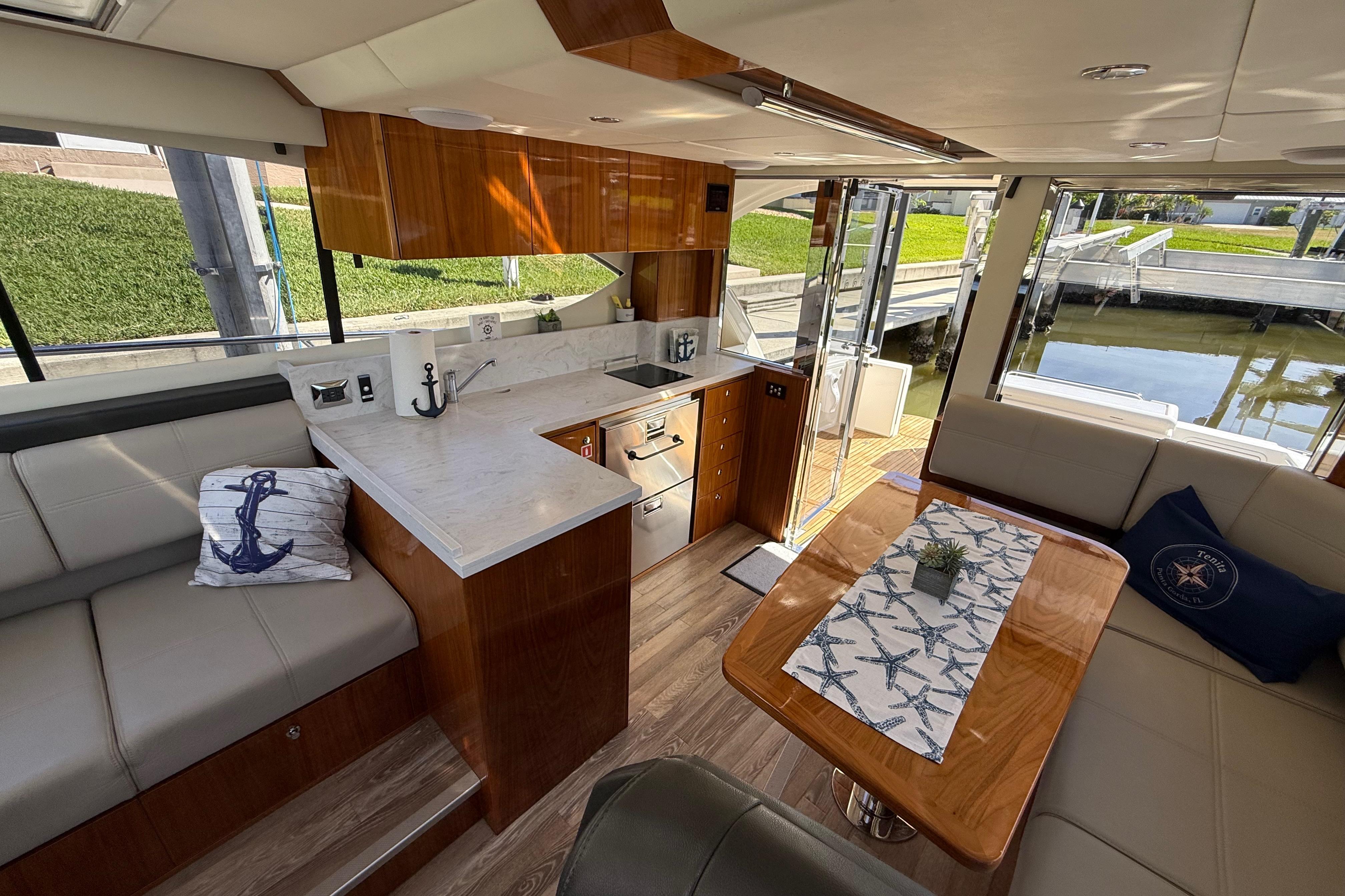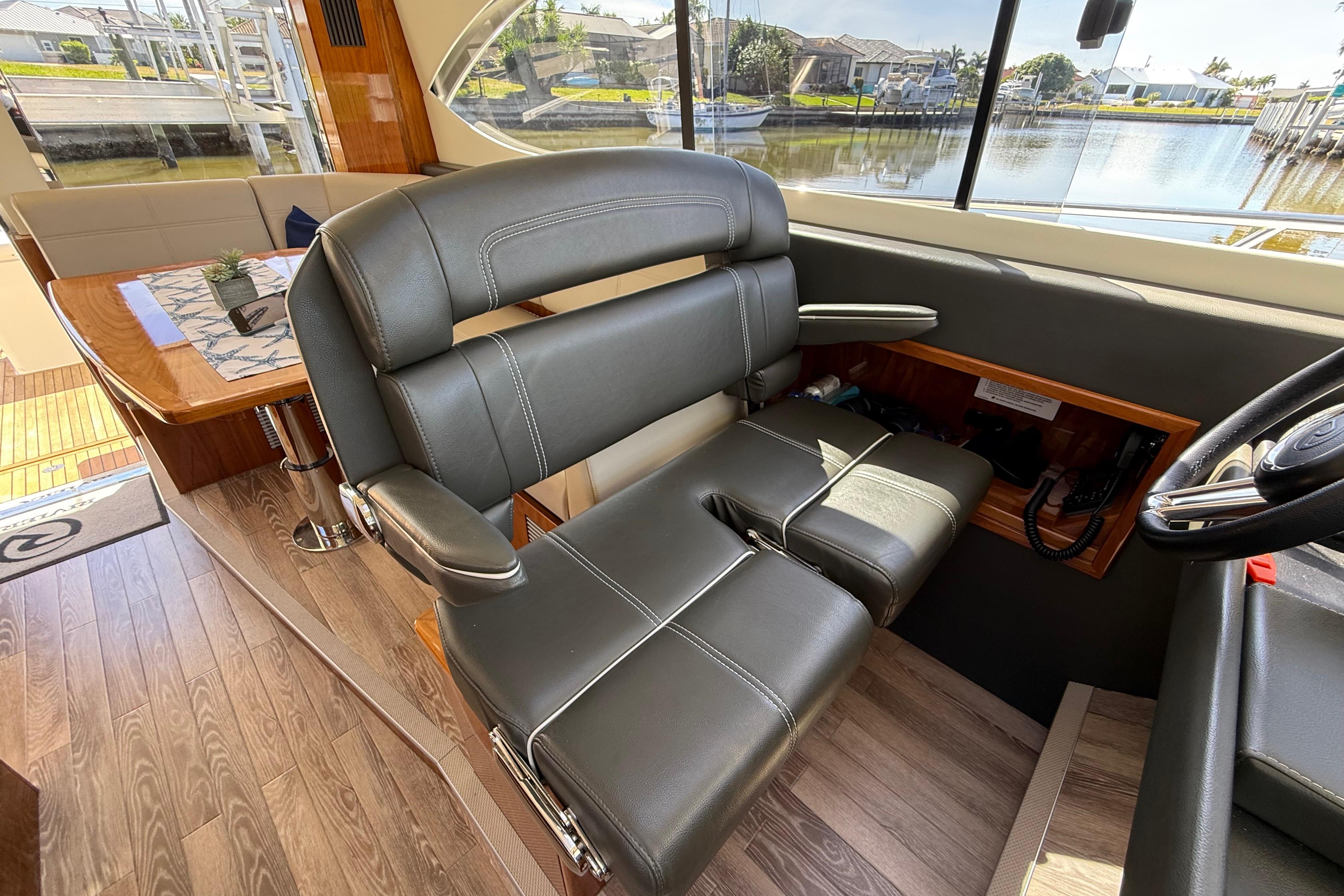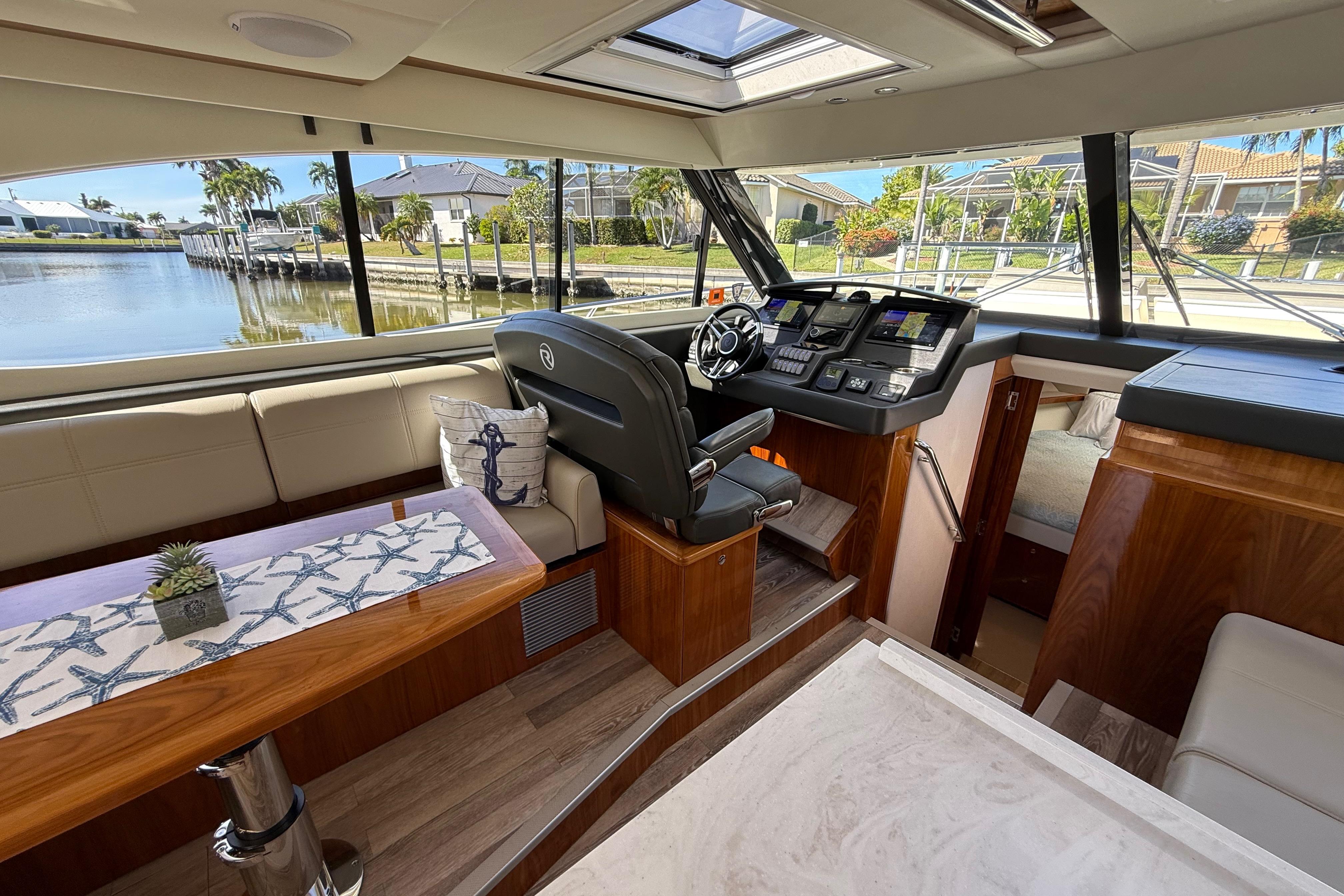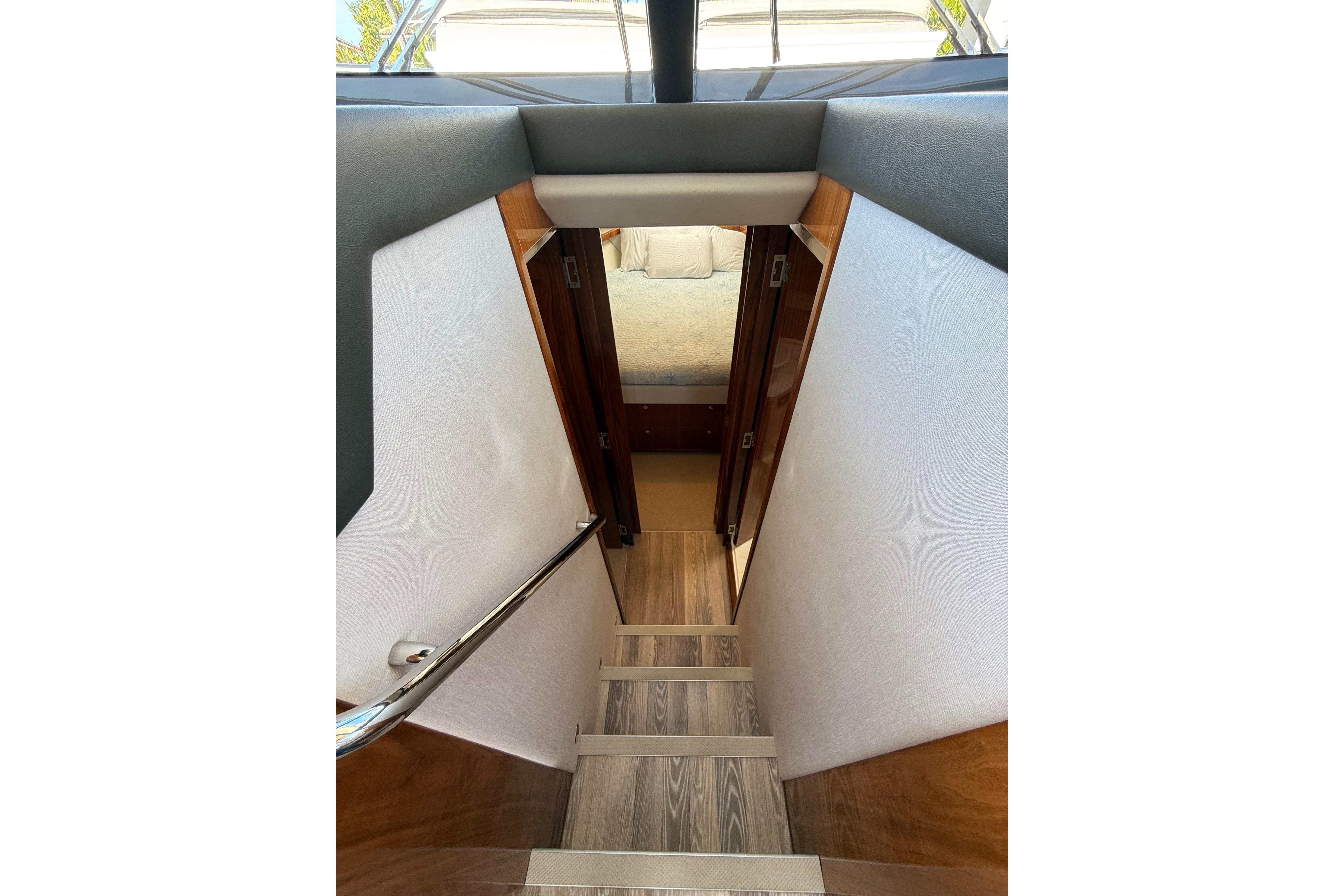 This 2021 Riviera 395 SUV is in near new condition. It stands out in the crowd with its Bahama Blue painted hull, teak cockpit, and the glistening gelcoat finish all around. All services were done in May of 2024, as well as new bottom paint. This vessel is turn key and ready for survey.