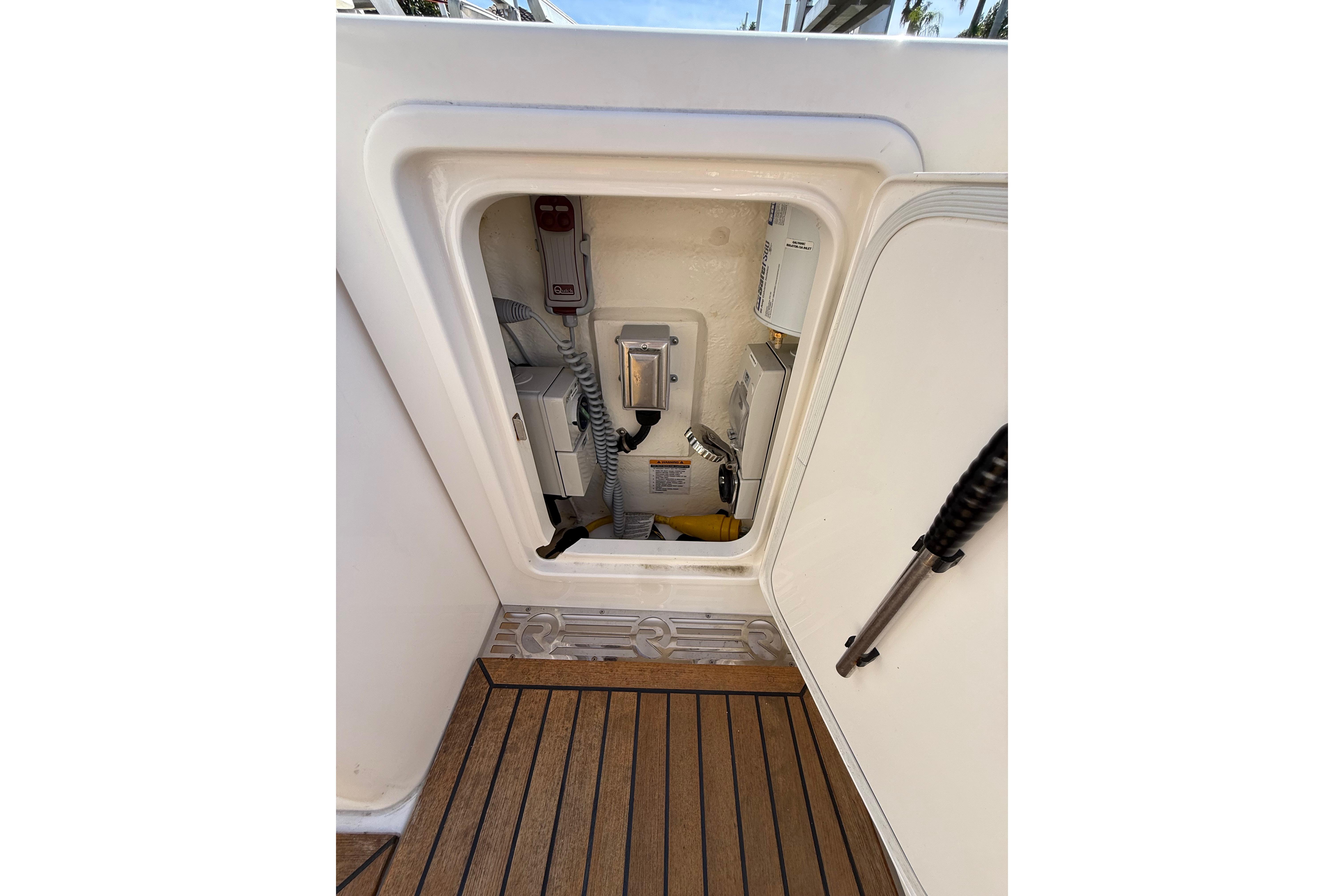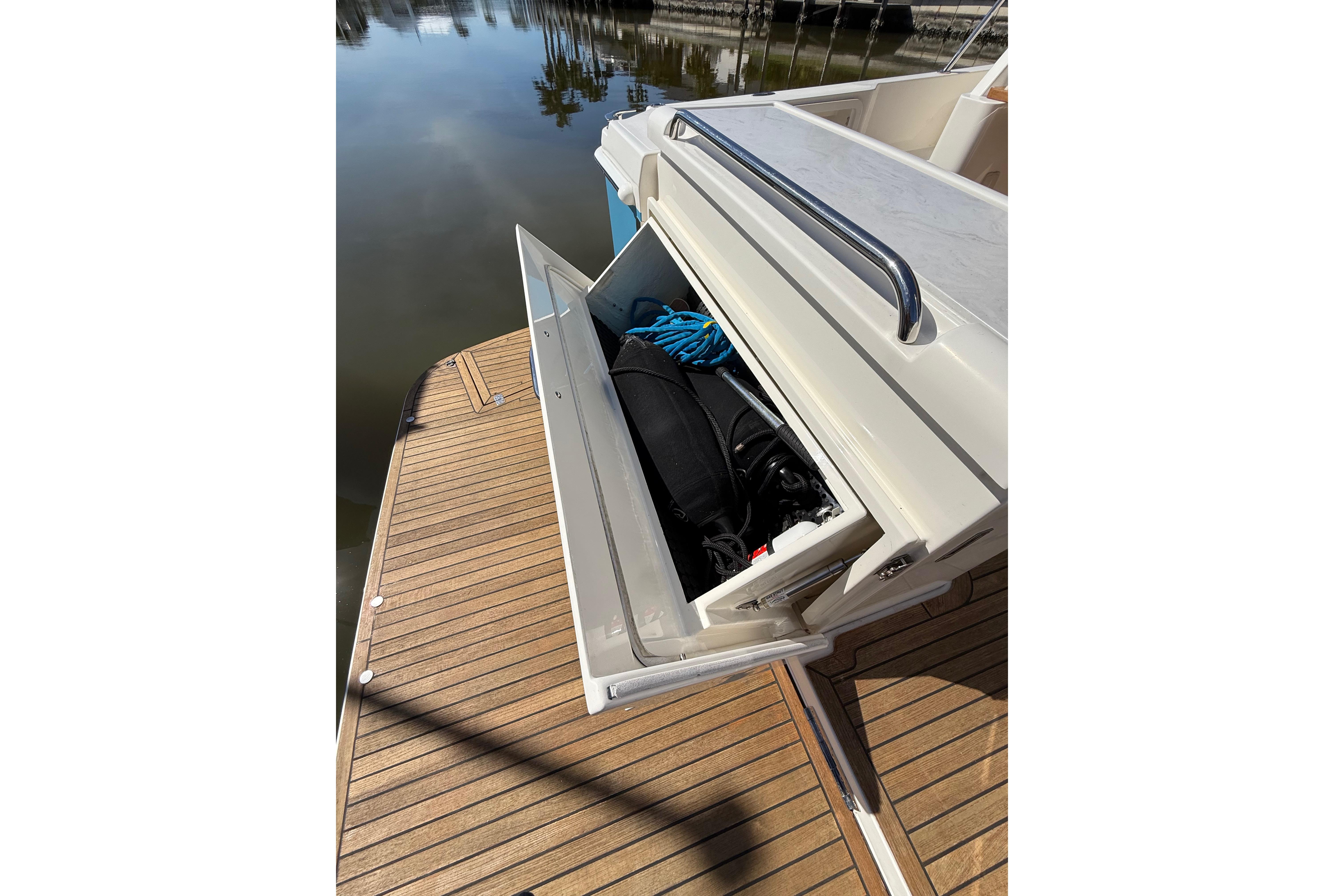 Equipped with SeaKeeper and a carbon fiber Freedom Lift for your tender.