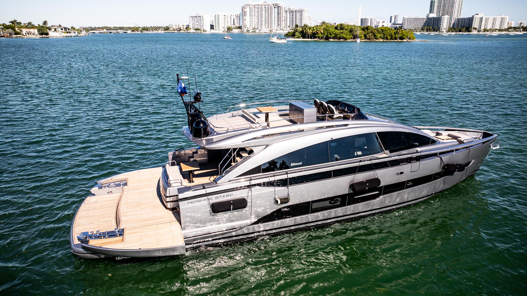 The 2025 Pershing GTX80 ''CIAO'' is a luxury motor yacht that seamlessly blends high-performance capabilities with expansive living spaces. Designed in collaboration between the Ferretti Group’s Product Strategy Committee, led by Piero Ferrari, and the Vallicelli Design studio, the GTX80 embodies a harmonious fusion of sportiness and elegance.