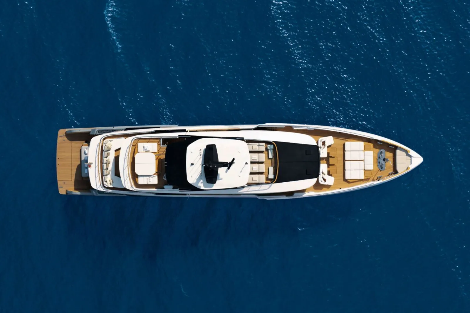 An extraordinary place where freedom and dreams take wing on a beautiful journey in intimate touch with the sea. This sublime four-deck yacht, 38.76 meters long and 8 meters in the beam, with a displacement hull below 300 GT, is the ultimate made-to-measure yacht in the brand range.