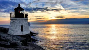 Castle Hill Lighthouse in Newport, Rhode Island. The lighthouse is the property of the U.S. government